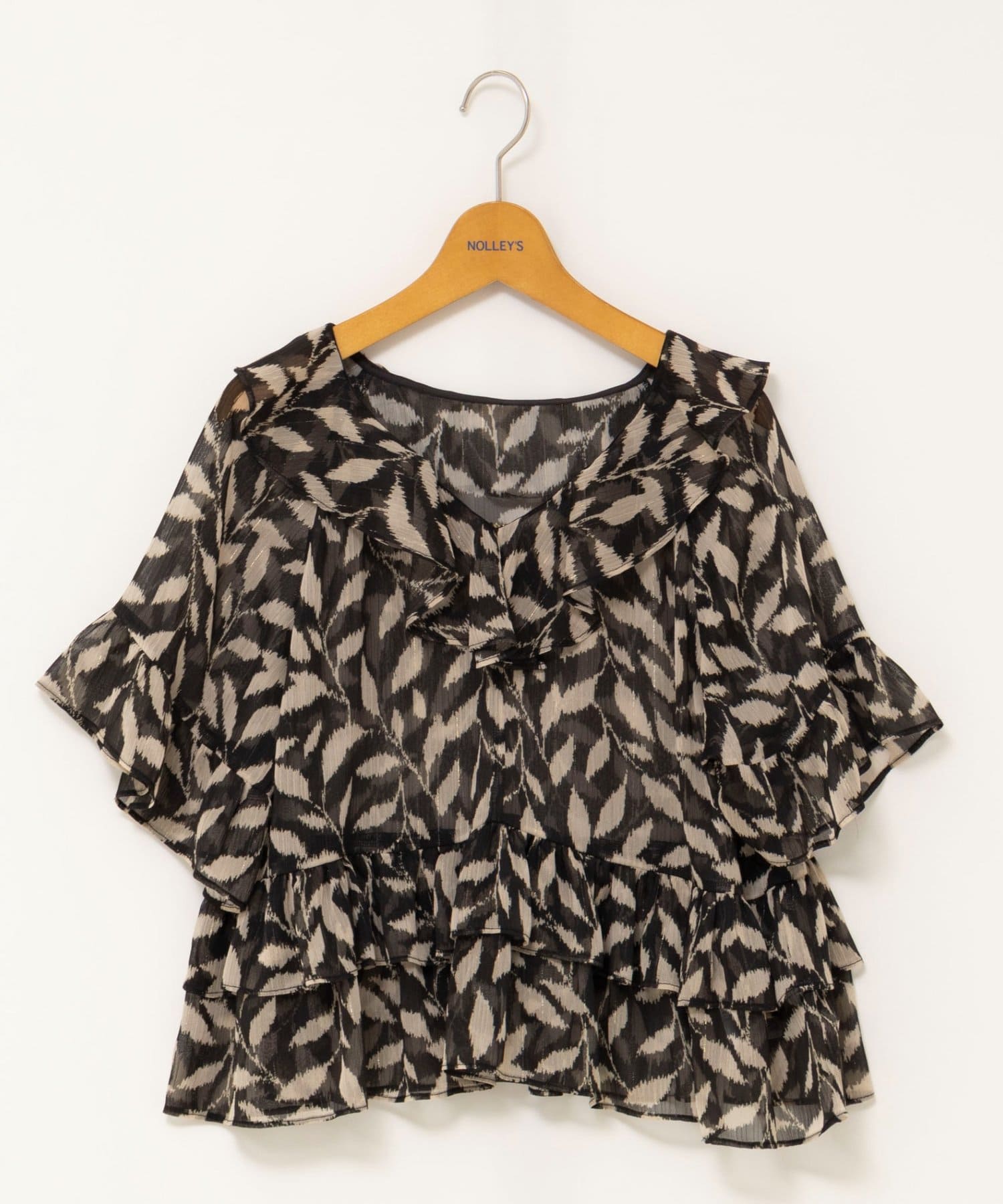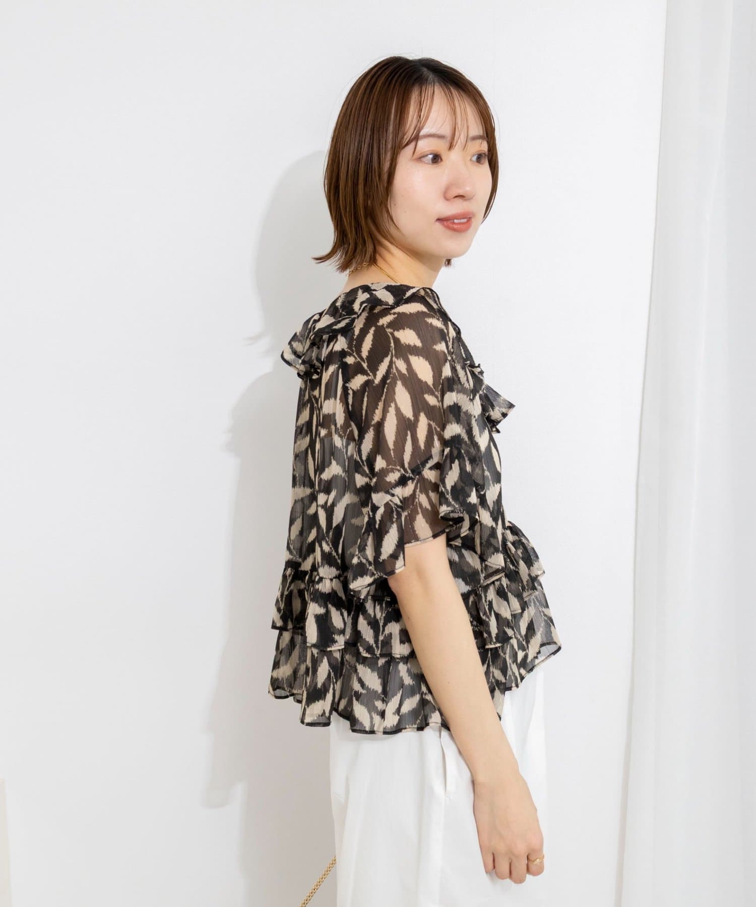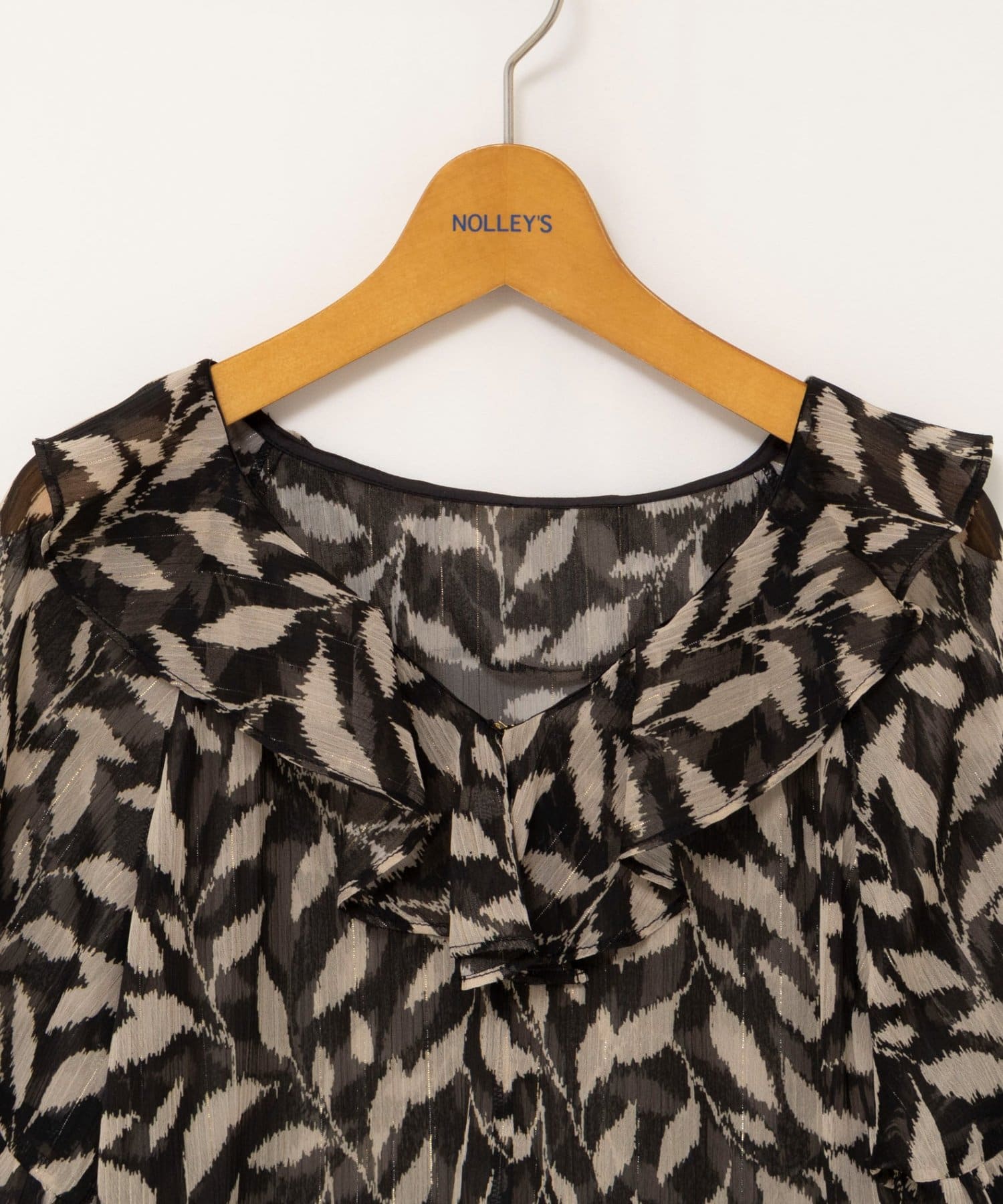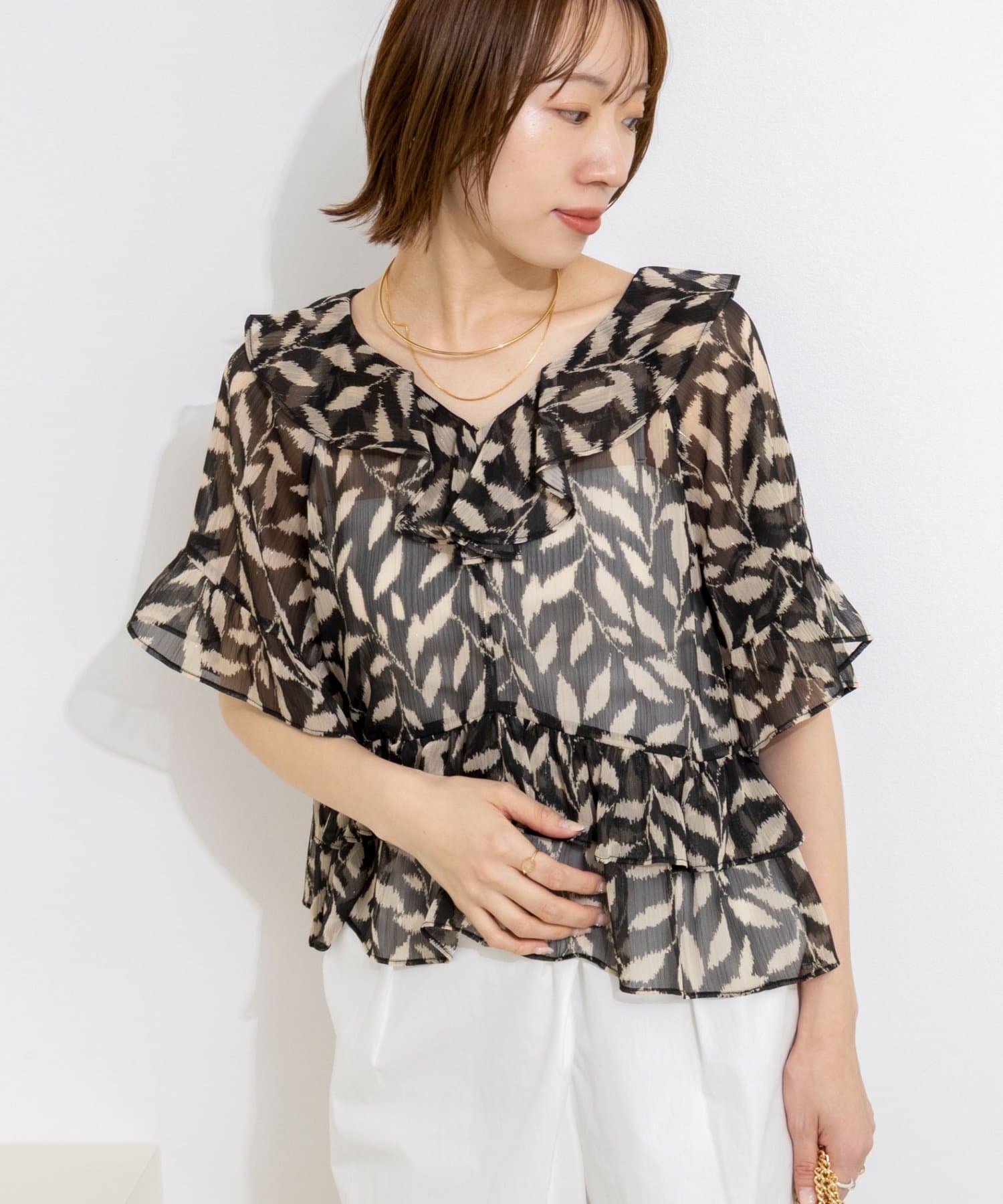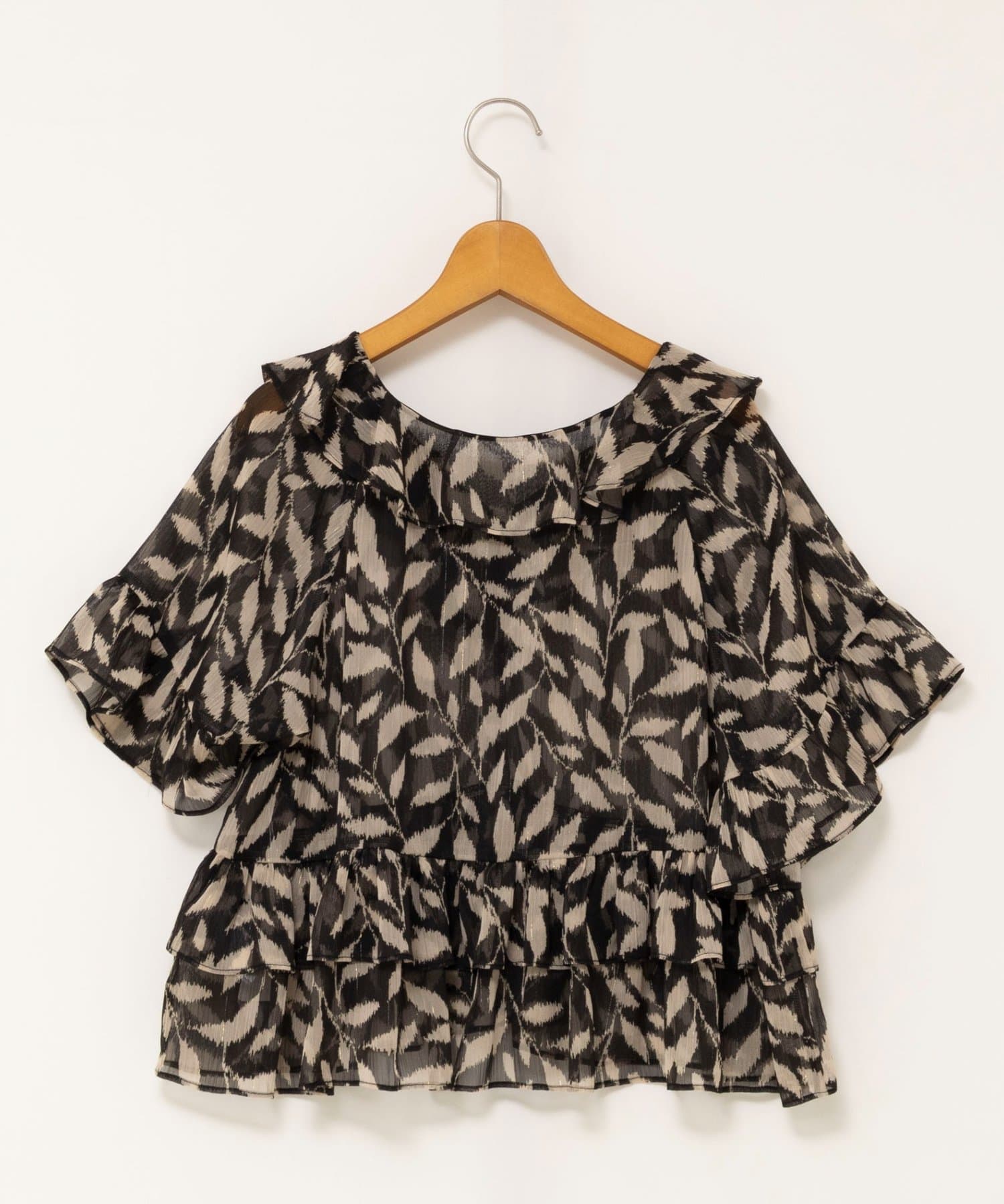 【Import Fabric】ウォッシャブル楊柳リーフ柄フリルブラウス