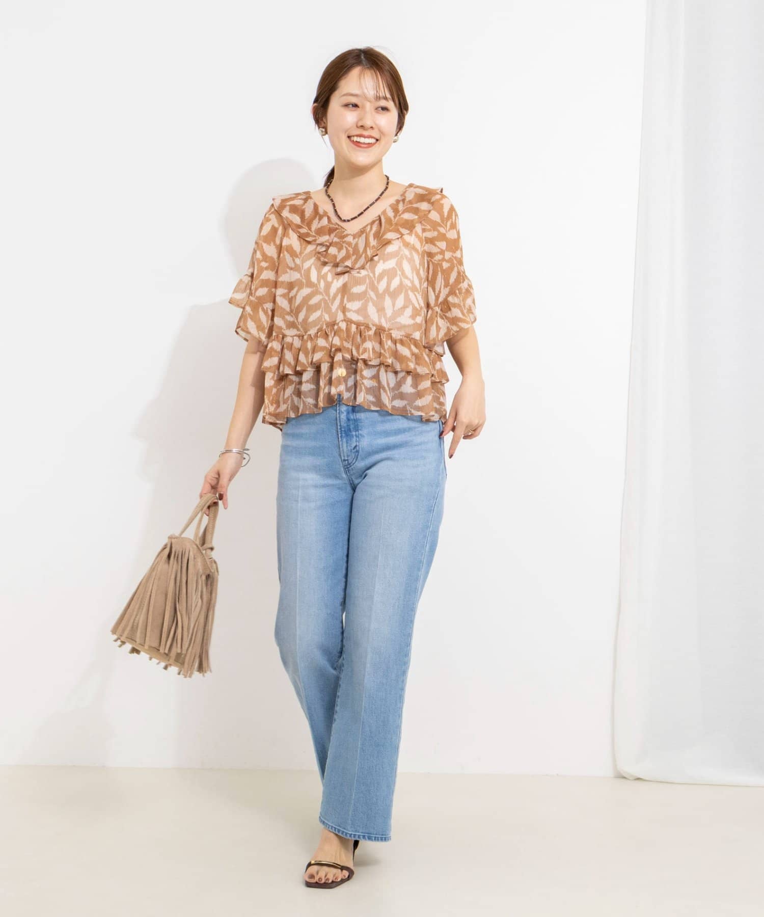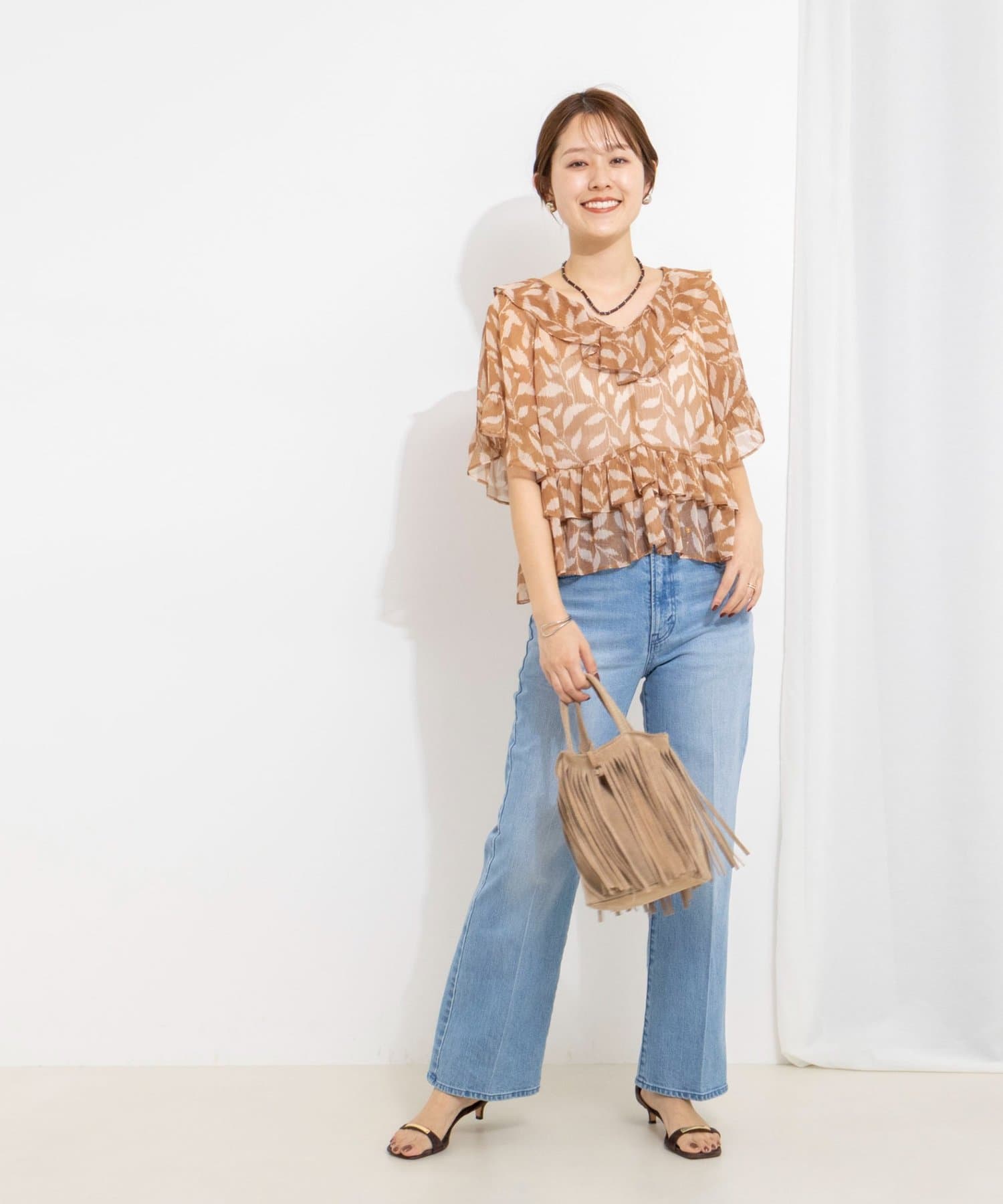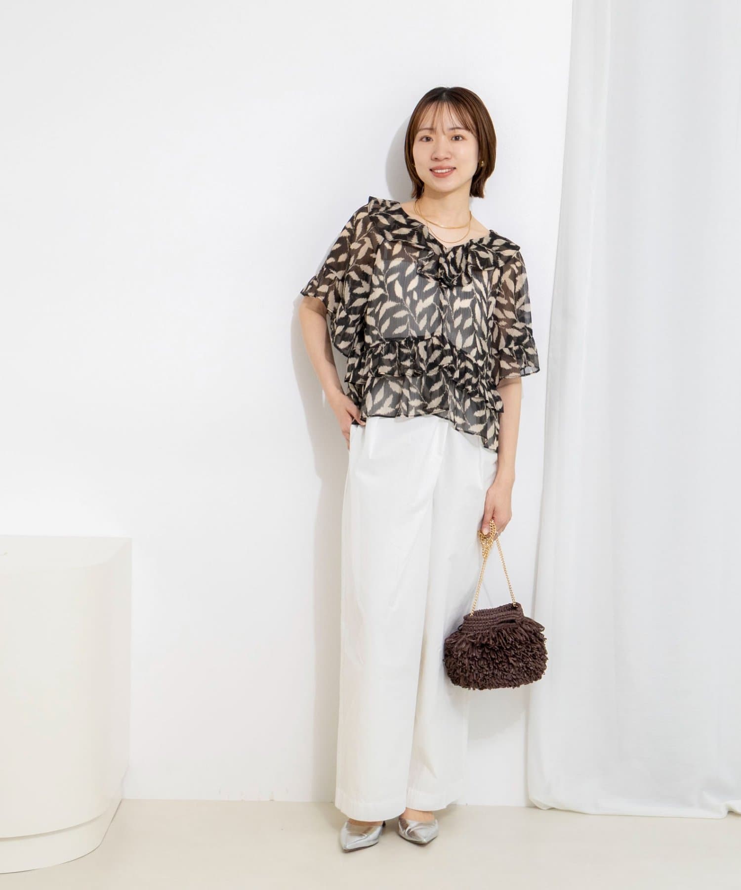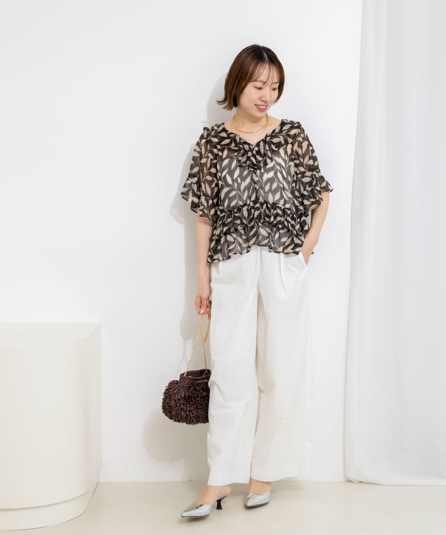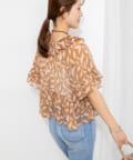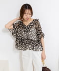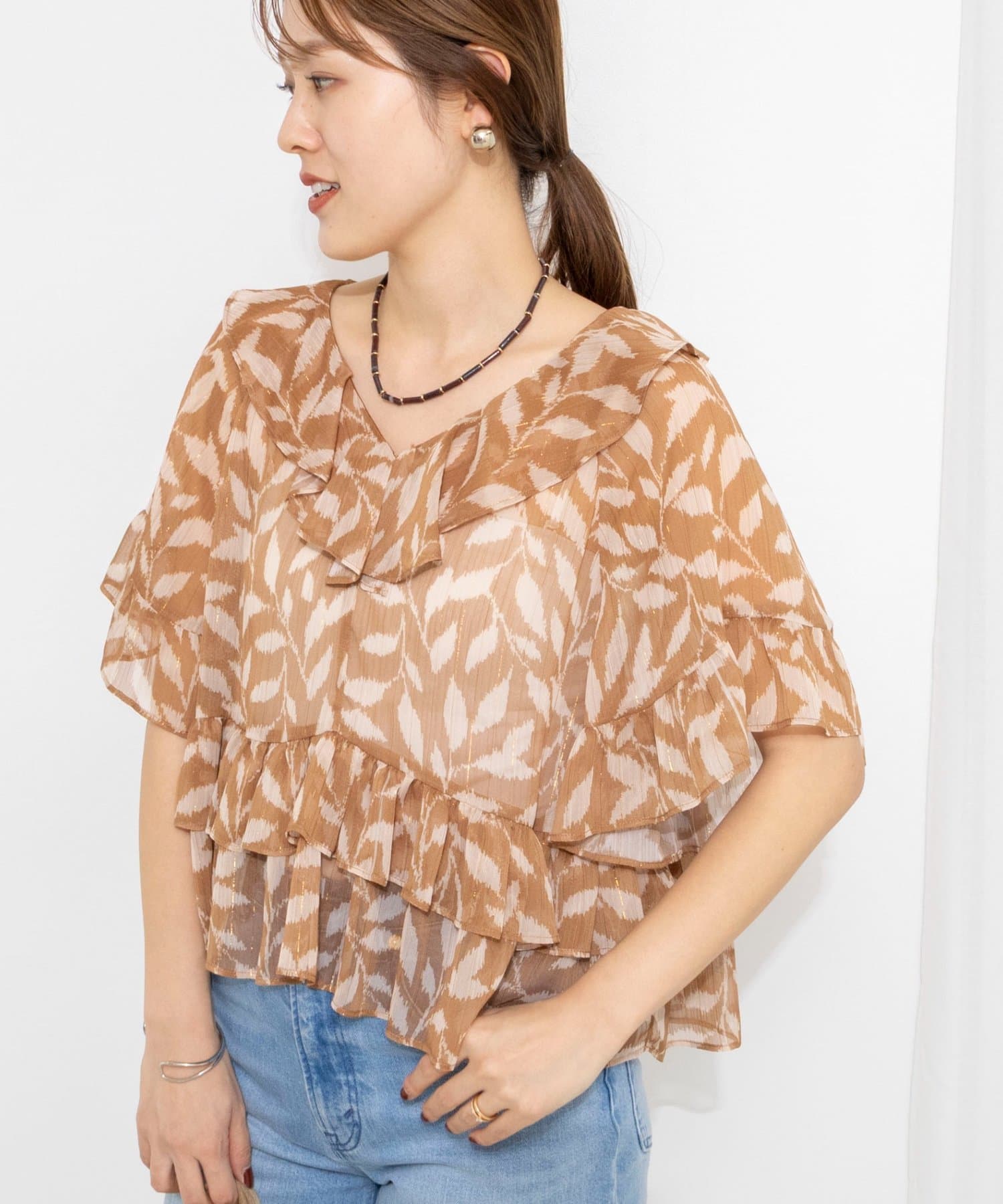 【Import Fabric】ウォッシャブル楊柳リーフ柄フリルブラウス