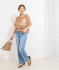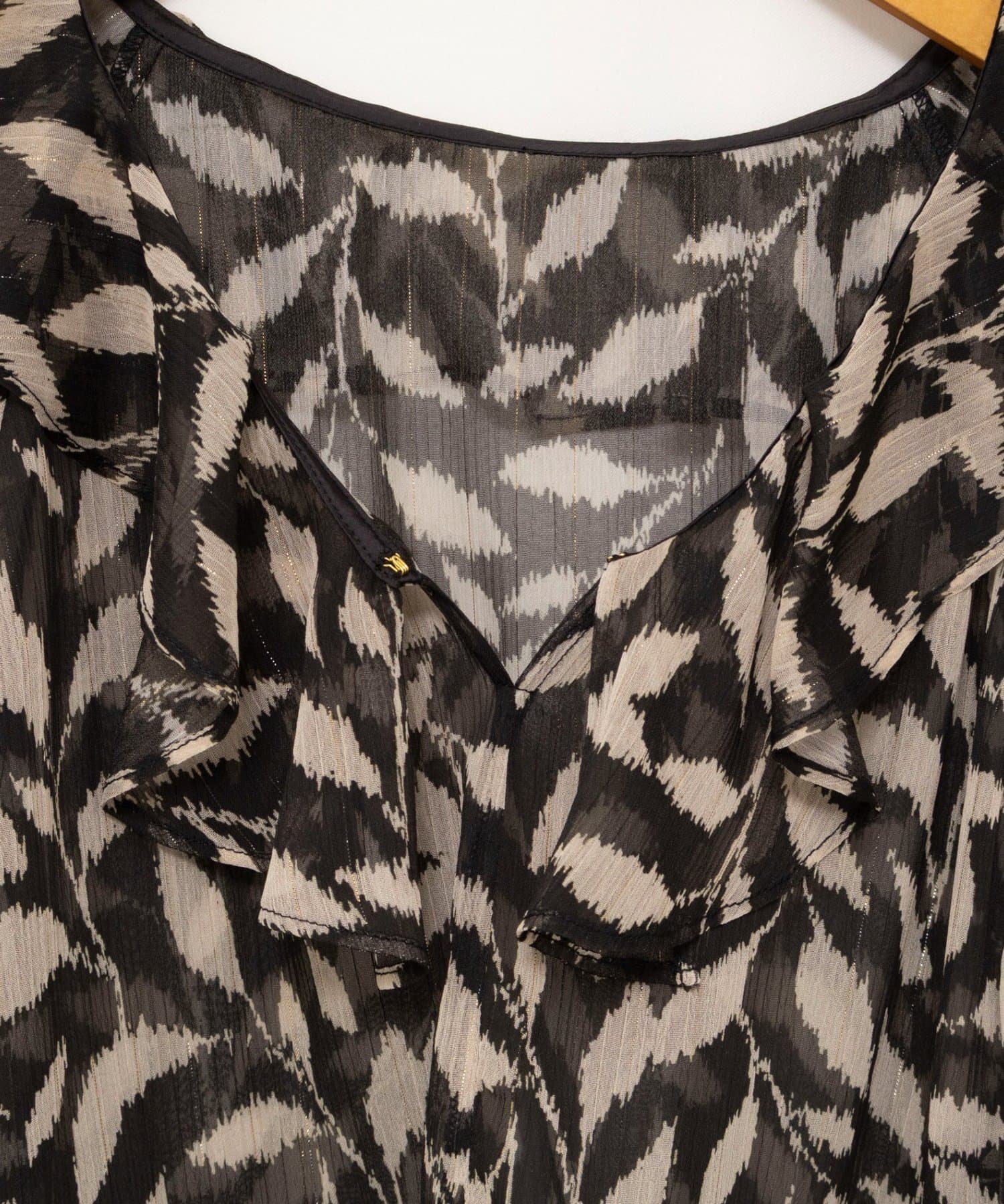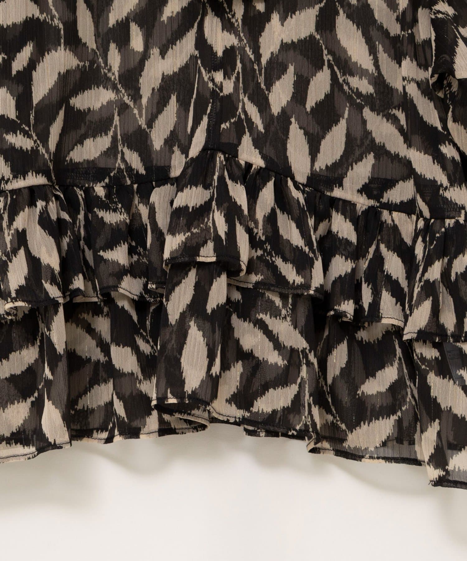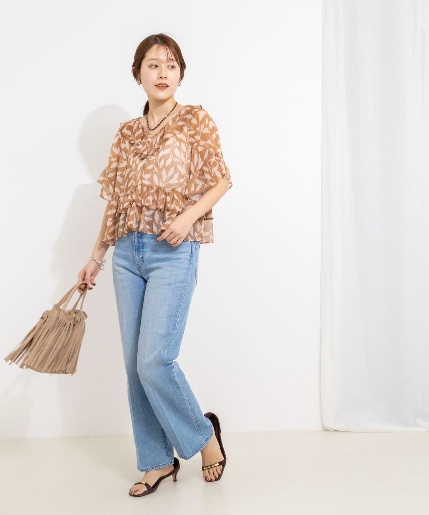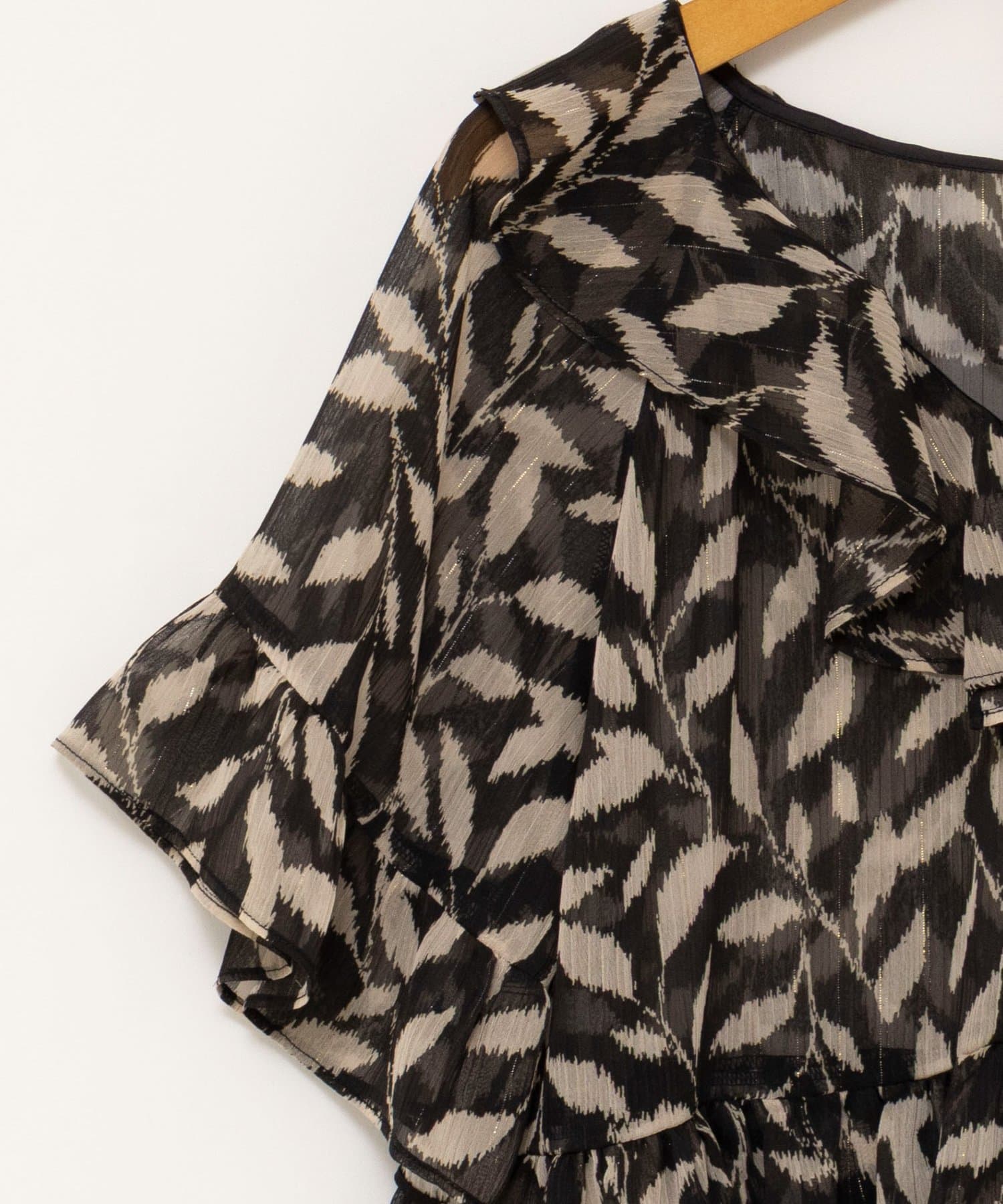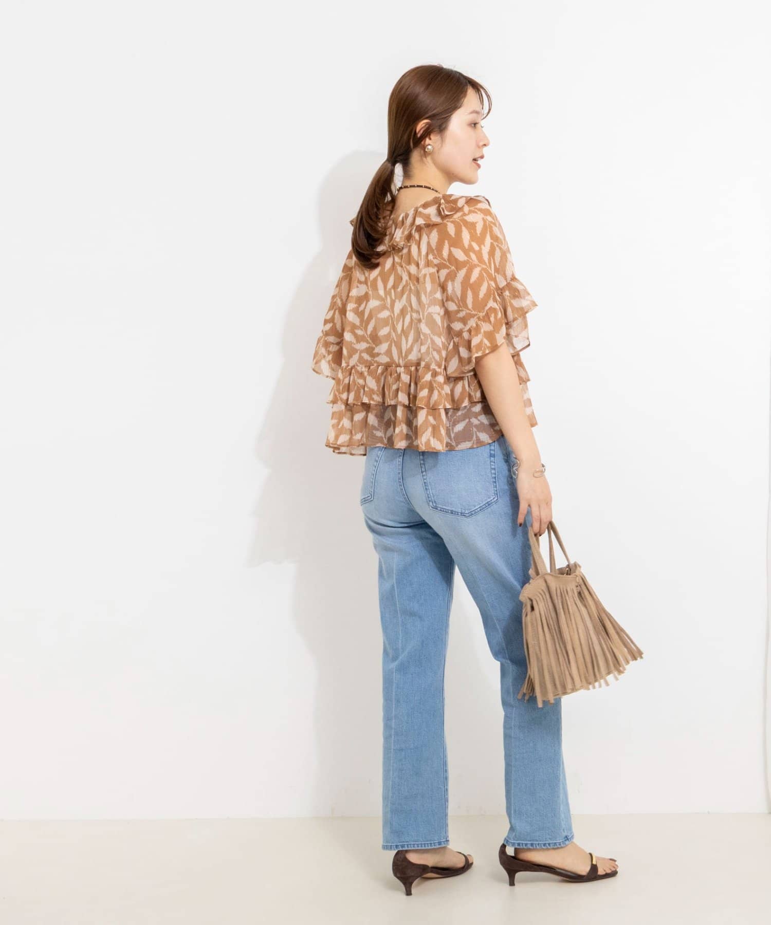 【Import Fabric】ウォッシャブル楊柳リーフ柄フリルブラウス