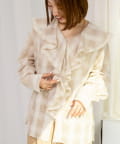・ラッフル端にフリル布を付けた立体感のあるボリューム襟が、新鮮なアクセントのブラウス