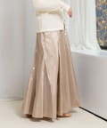 ・生地を8枚接ぎ合わせ、さらに4箇所にマチを入れたこだわりのパターンで、ウエストまわりはすっきり見せながら裾に向かって美しくボリュームが広がるシルエット