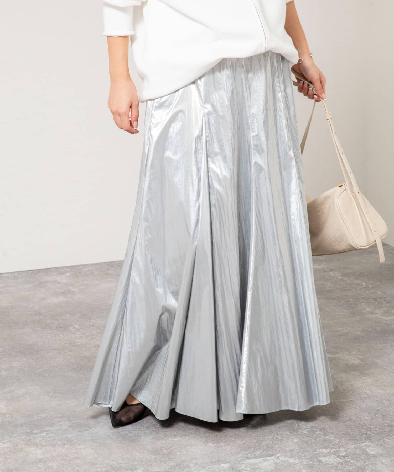 ・レザーのような上質感と、ナイロンならではの軽さを兼ね備えたスカート
