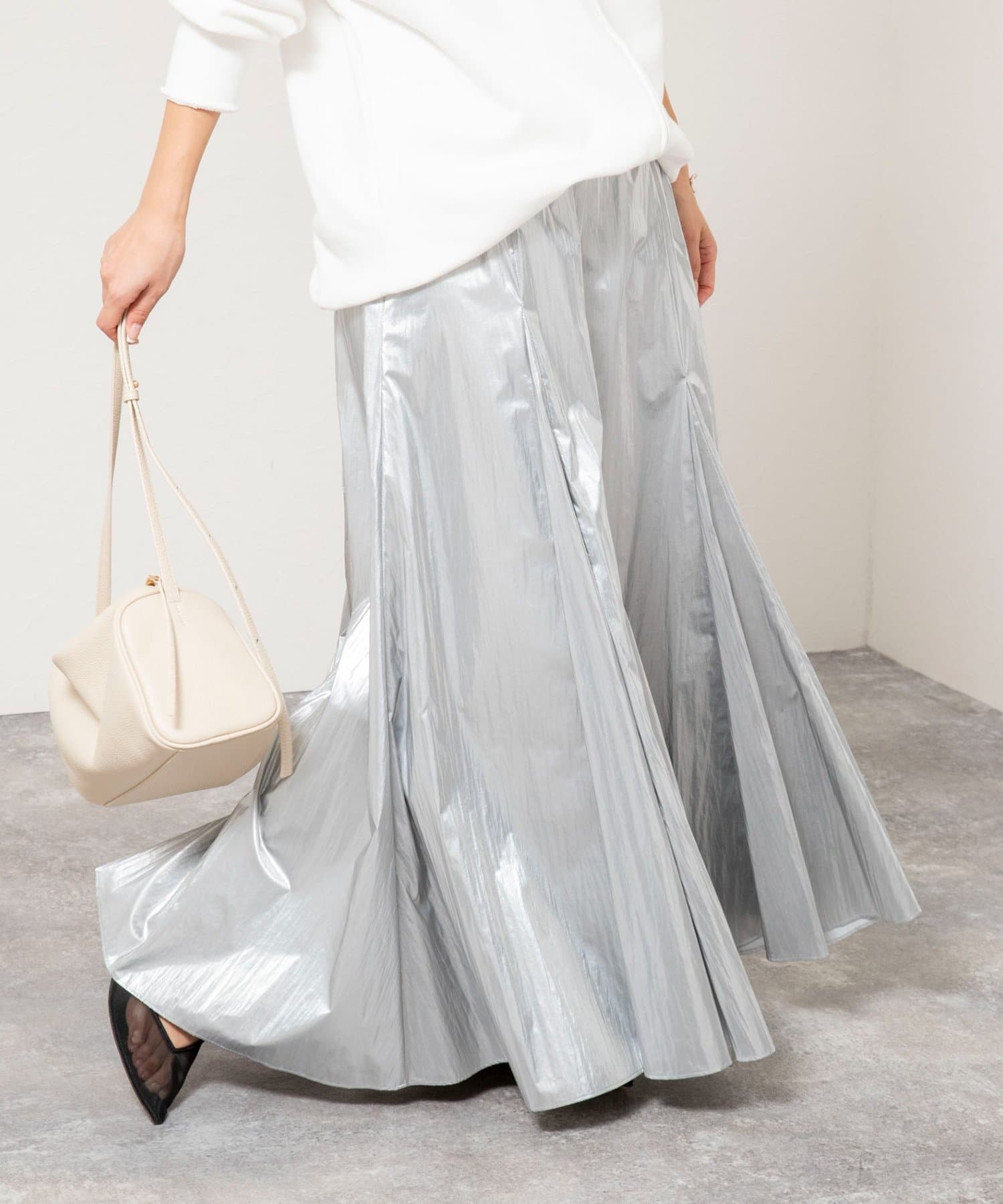・45周年を記念し、ブランドを象徴する人気アイテム「マチ入りマキシスカート」をスペシャル素材で仕上げた一枚
