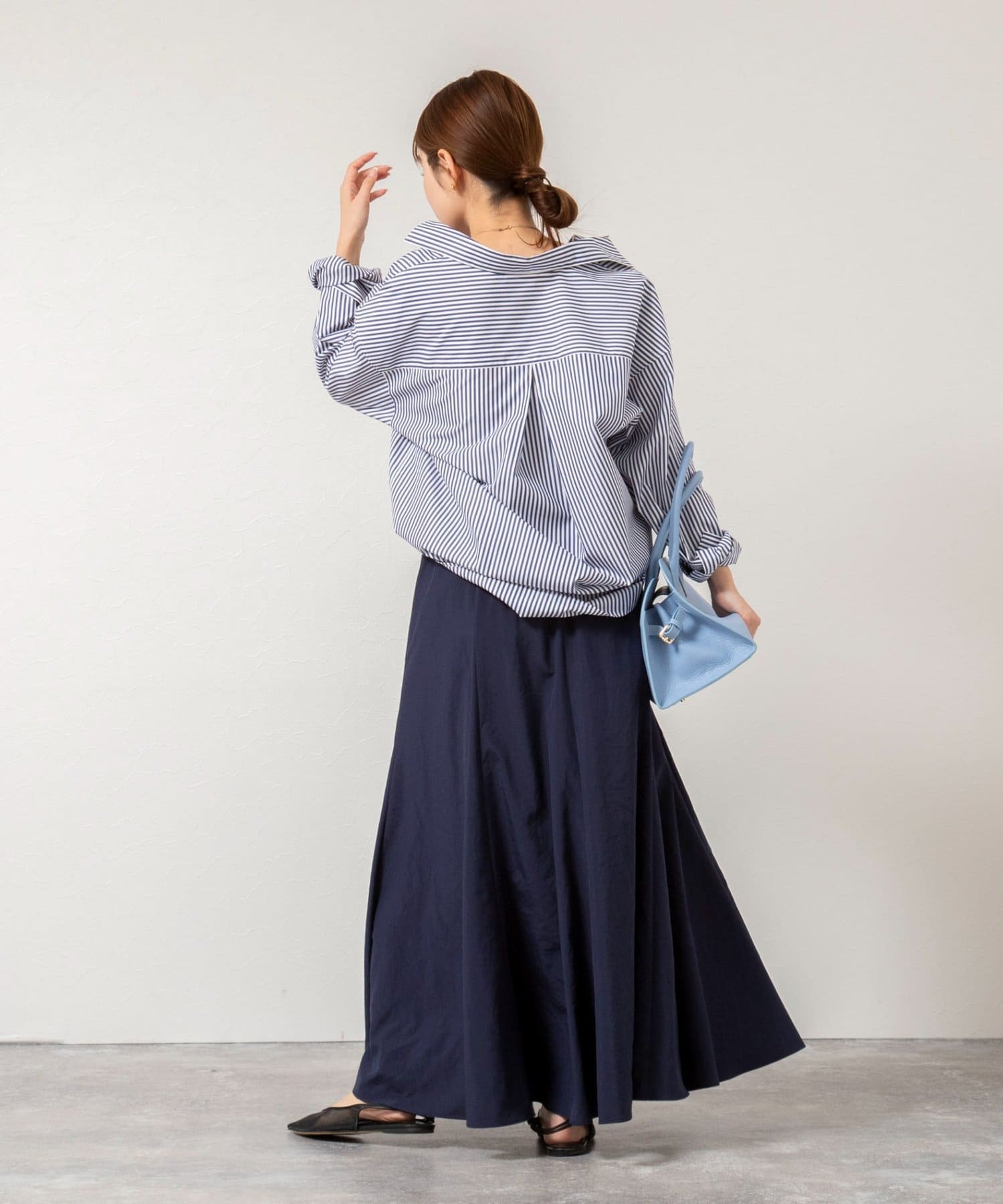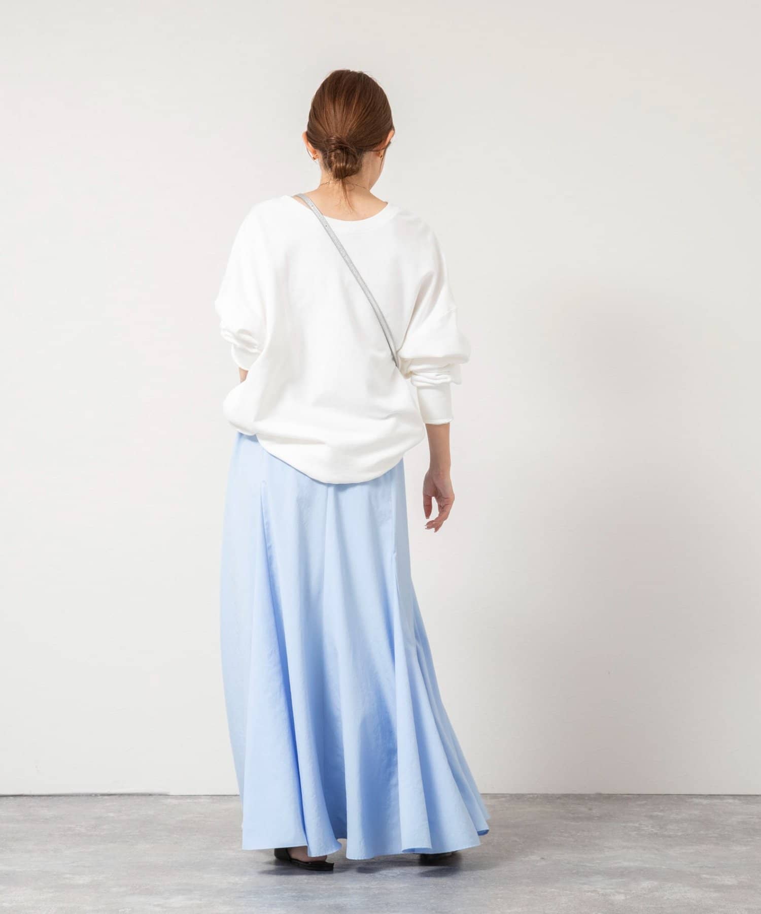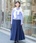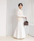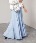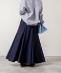 ・生地を8枚接ぎ合わせ、さらに4箇所にマチを入れたこだわりのパターンで、ウエストまわりはすっきり見せながら裾に向かって美しくボリュームが広がるシルエット