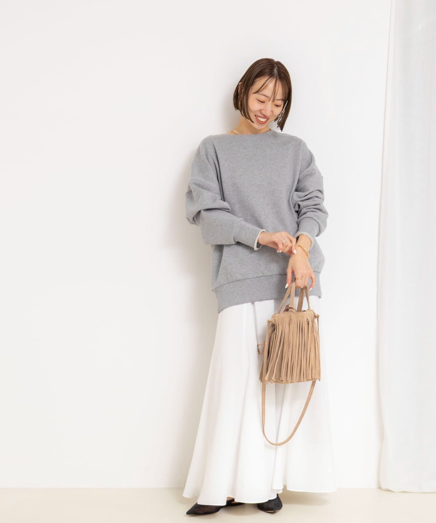 ・シンプルなトップス合わせでもスタイリングが決まり、シーズンレスで活躍するスカート