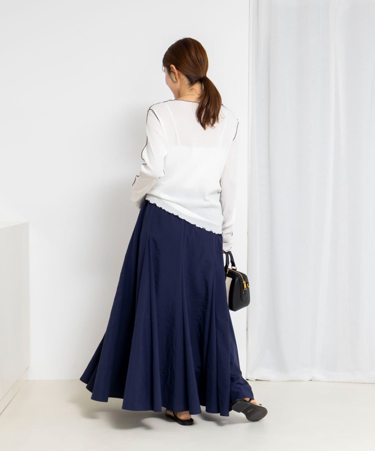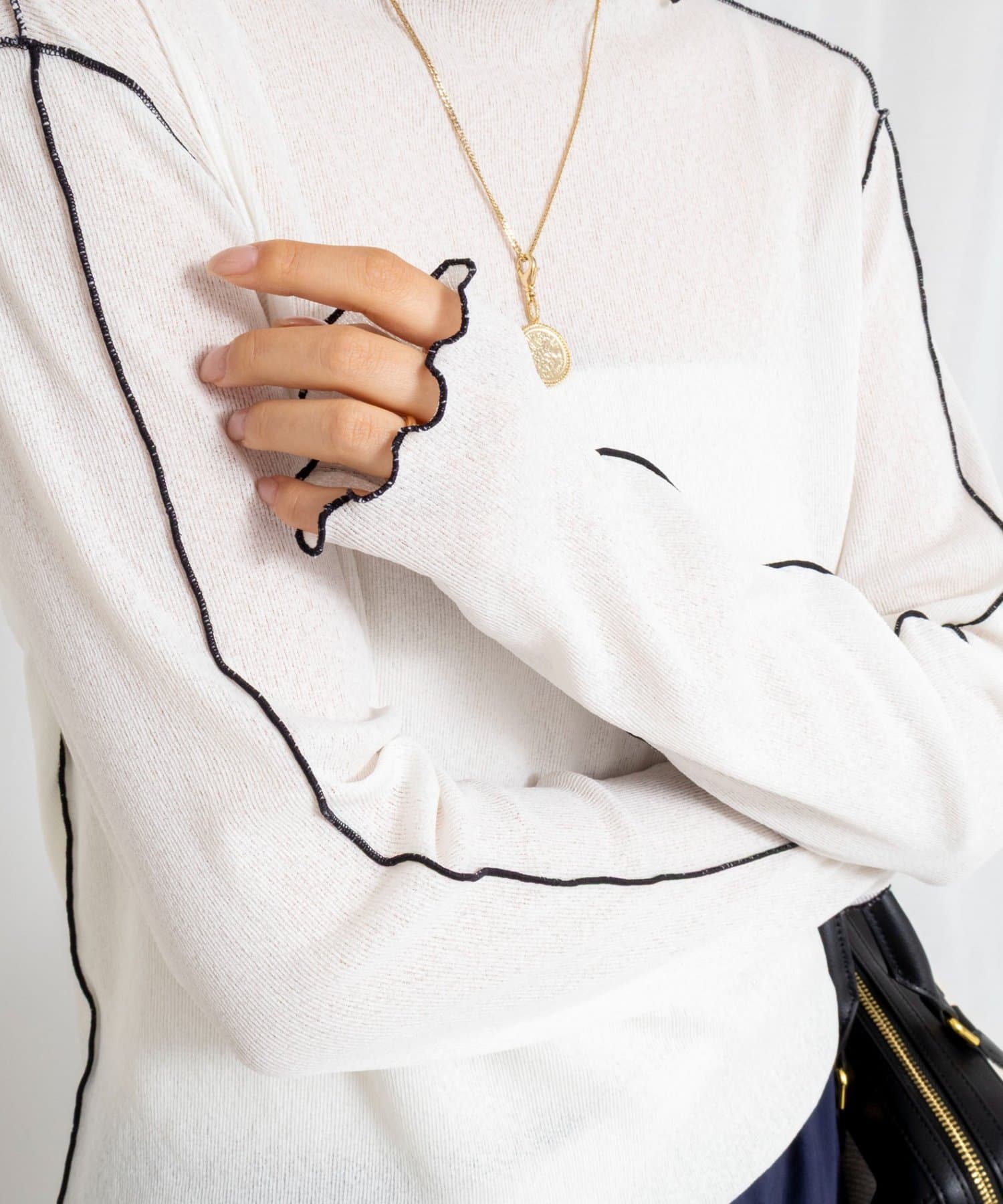 ・配色のメロー始末がさりげないアクセントとなり、大人のカジュアルスタイルに程よい遊び心をプラス