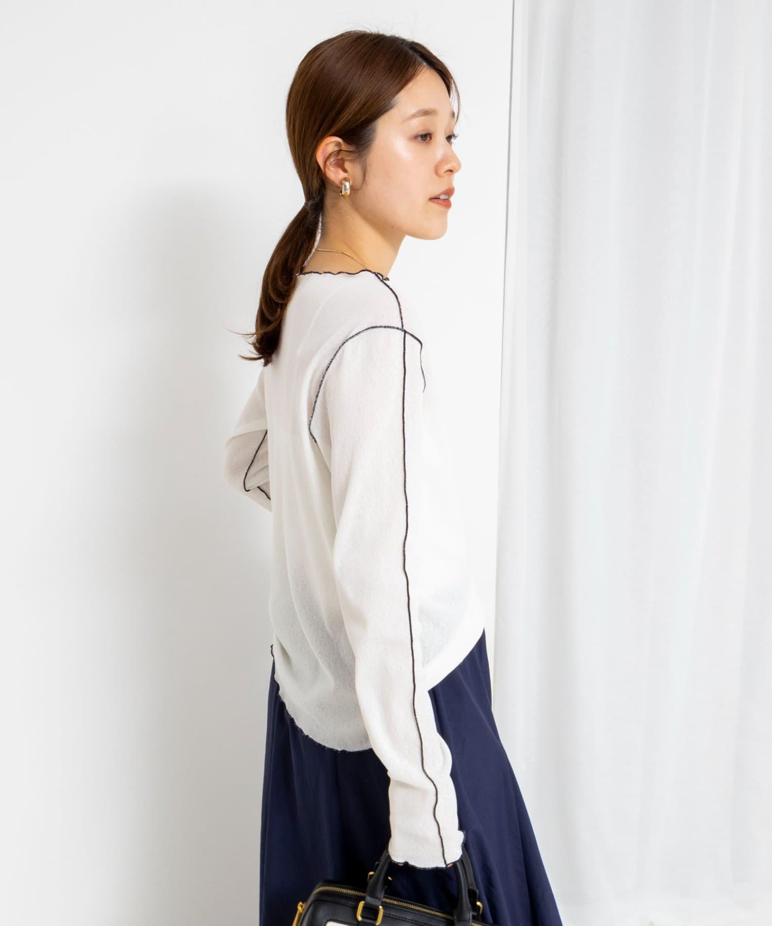 ウォッシャブルドライテレコメロー配色プルオーバー