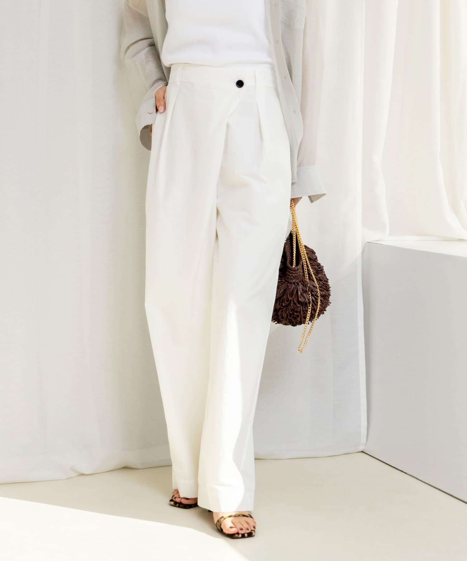 ・程よいワイドシルエットでトップスを選ばずスタイリングが決まるパンツ