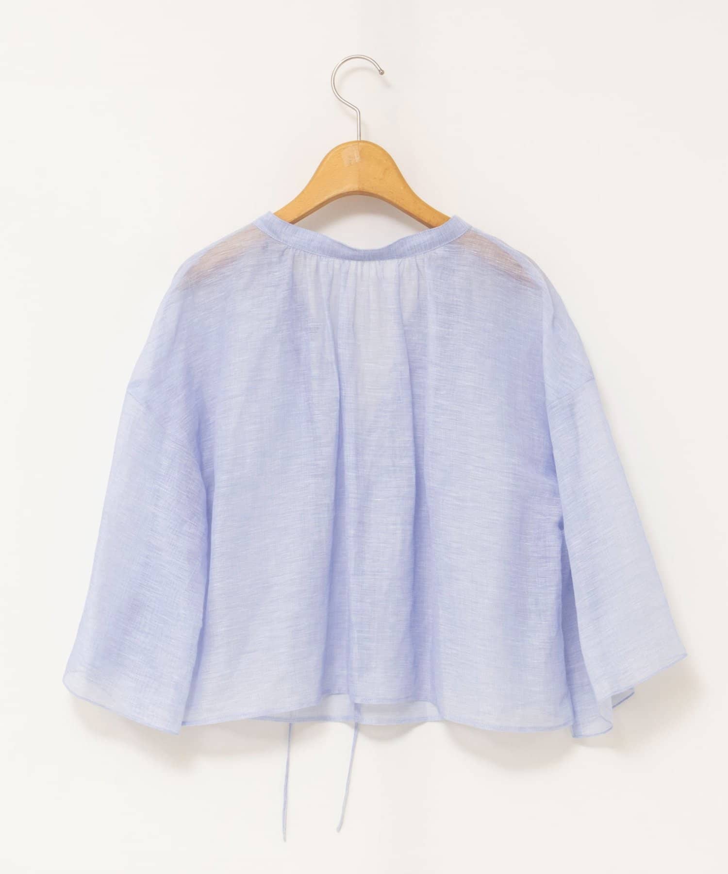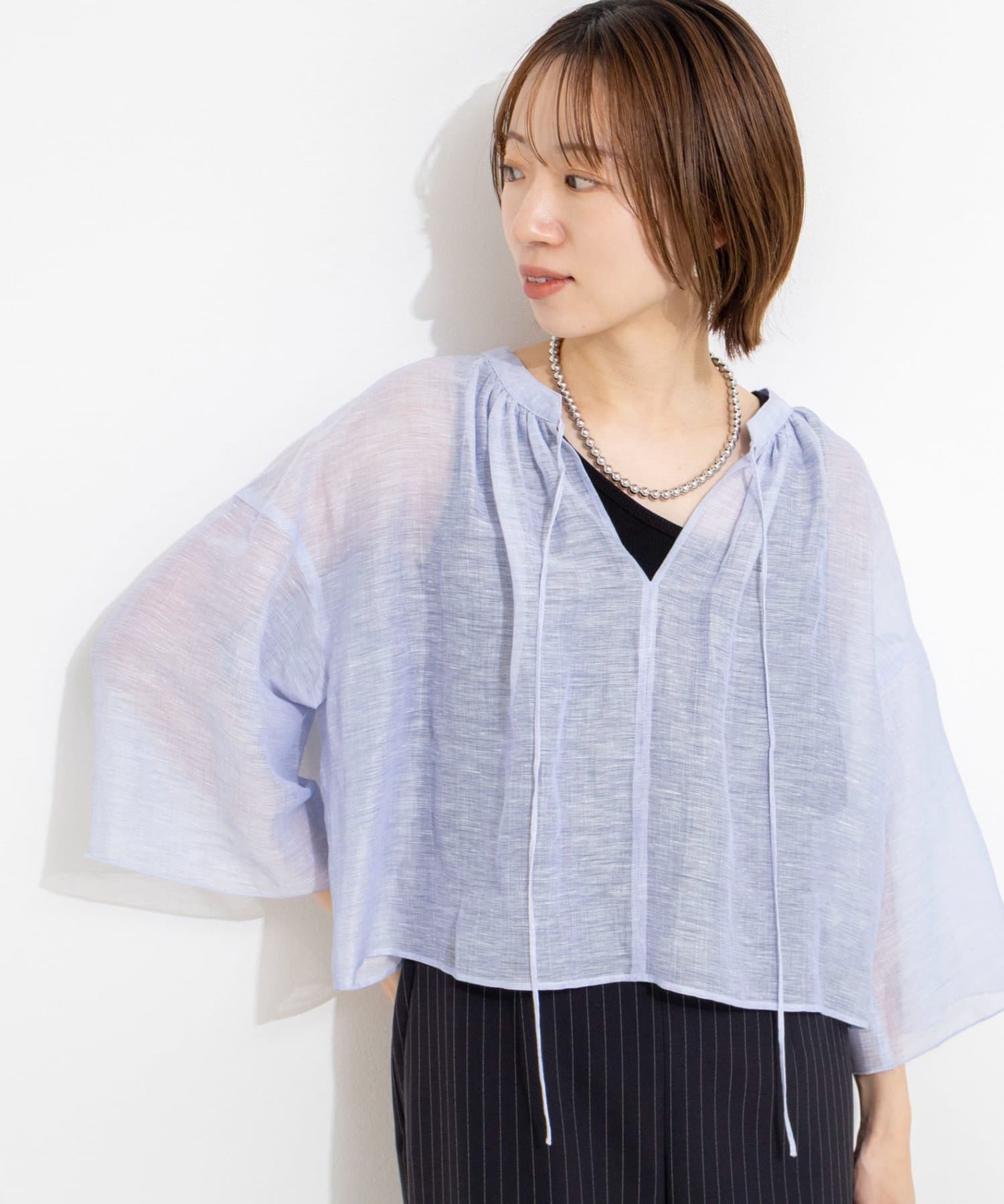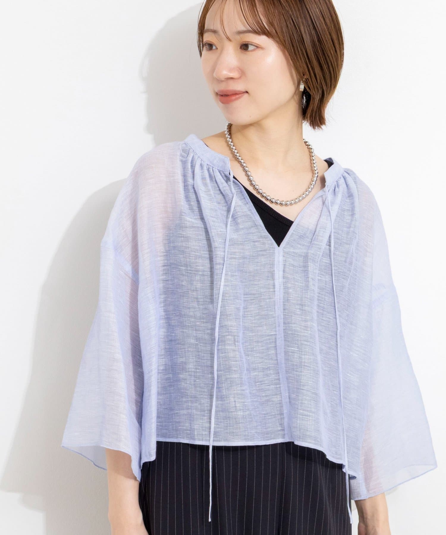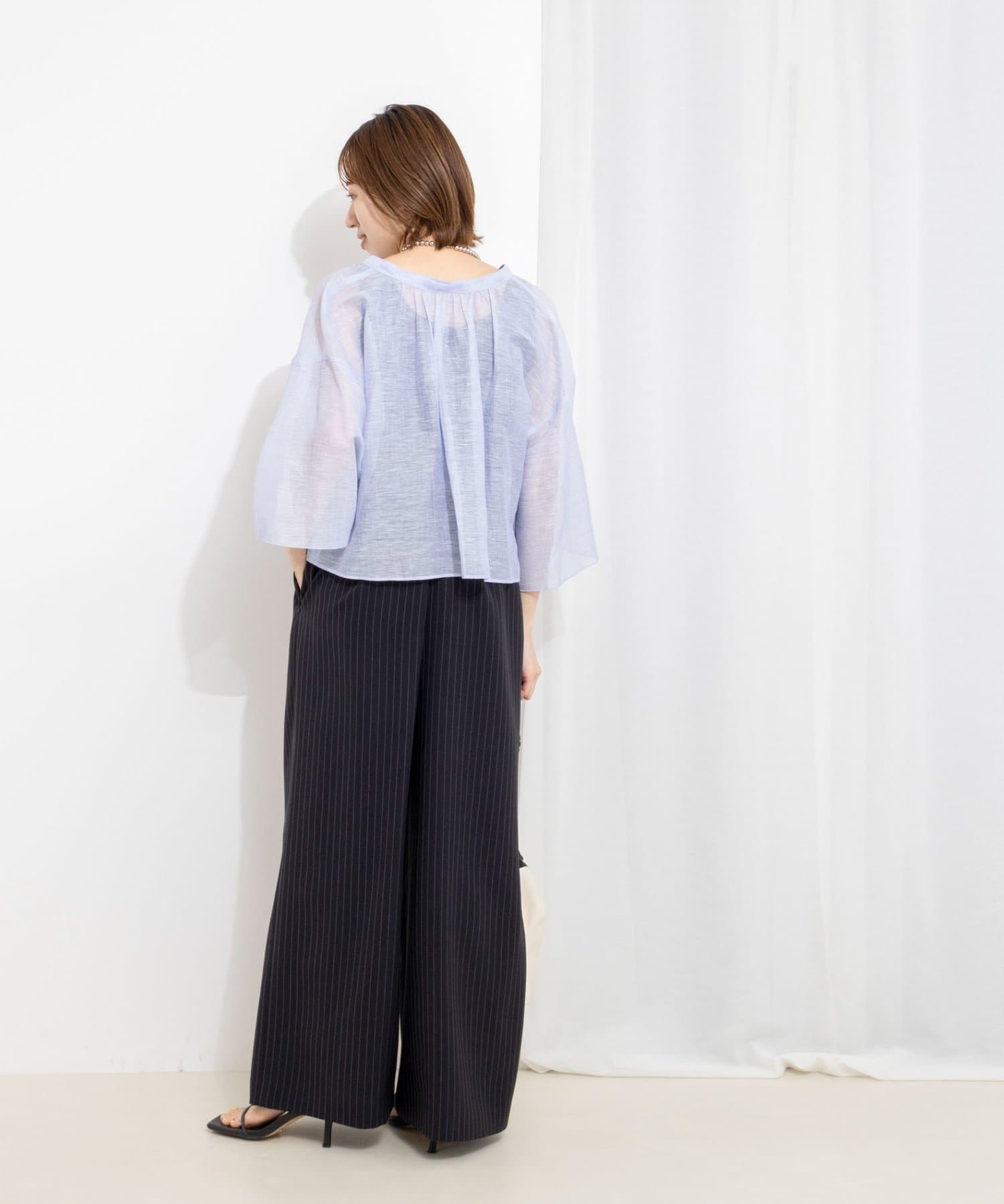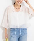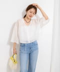・リネンポリエステルのシアーカールマイヤー素材を使用したショート丈ブラウス