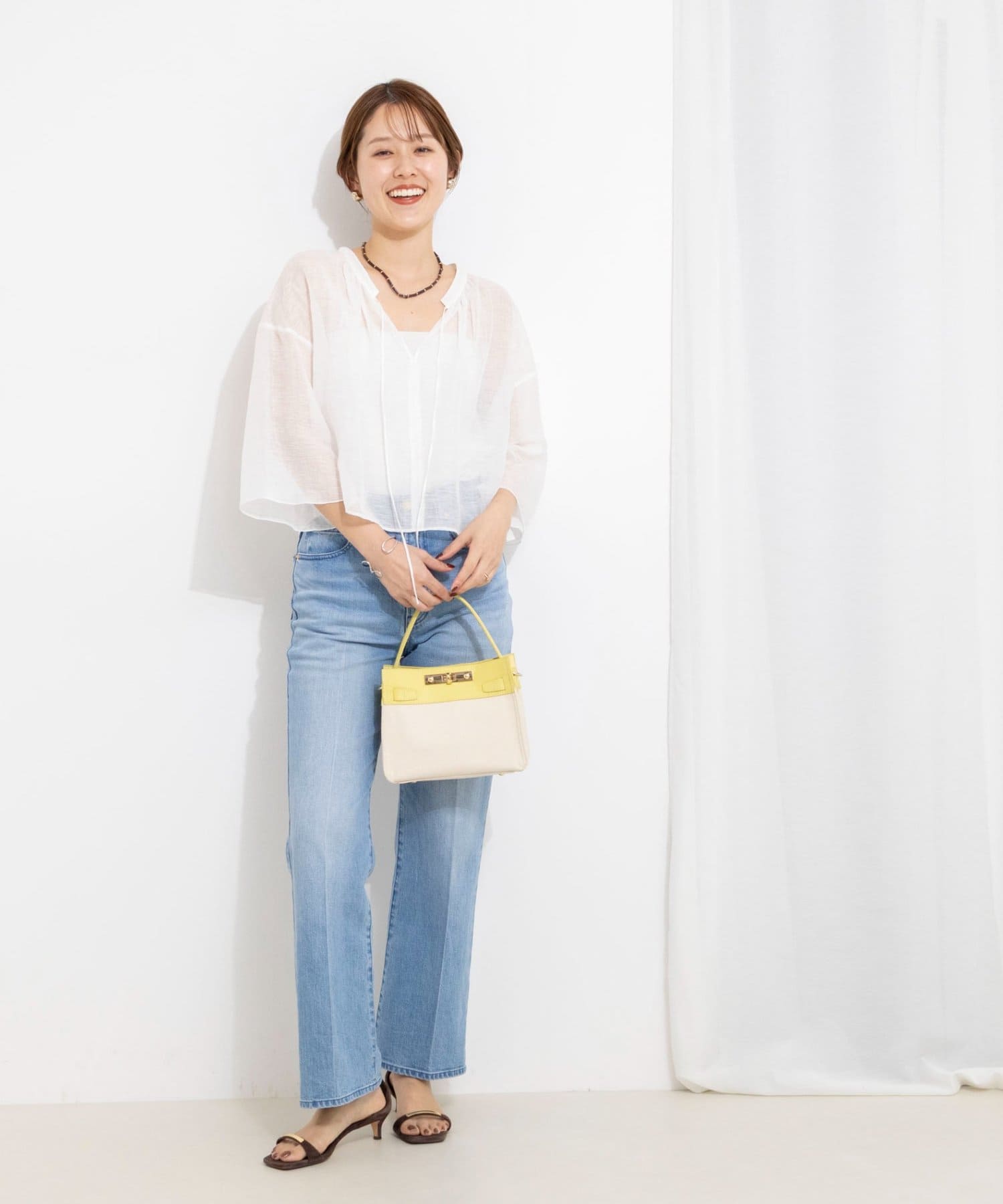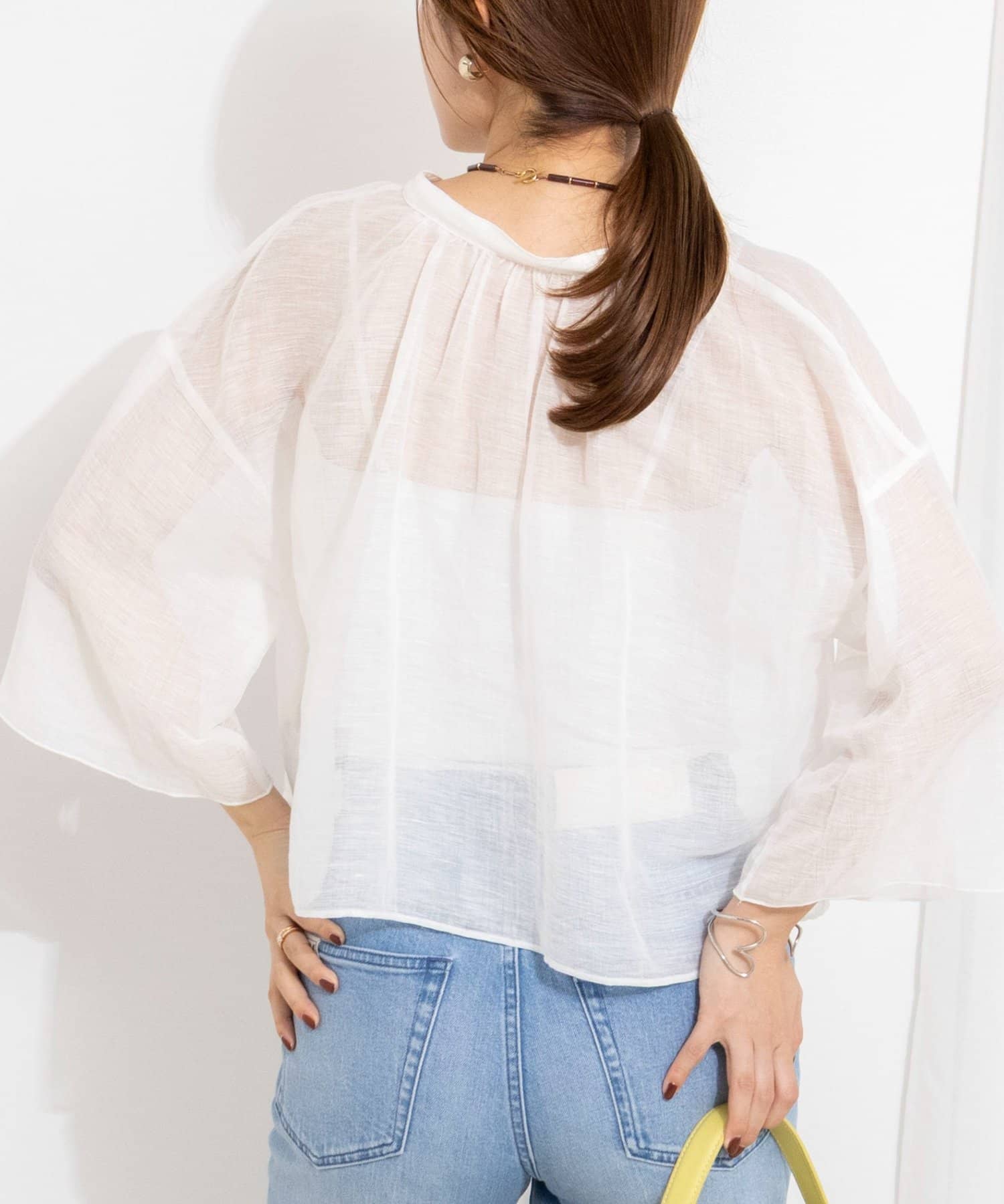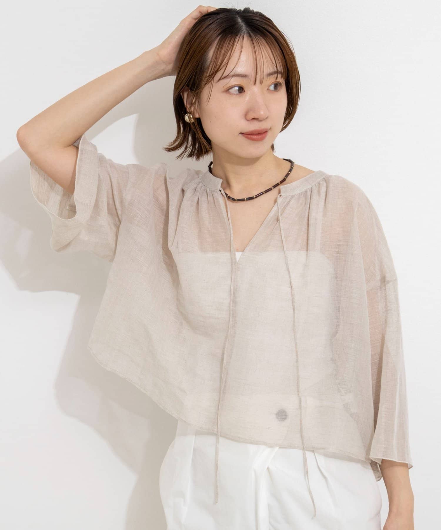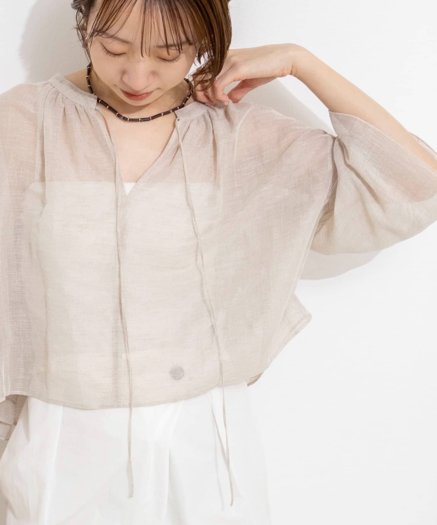 ウォッシャブルシアーリネンカールマイヤーショートブラウス
