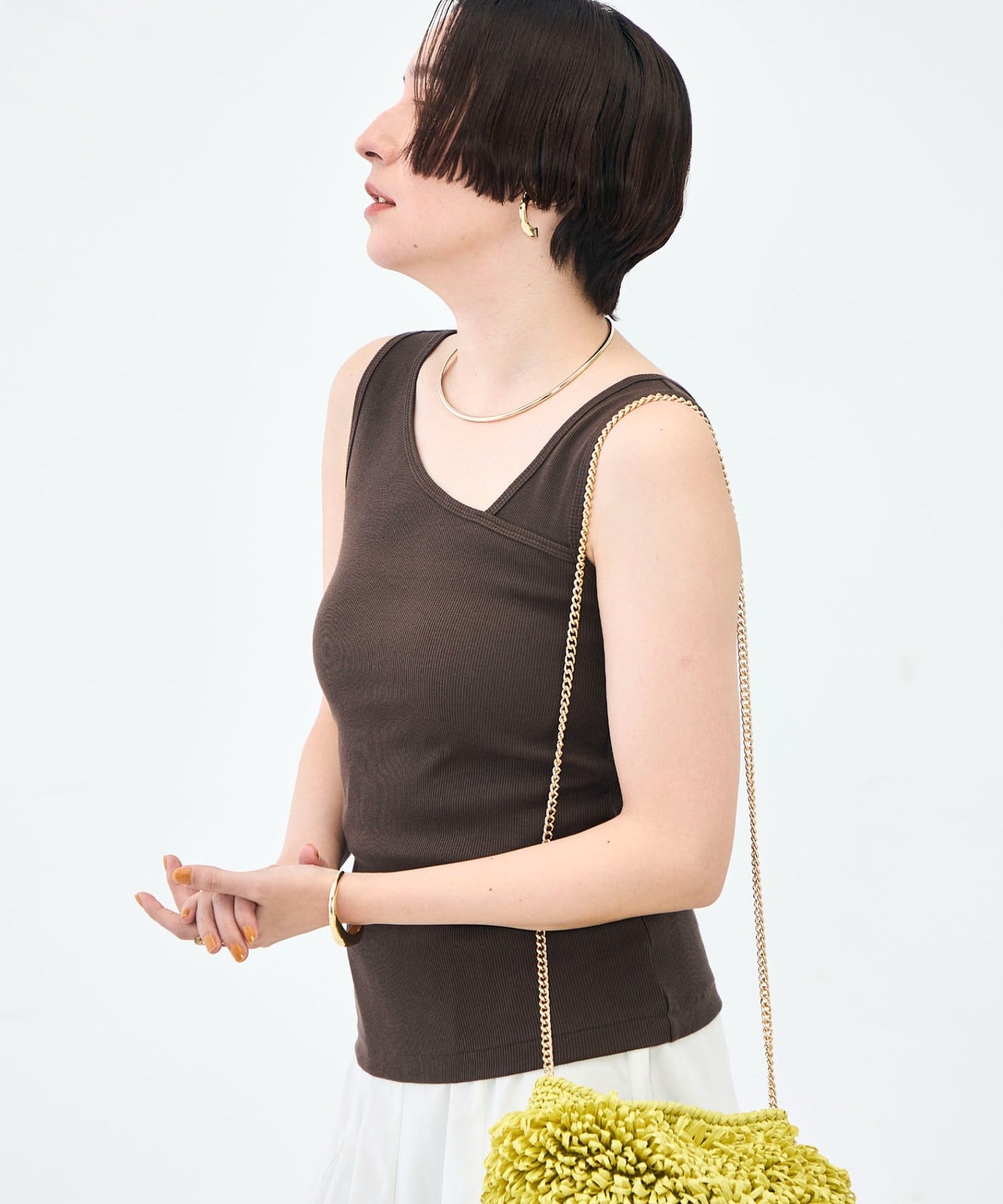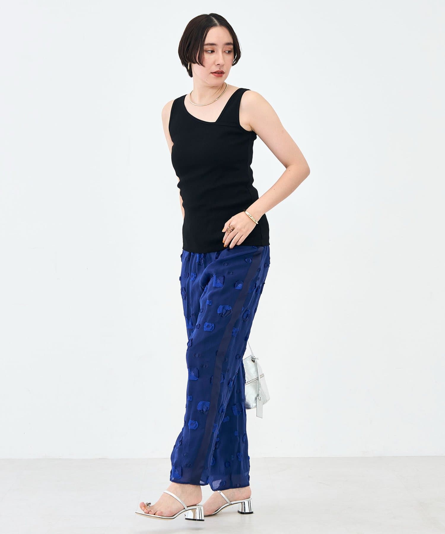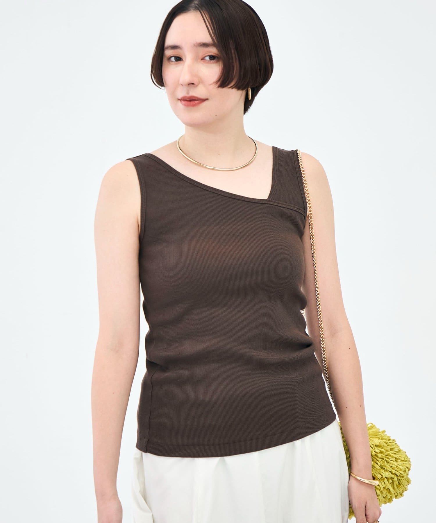 ウォッシャブルプレミアムテレコアシメ2WAYタンク