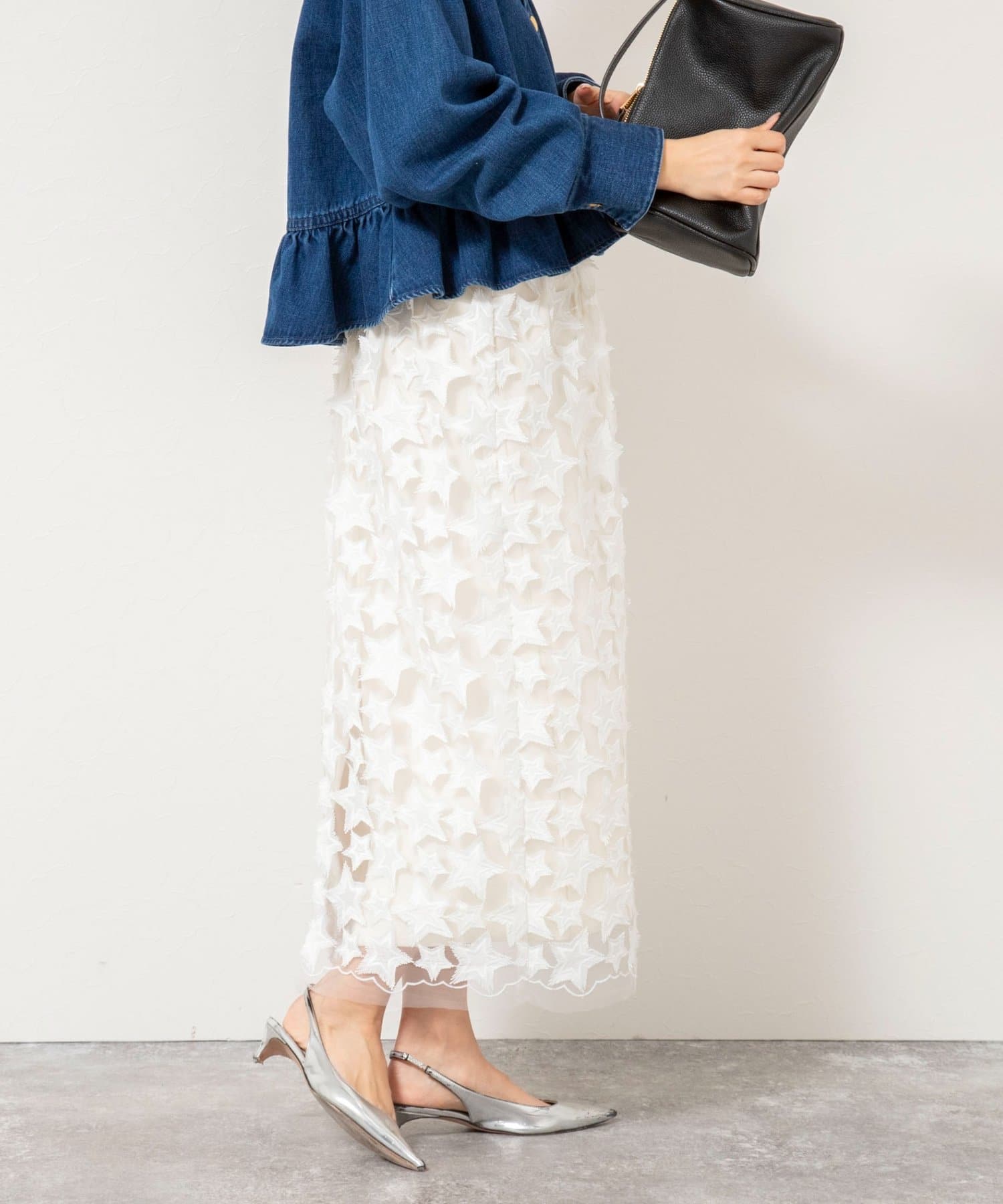 ・45周年を記念し、ブランドお馴染みの「星柄レース」をス贅沢に使った、特別なスターフリンジスカートが登場