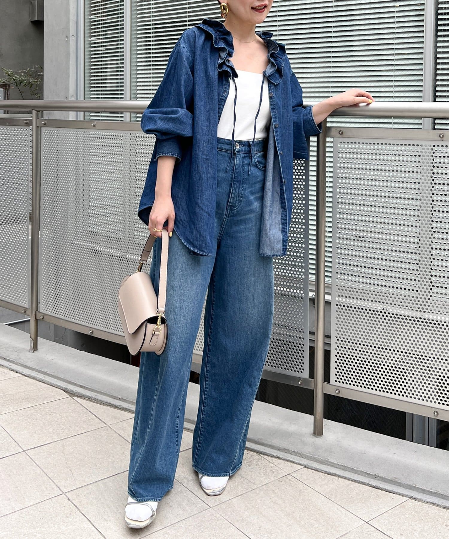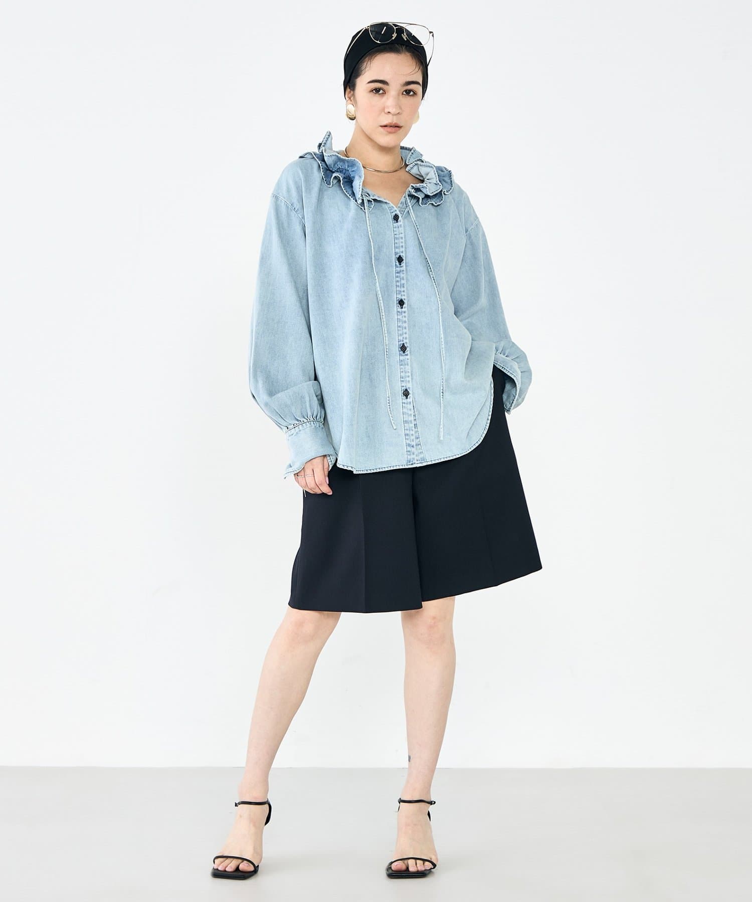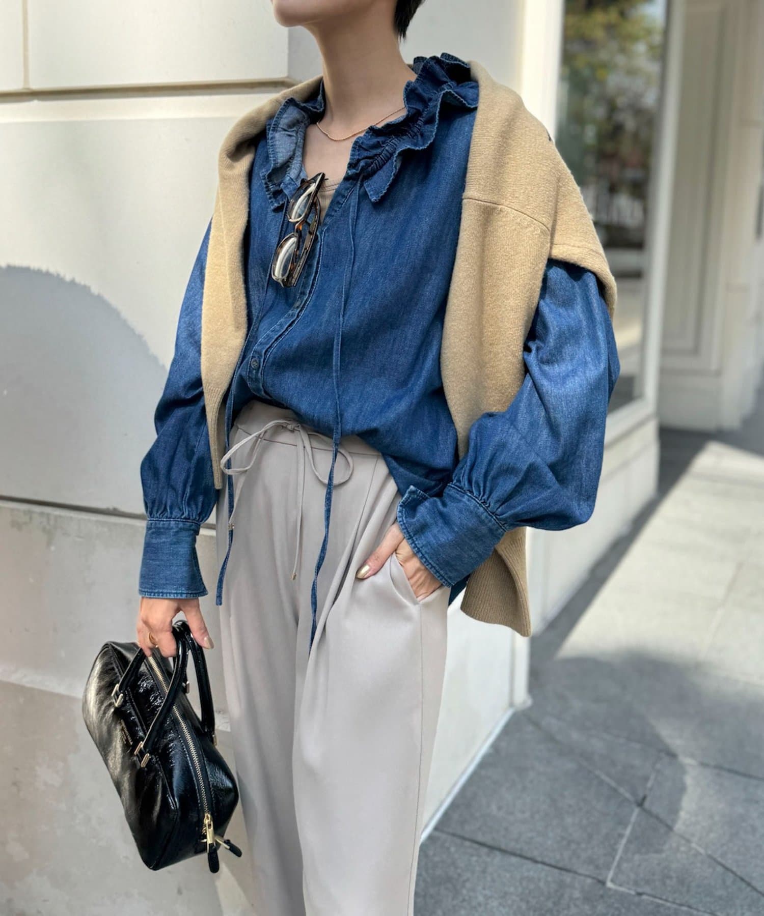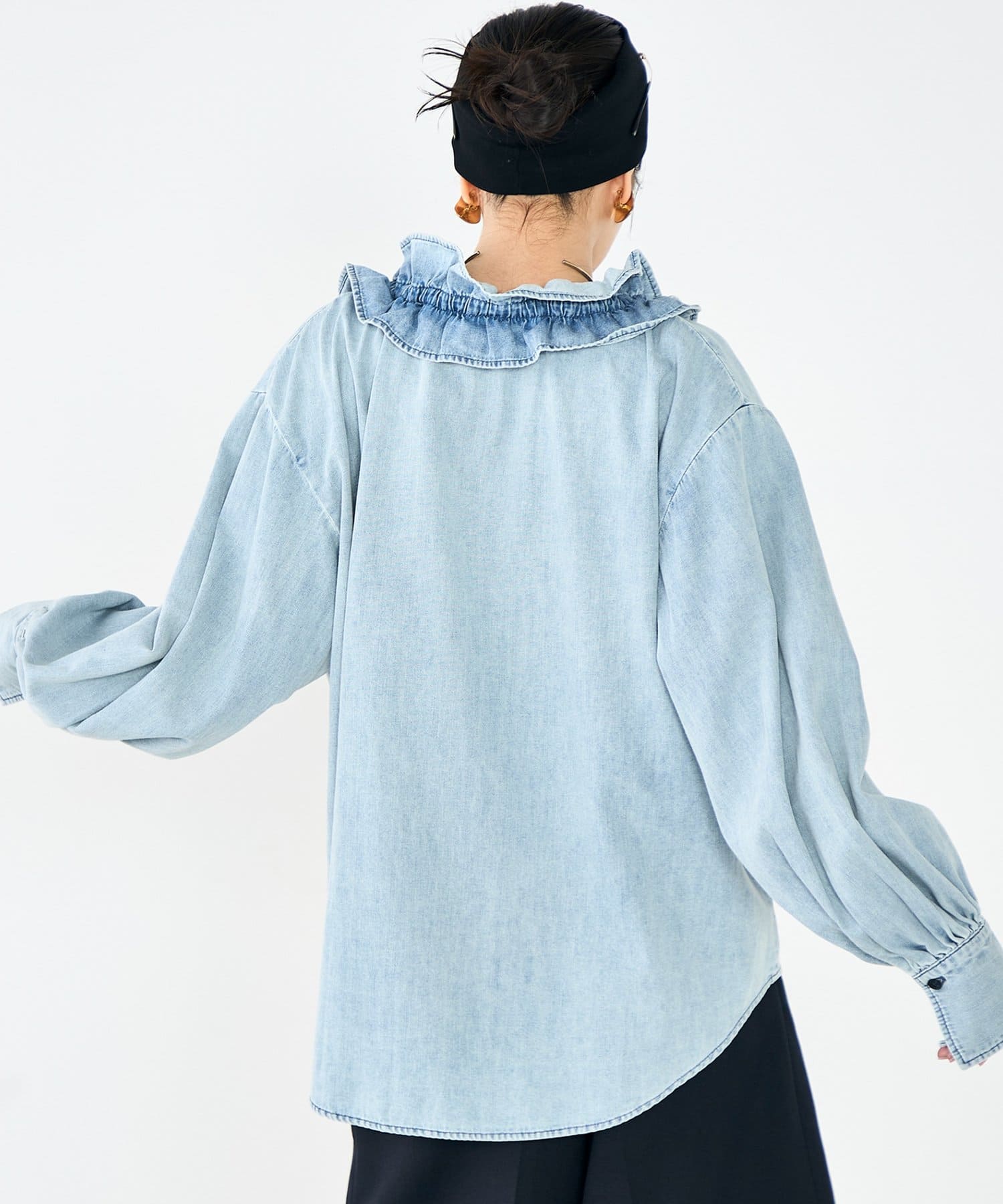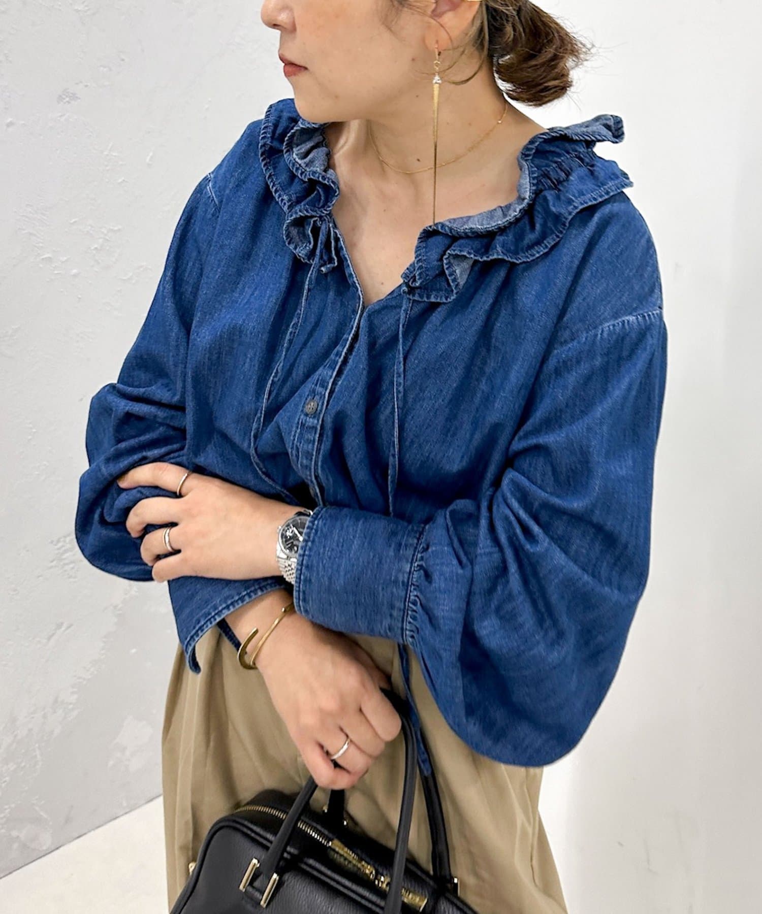 TOP > NOLLEY'S > レディース > トップス > シャツ/ブラウス(ボタン) > 【RM denim】フリルギャザーデニムブラウス
