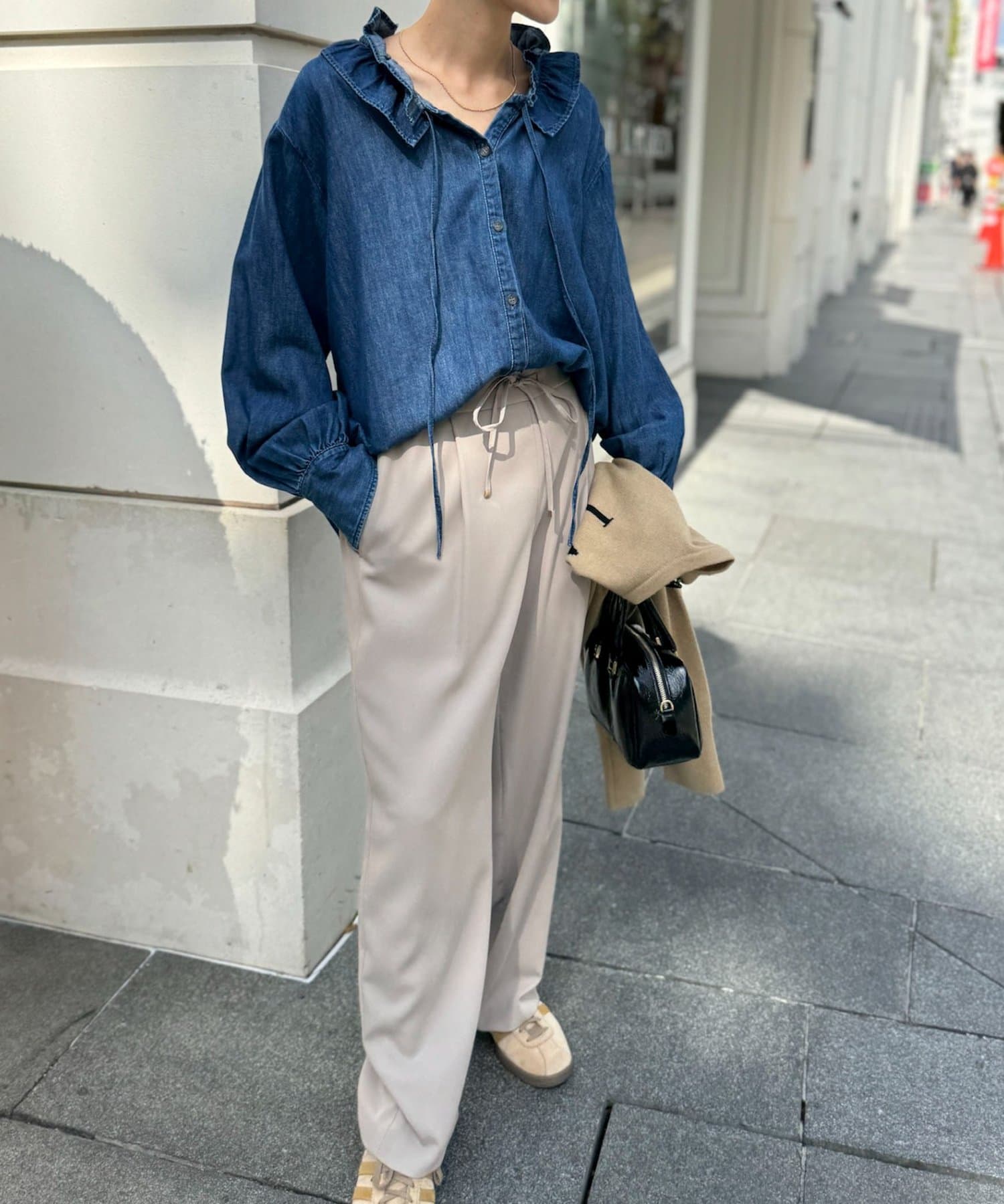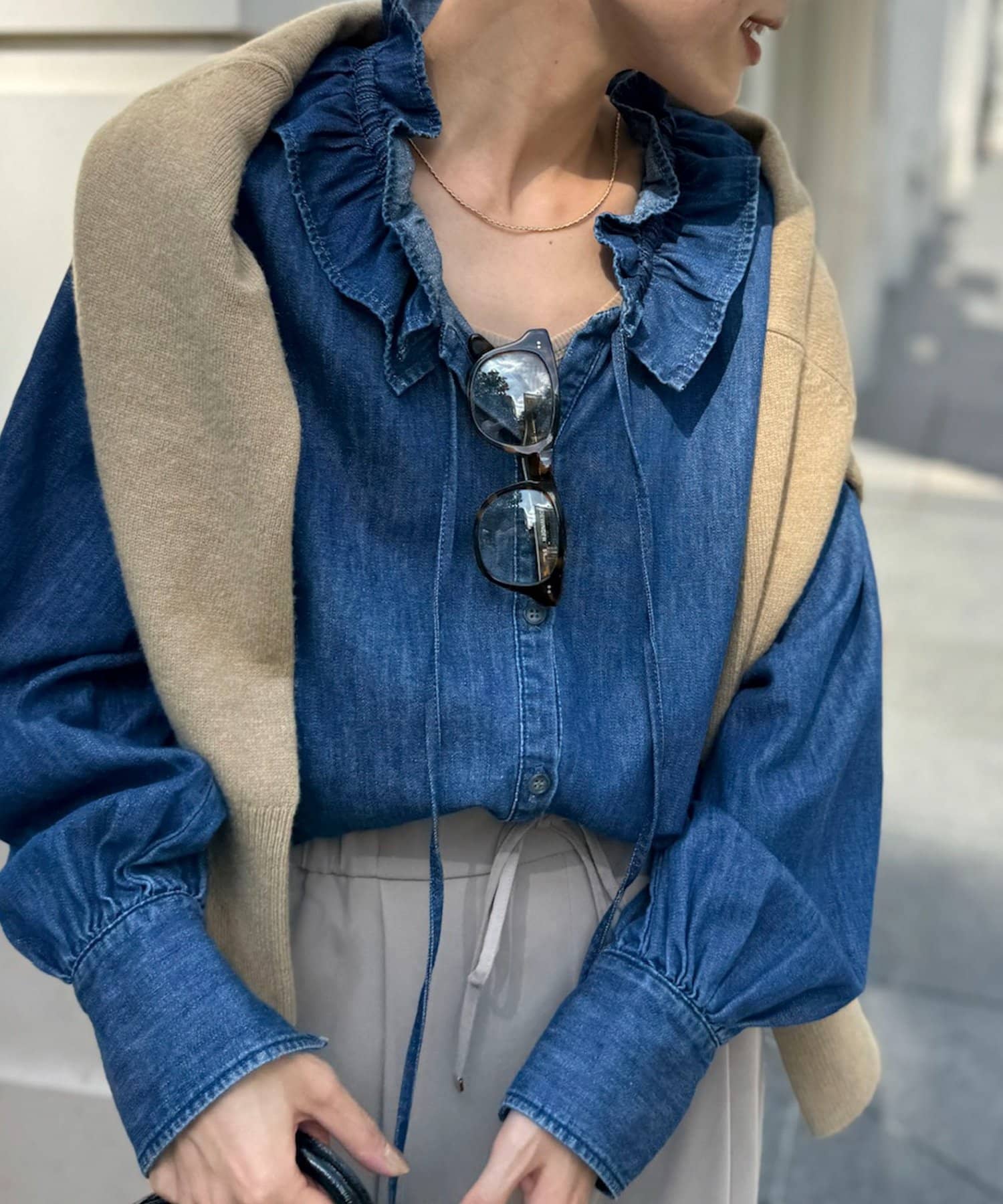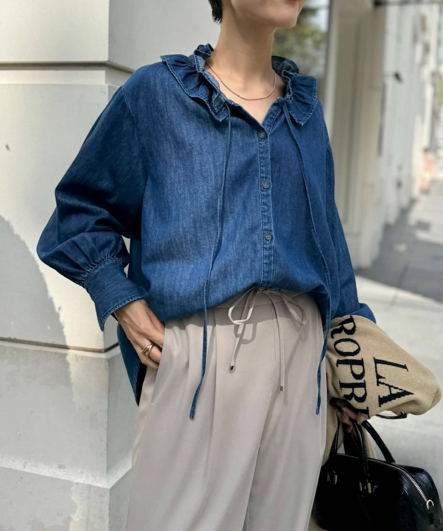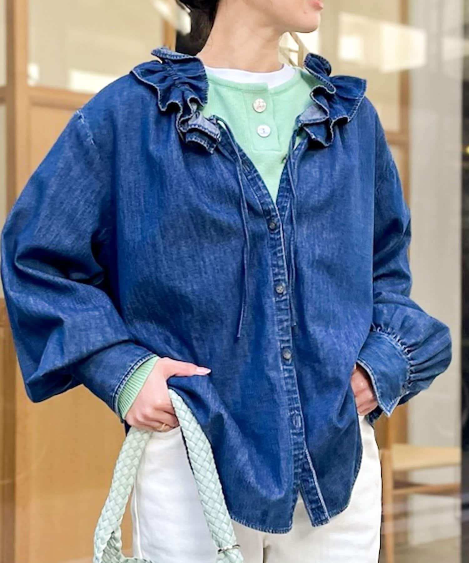・ロングセラーの襟フリルが可愛いデニムブラウスに新色登場!