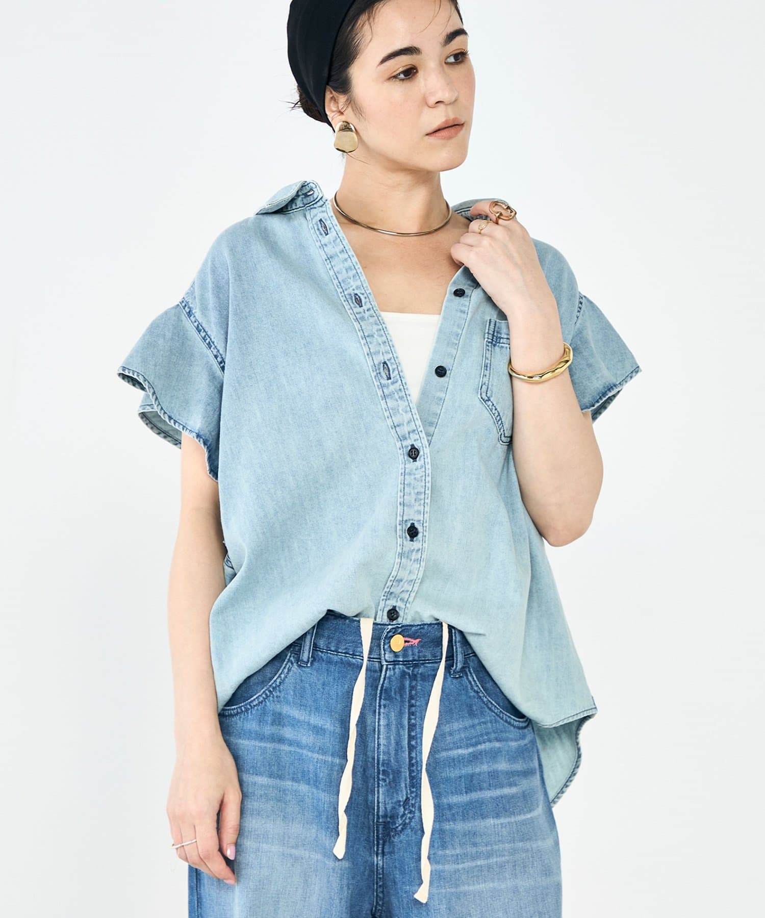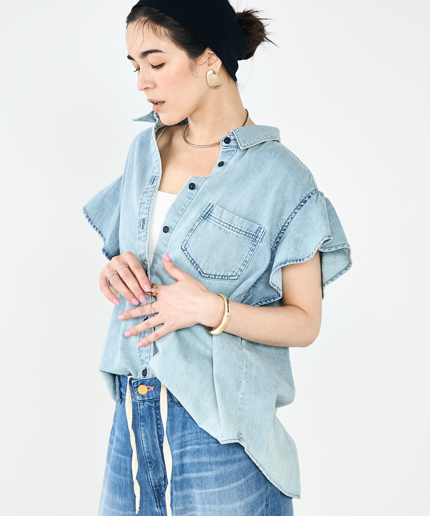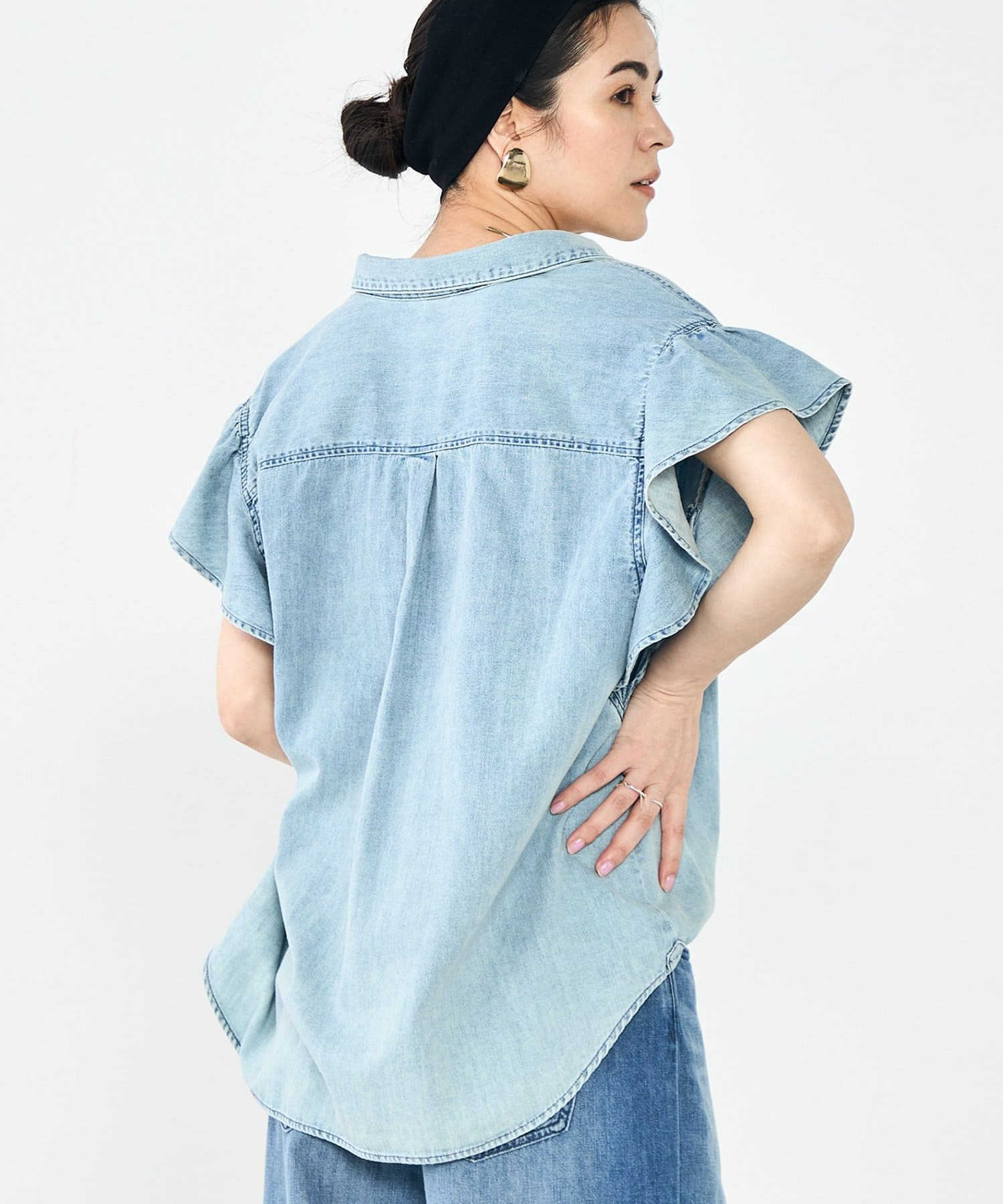 TOP > NOLLEY'S > レディース > トップス > シャツ/ブラウス(ボタン) > 【RM denim】ラッフルスリーブデニムブラウス