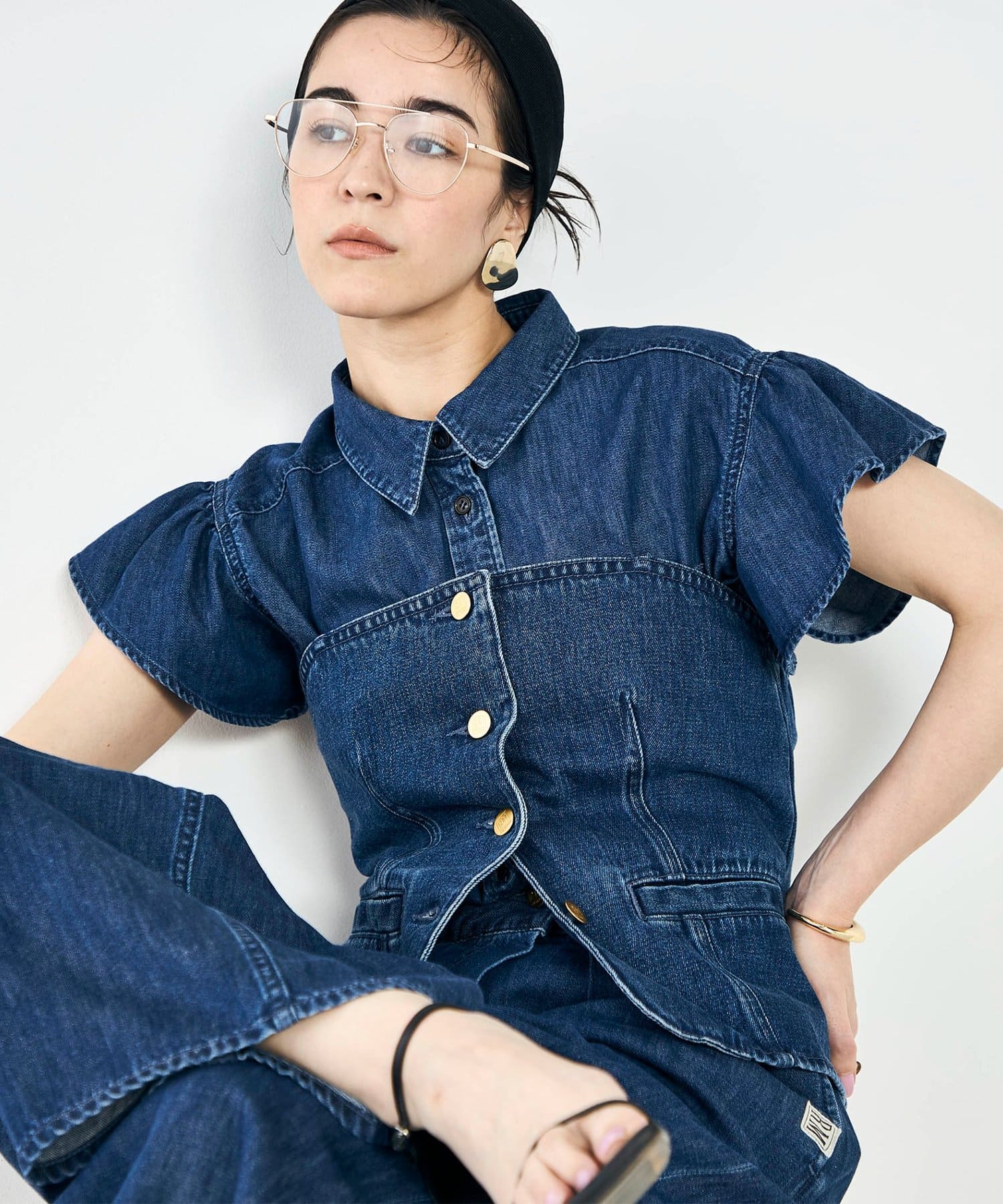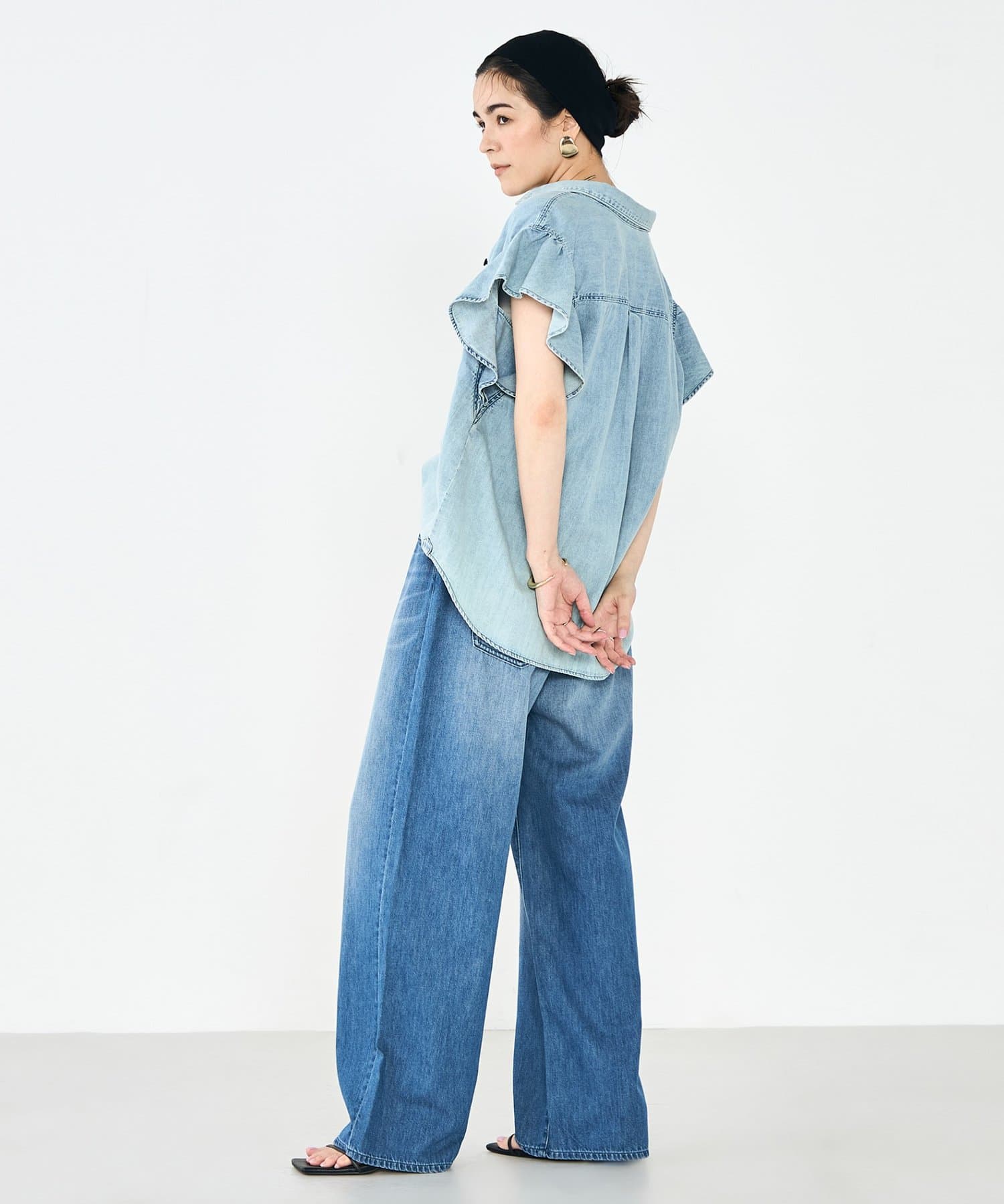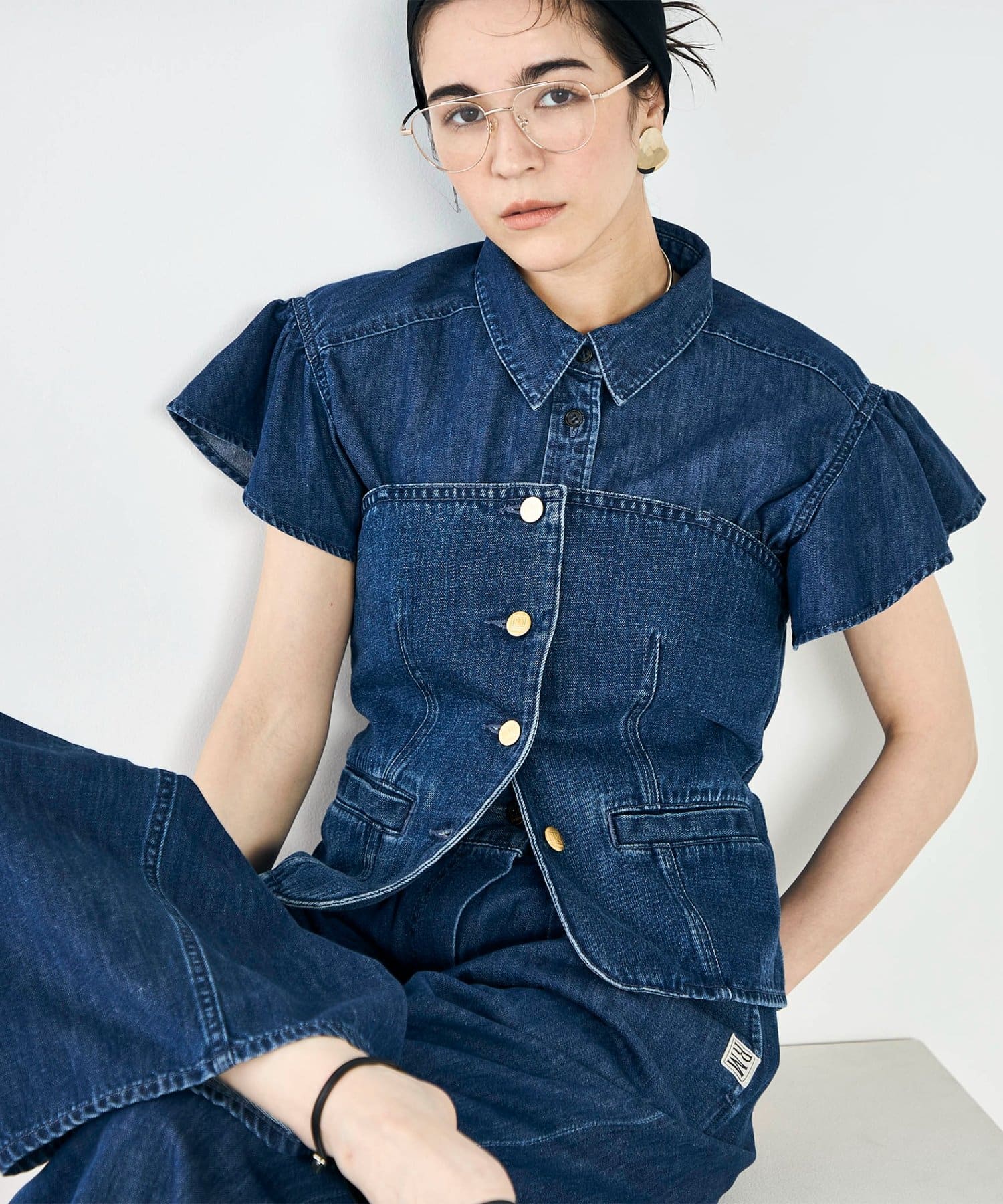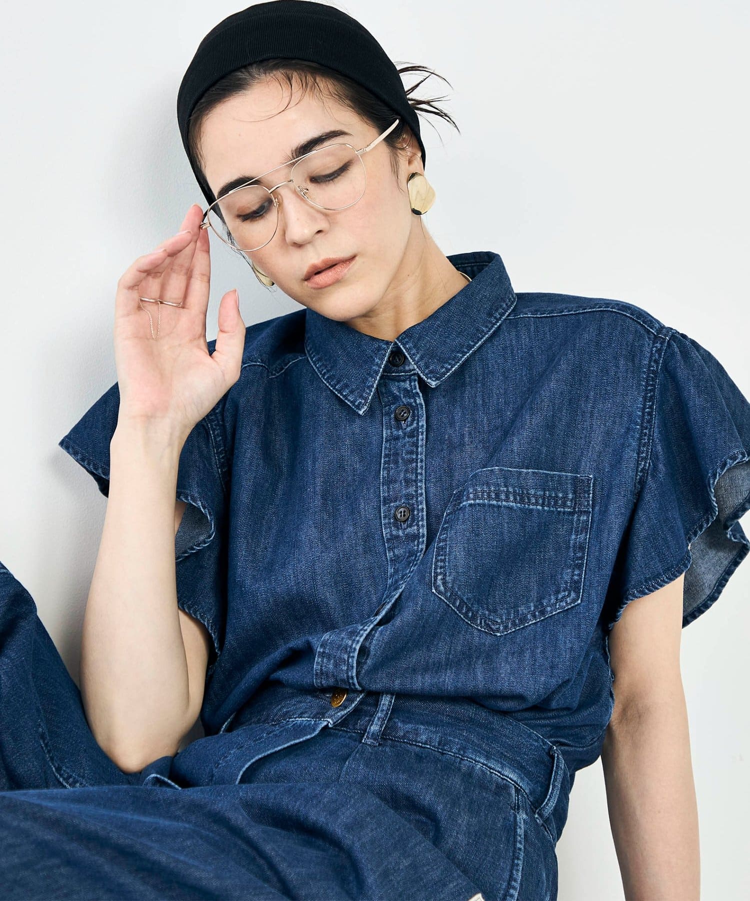 TOP > NOLLEY'S > レディース > トップス > シャツ/ブラウス(ボタン) > 【RM denim】ラッフルスリーブデニムブラウス