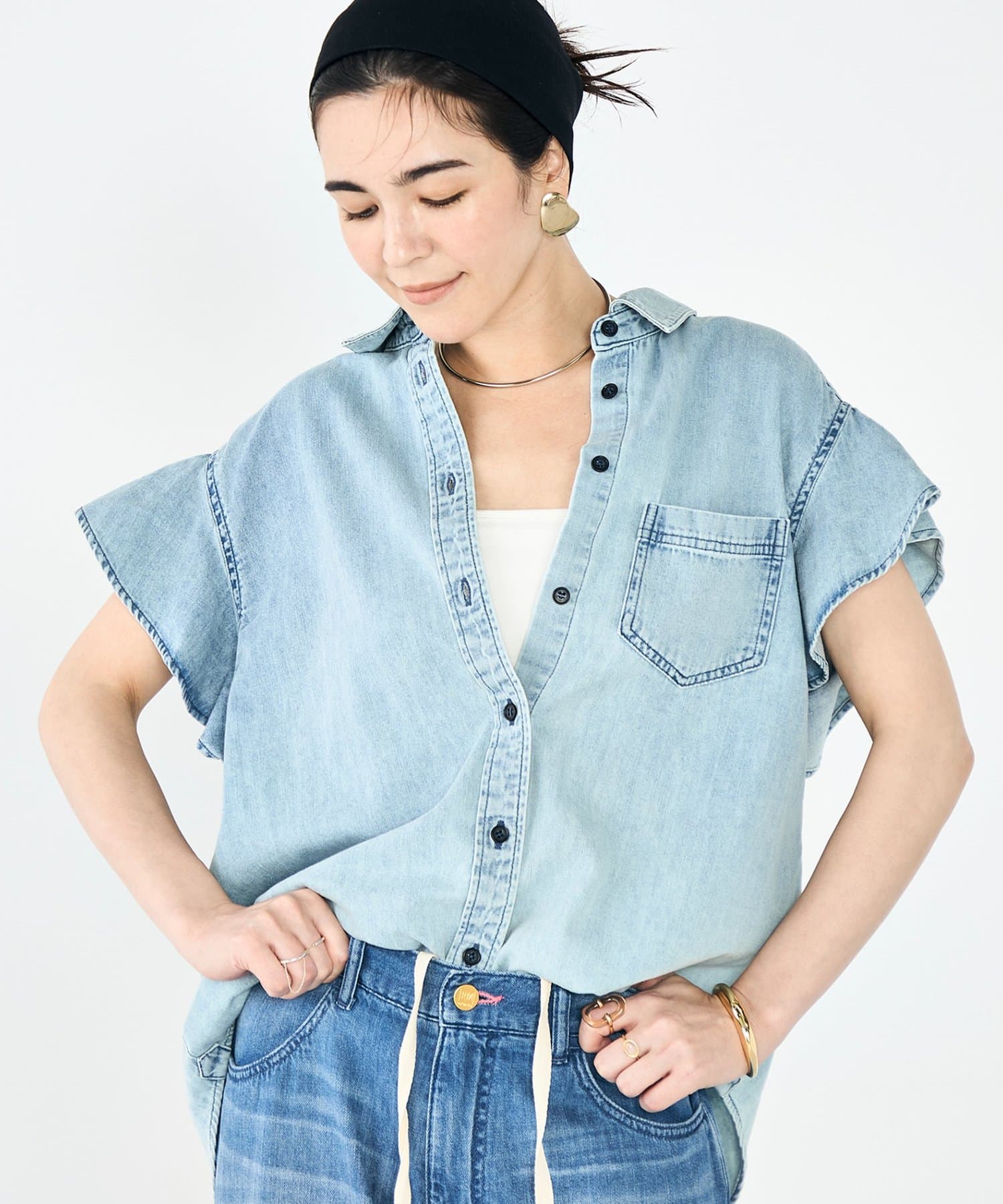 ・袖フリルが可愛いフレンチスリーブのデニムブラウス