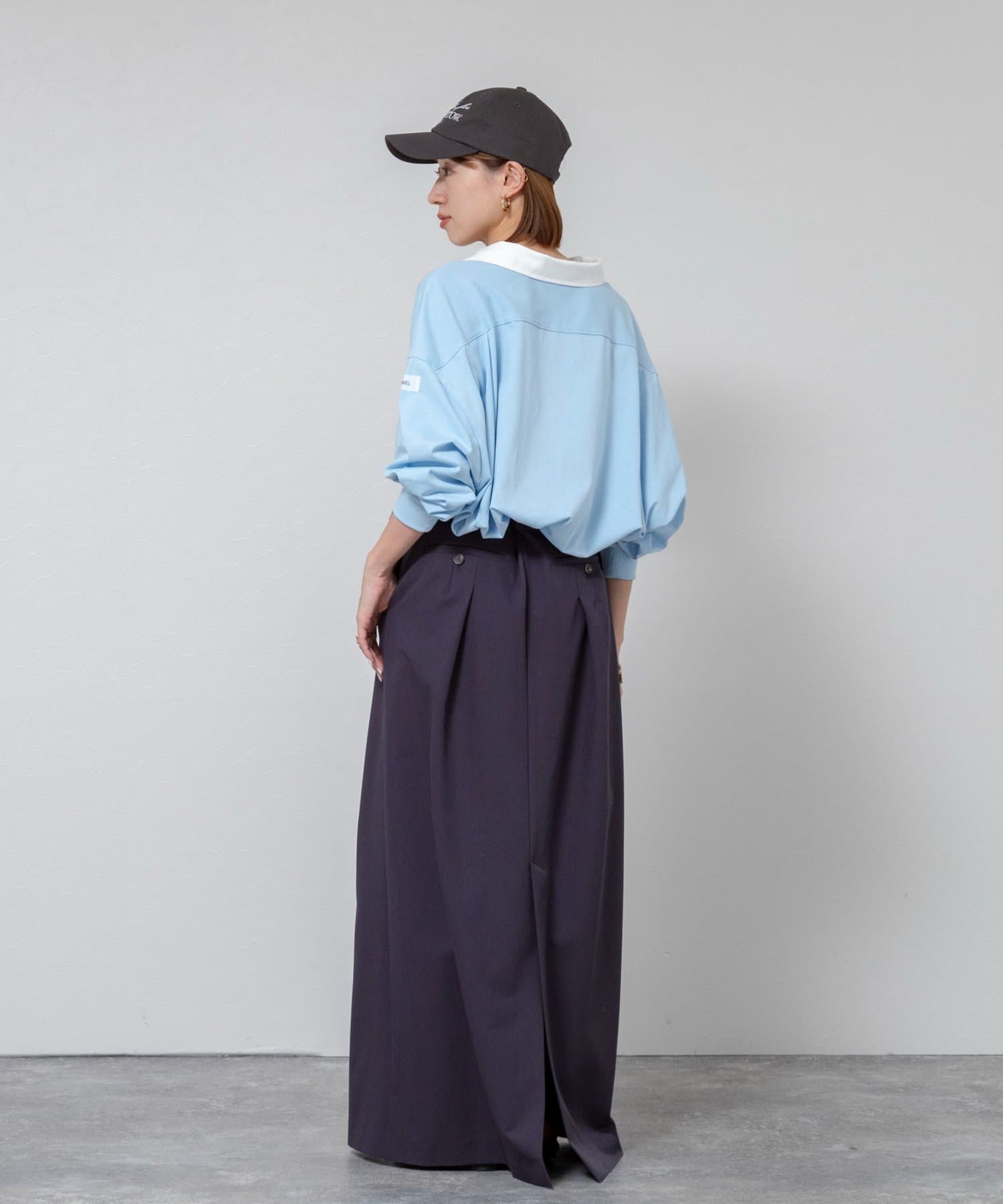・後ろ身頃に施したタックが、着用時に自然な立体感と抜け感を生み出し、リラックスした印象の中に女性らしさを添える一枚
