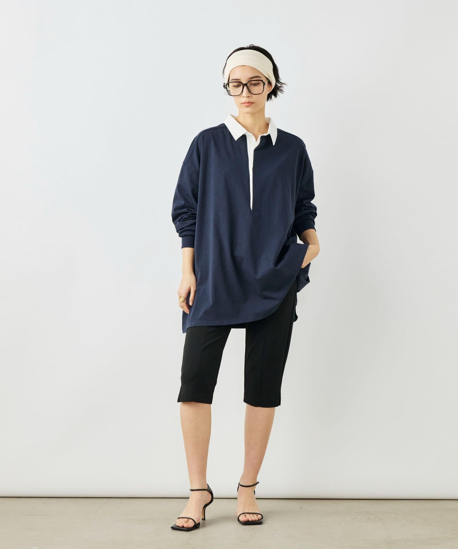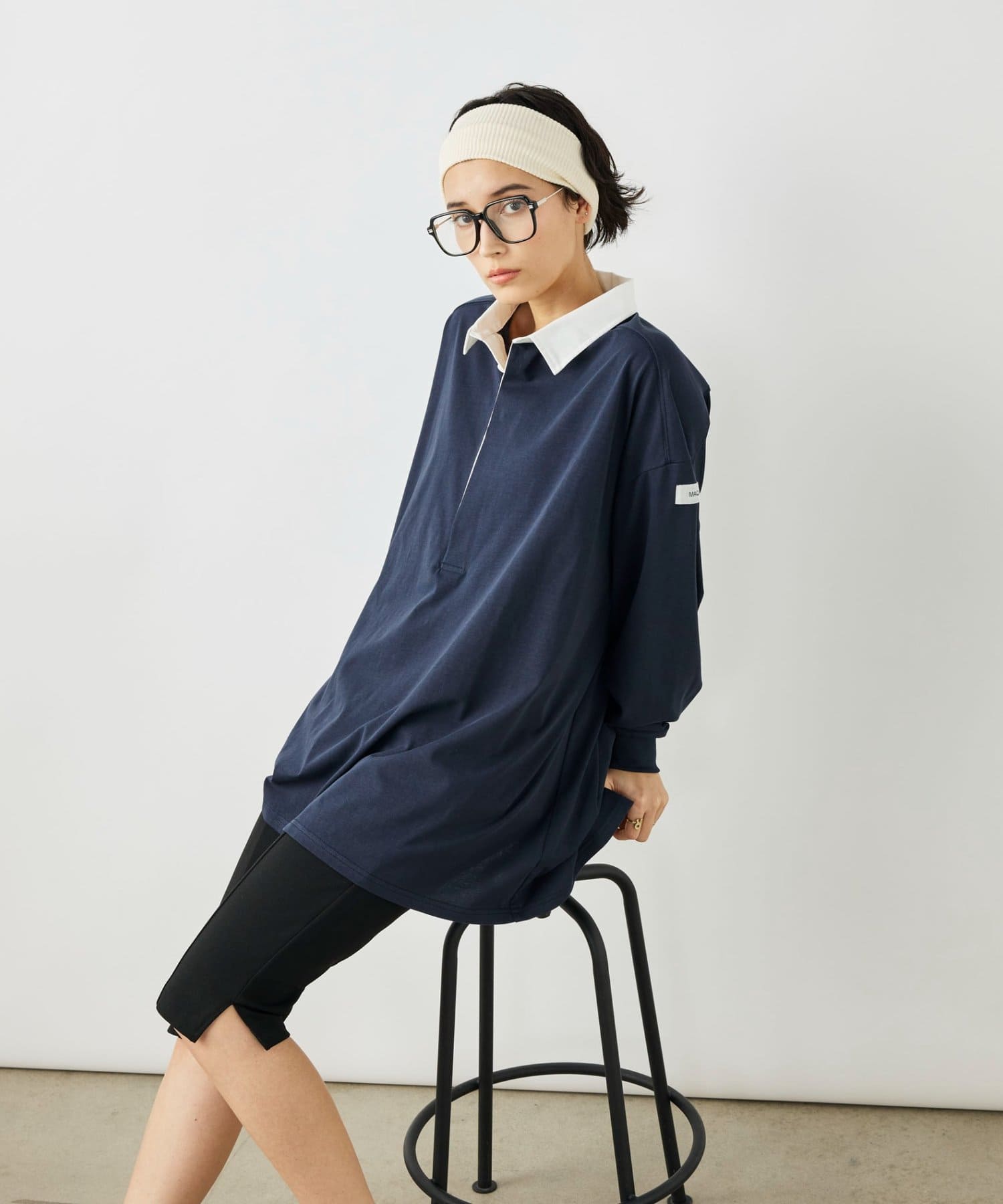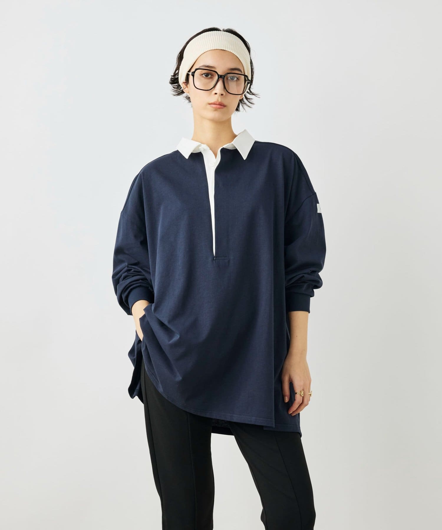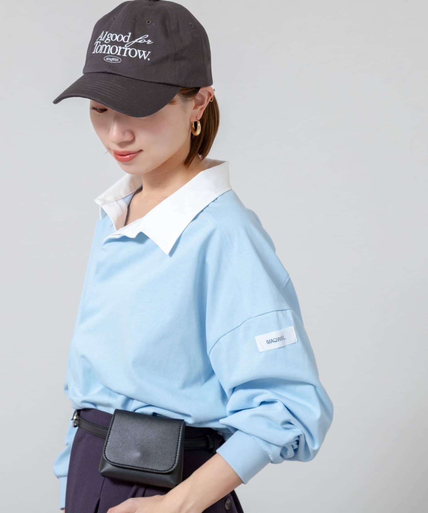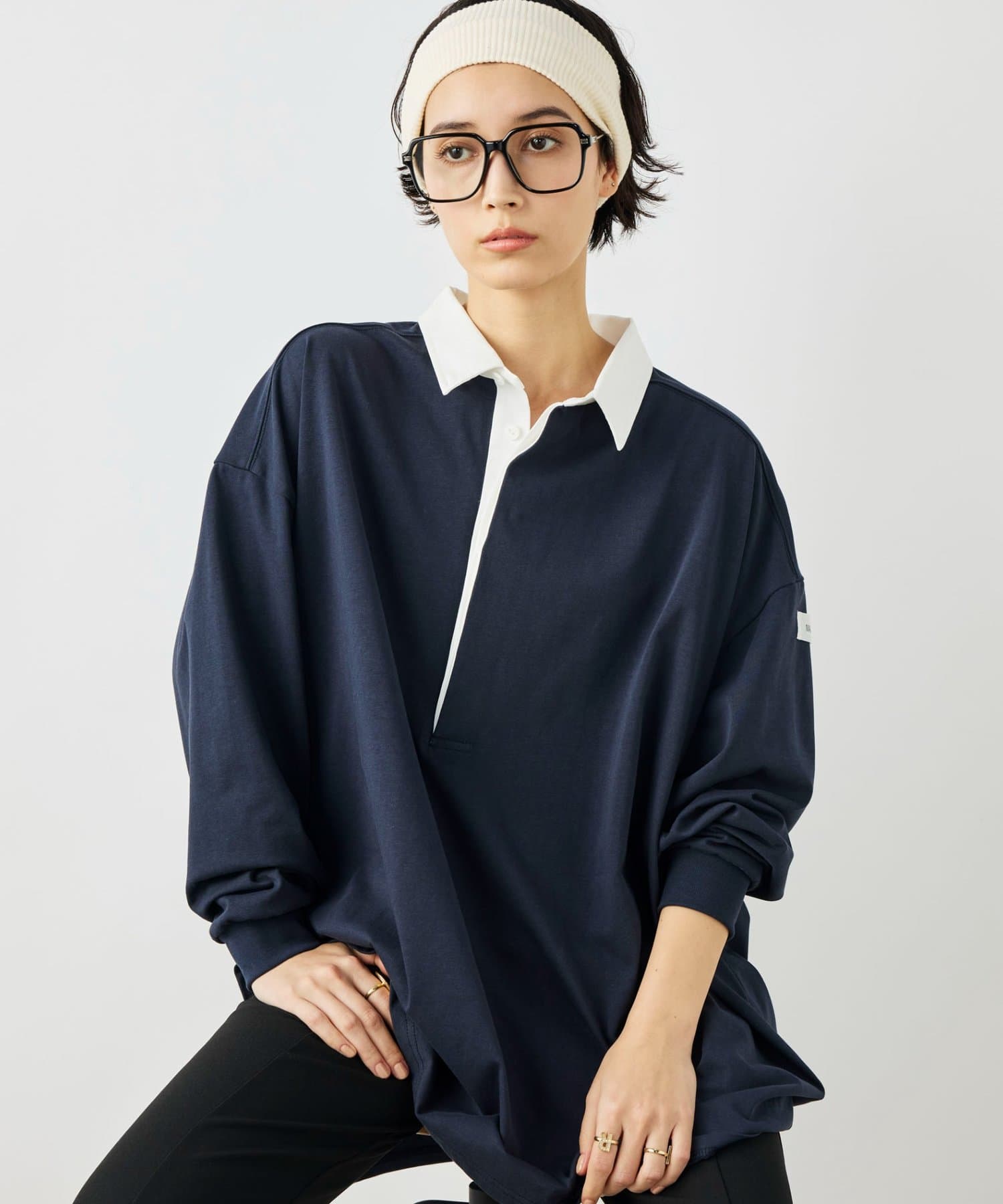 ・襟部分にはシャツ素材を使用し、カジュアルすぎず、きれいめな印象に