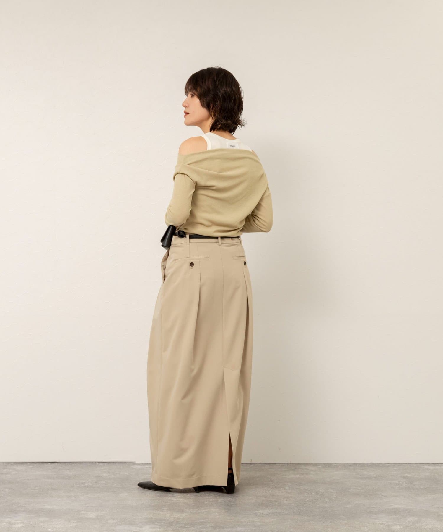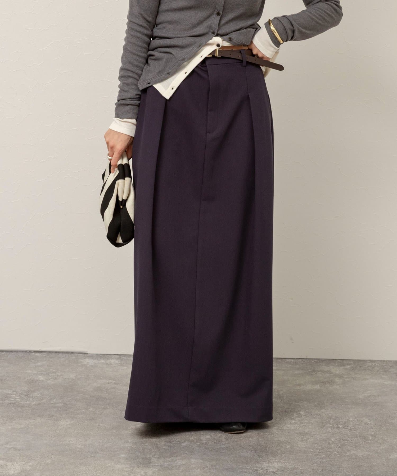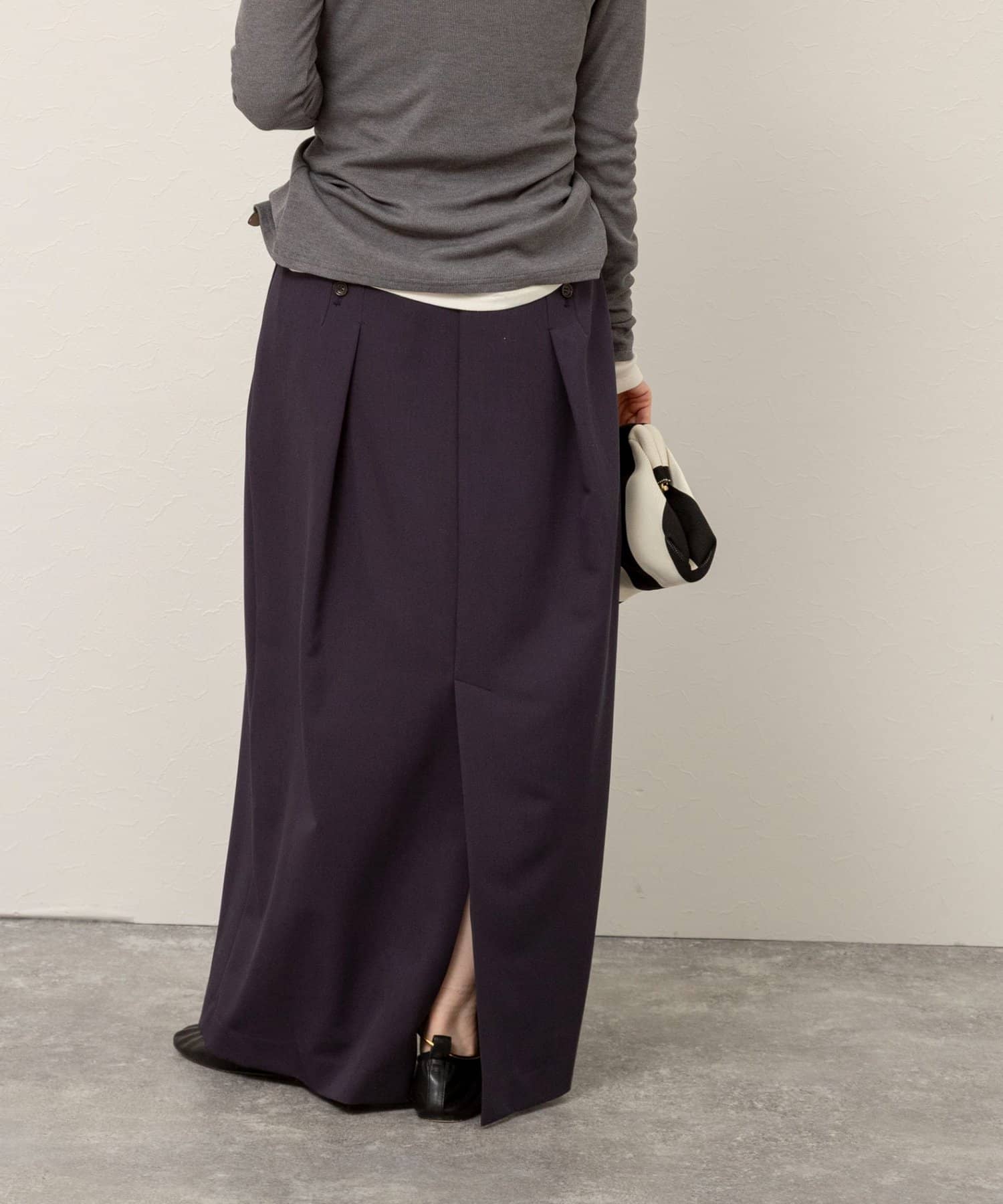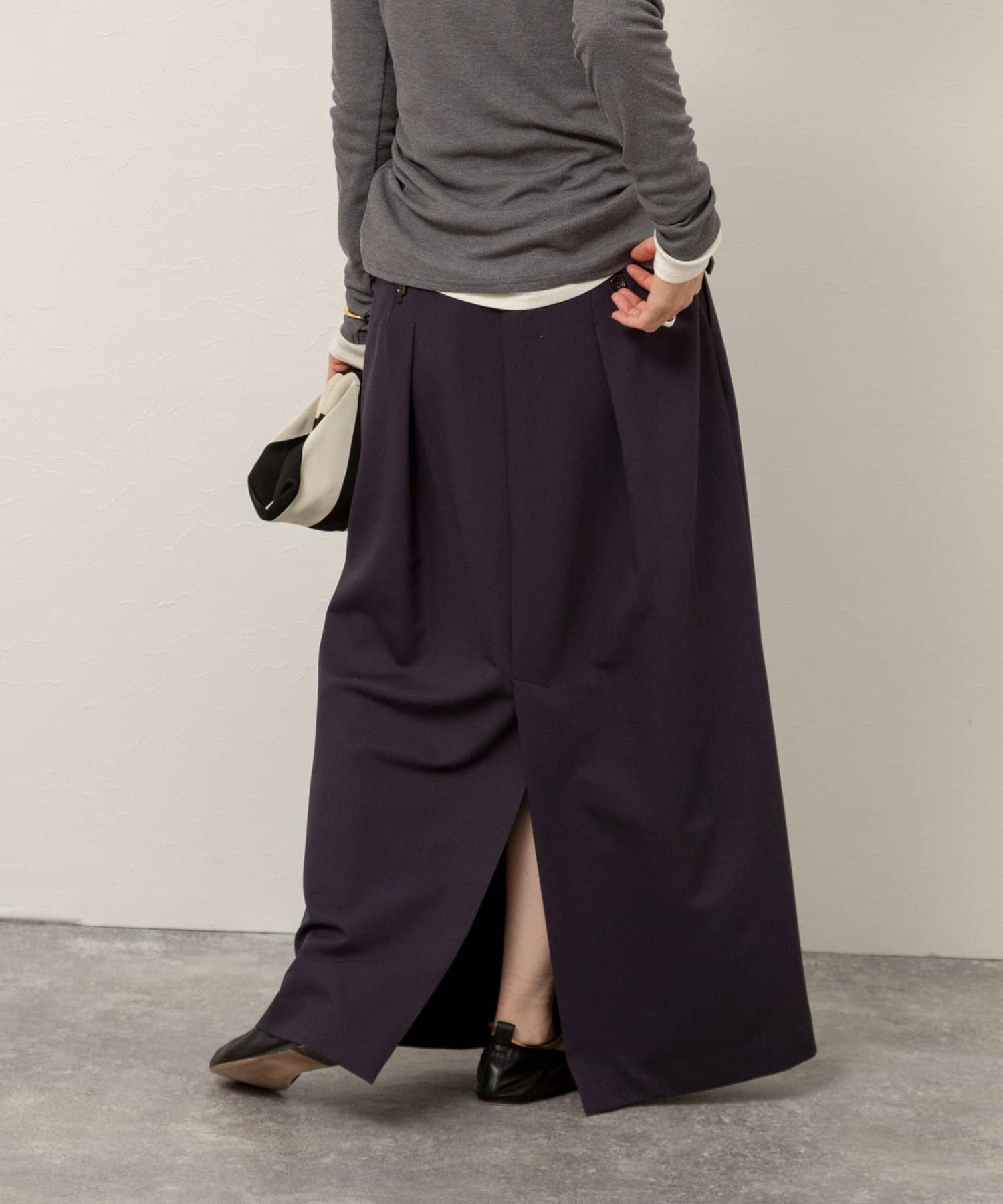 ・フロントとバックの両方にタックを施し、立体感のあるストレートシルエットに仕上げたロングスカート