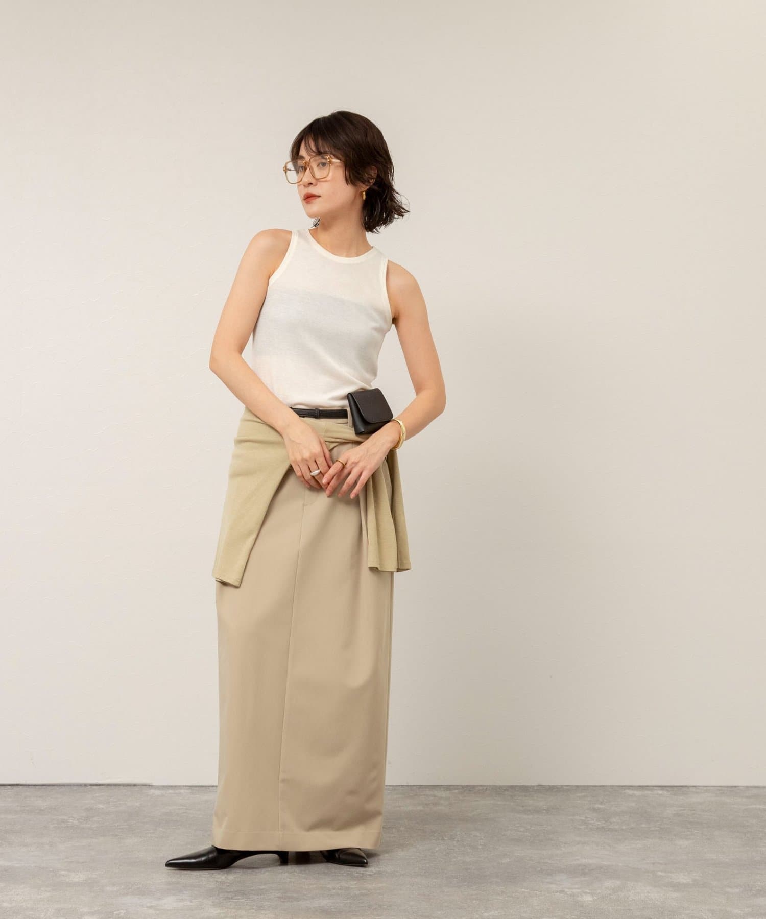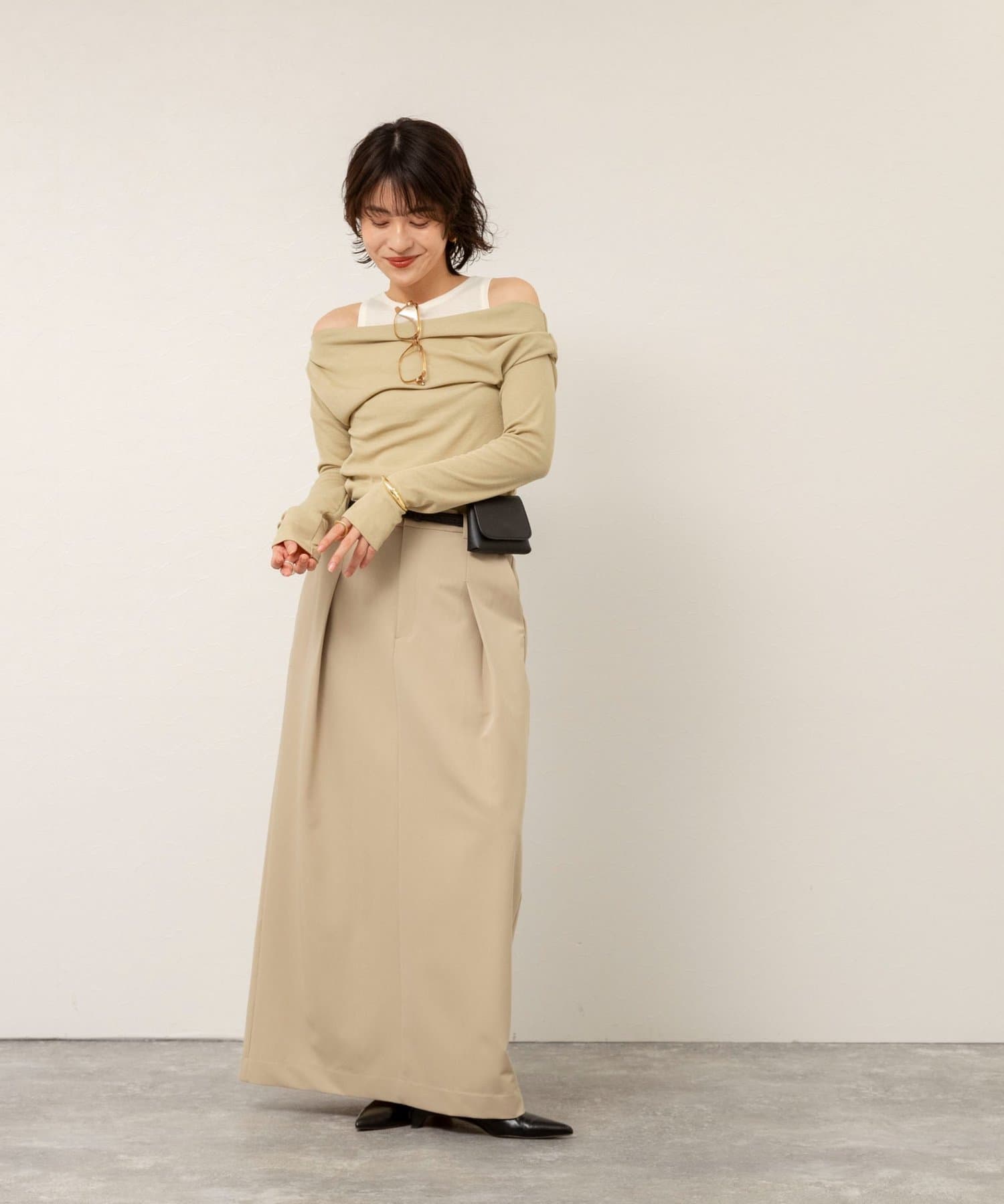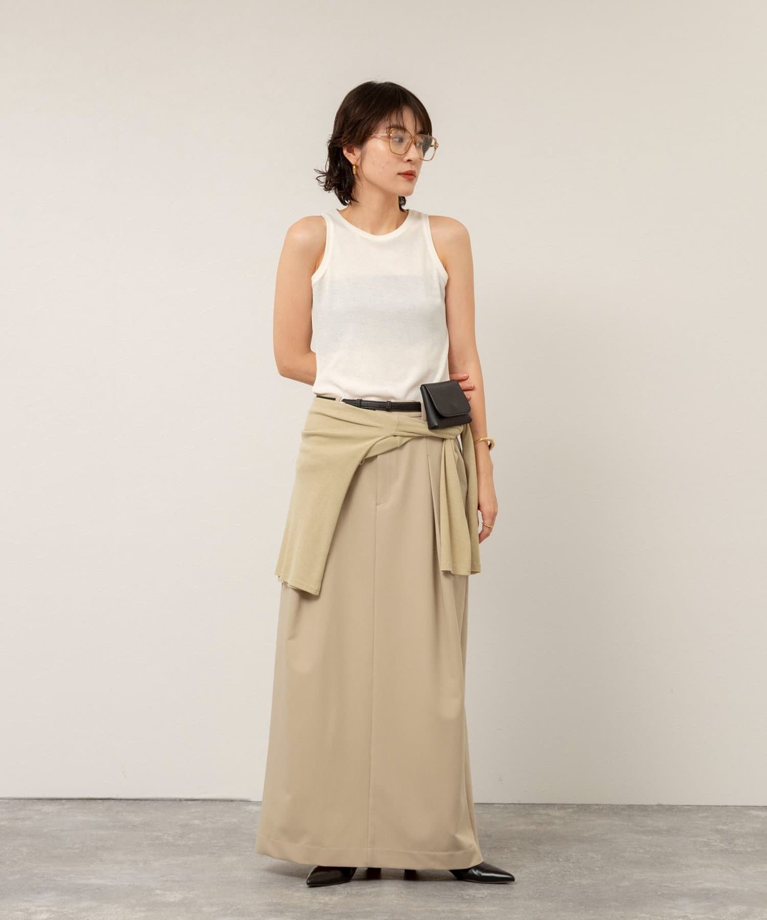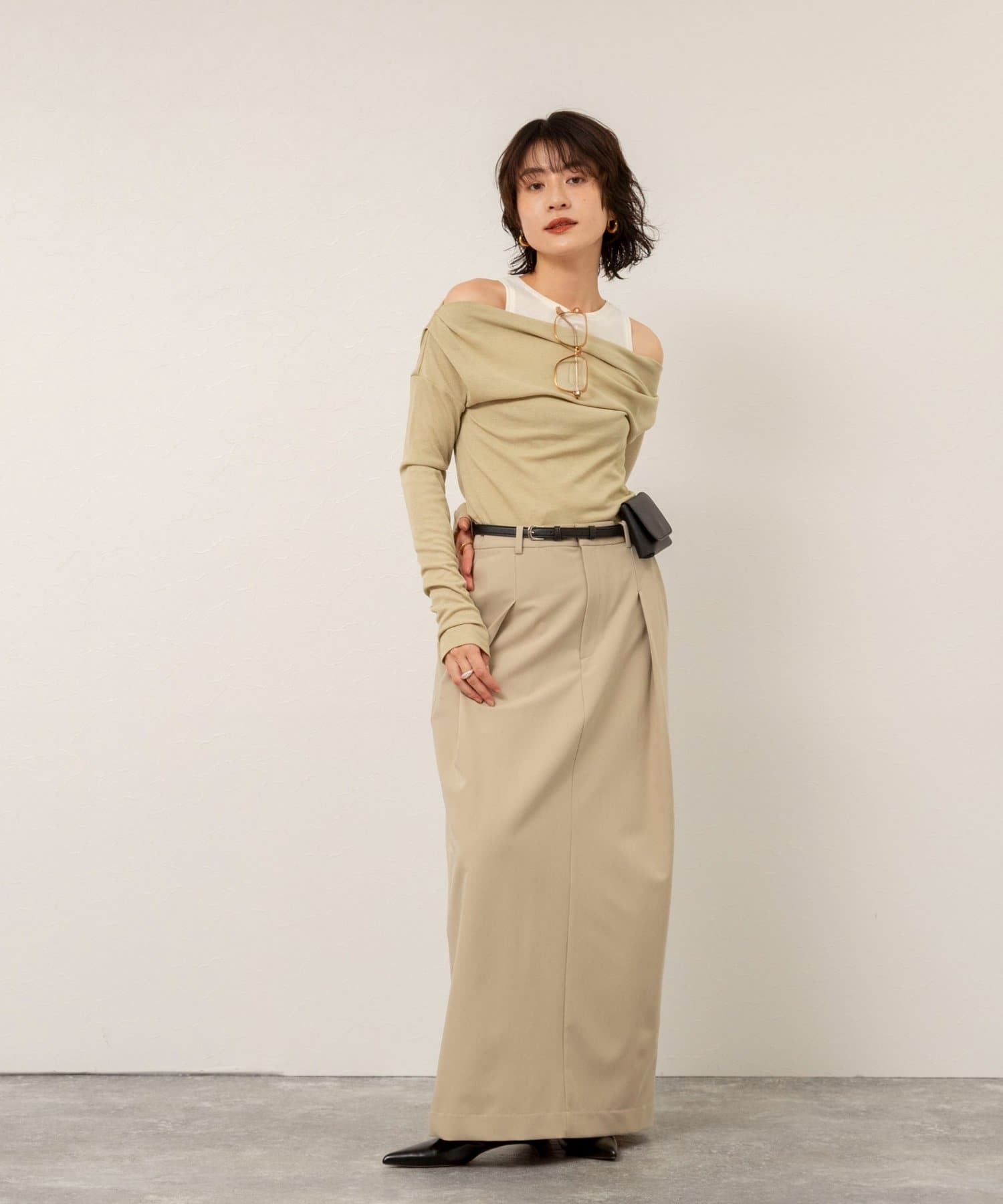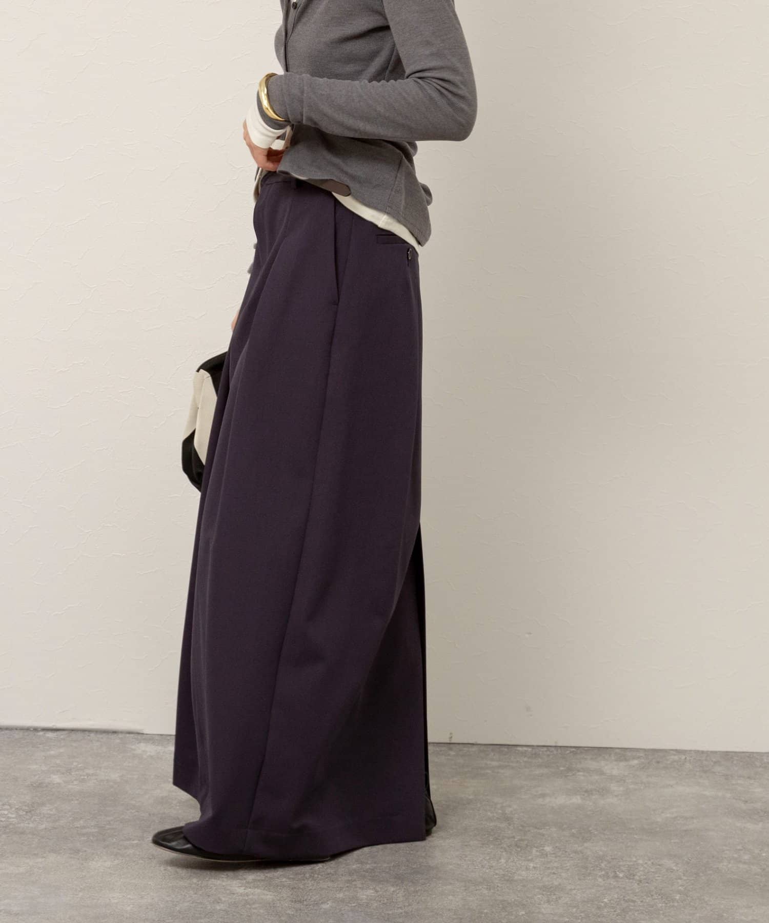 ・フロントとバックの両方にタックを施し、立体感のあるストレートシルエットに仕上げたロングスカート