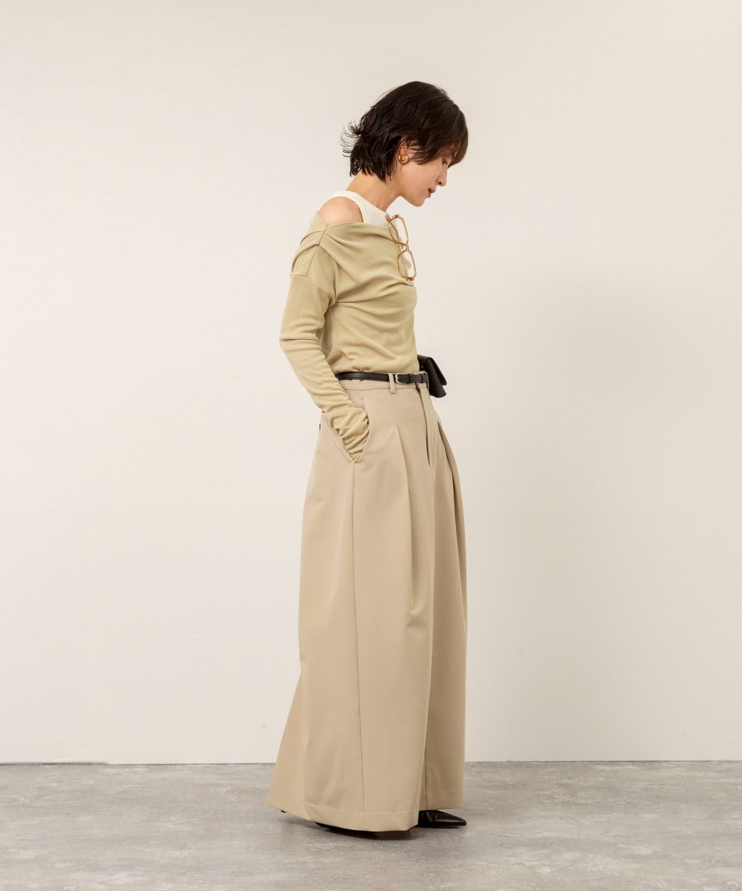 ・腰まわりはすっきりと見せつつ、前後に入れたタックにより程よい安心感のあるゆとり