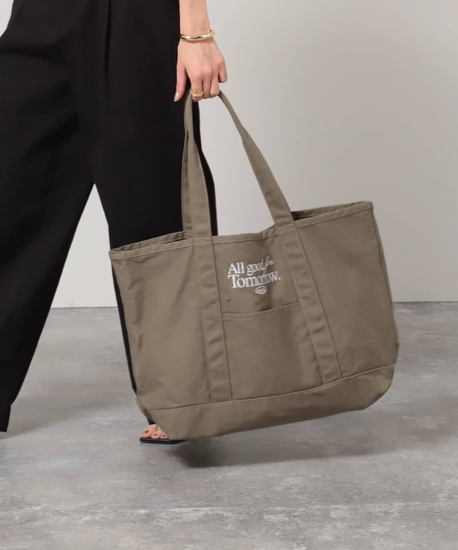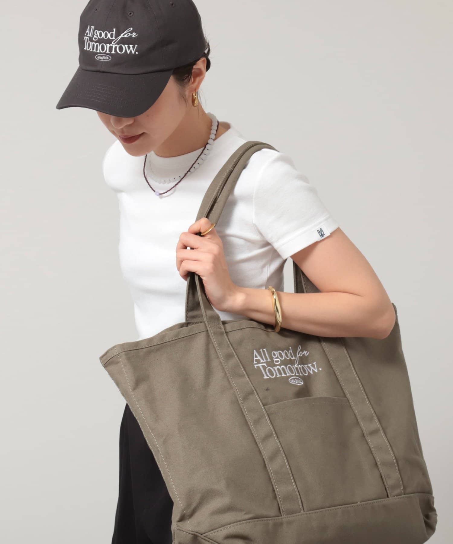 ・フロントに刺繍された”All good for Tomorrow"のロゴがポイントに