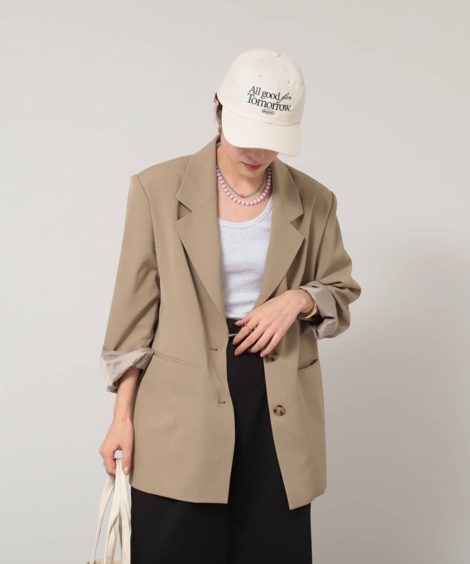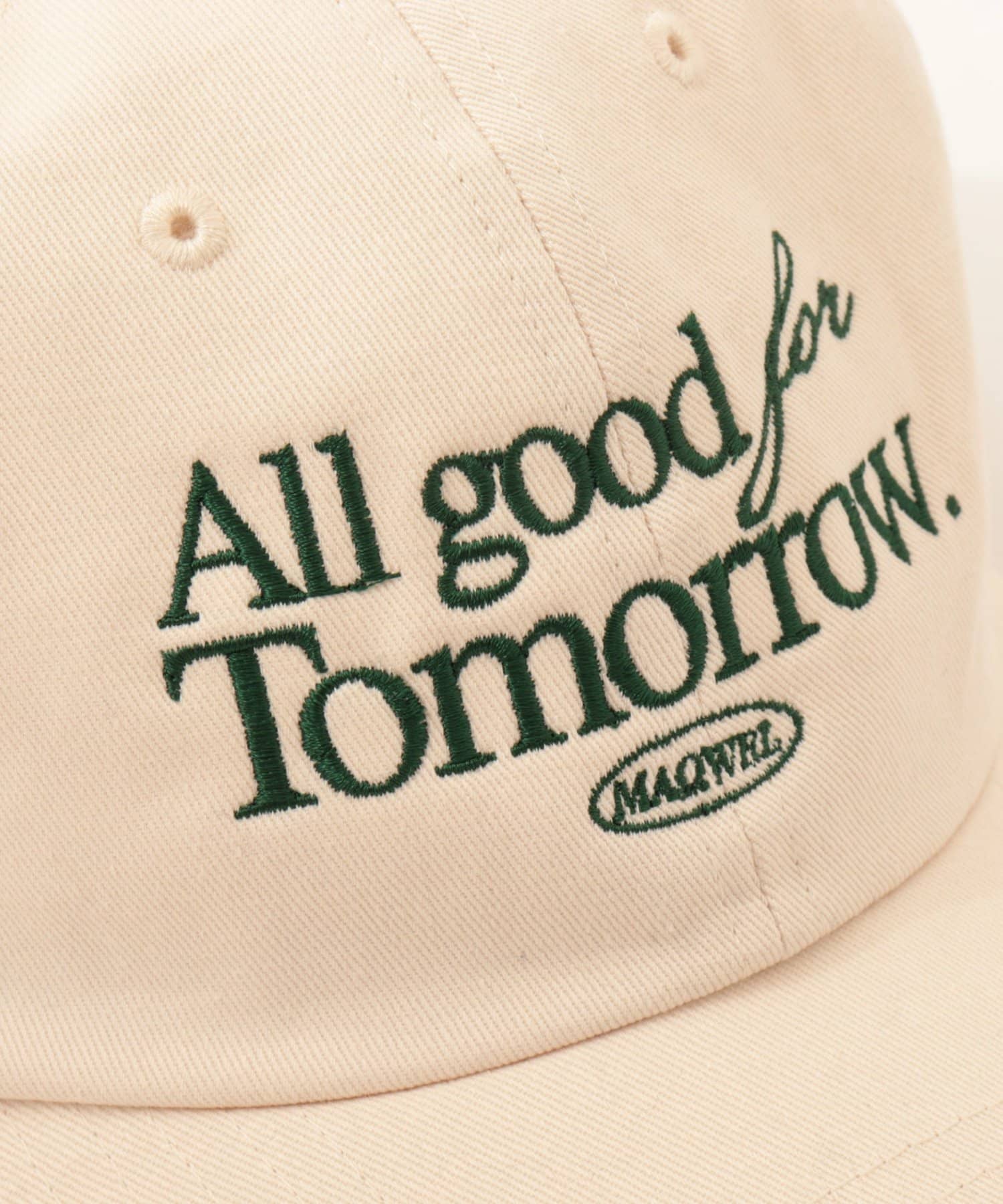 ・フロントに刺繍された”All good for Tomorrow"のロゴがポイントに