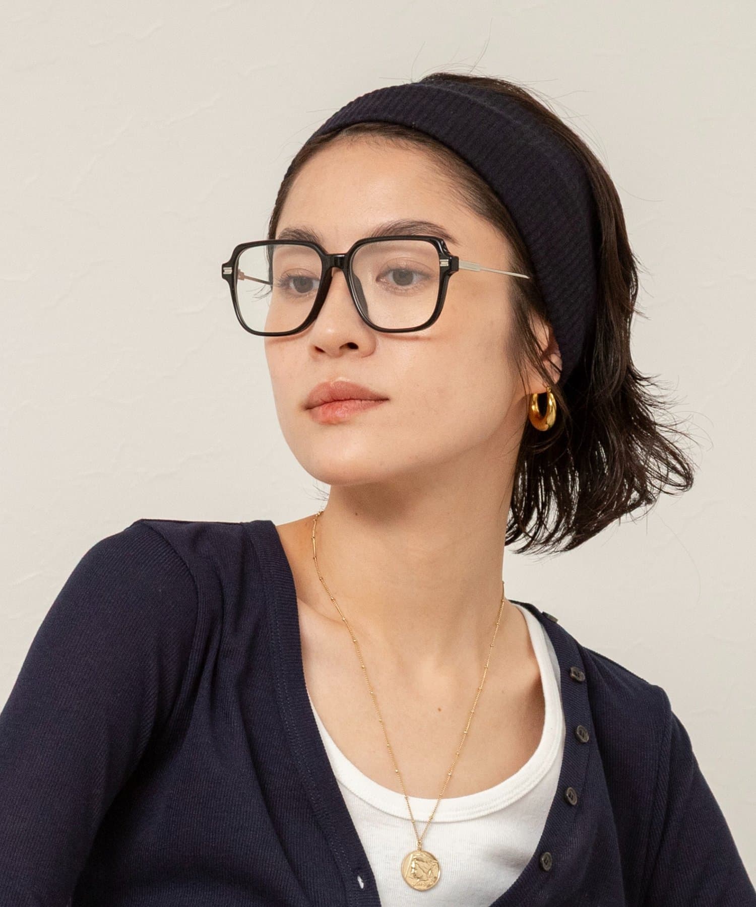・スクエア型のフレームが、顔立ちをシャープに引き立てます