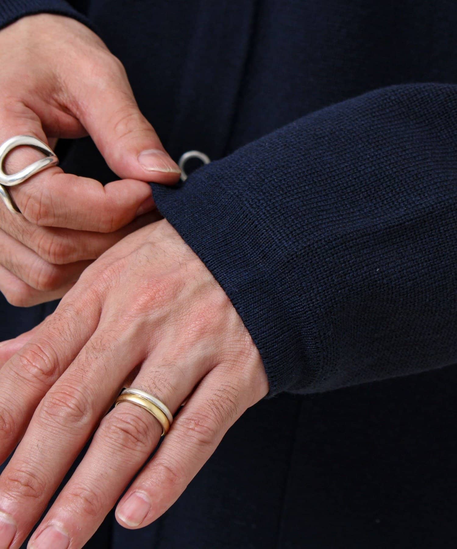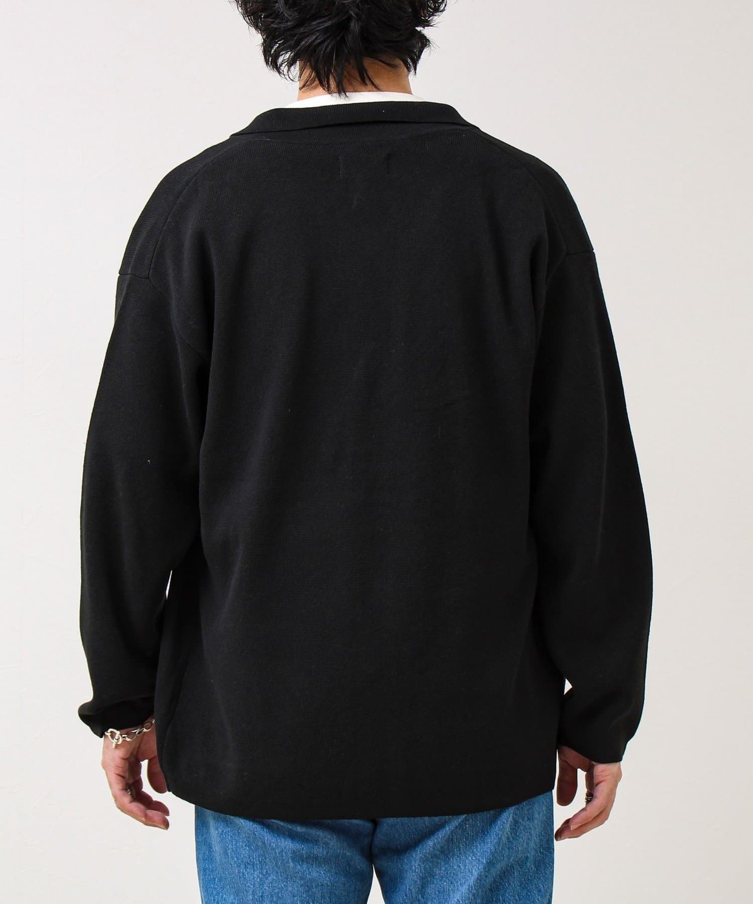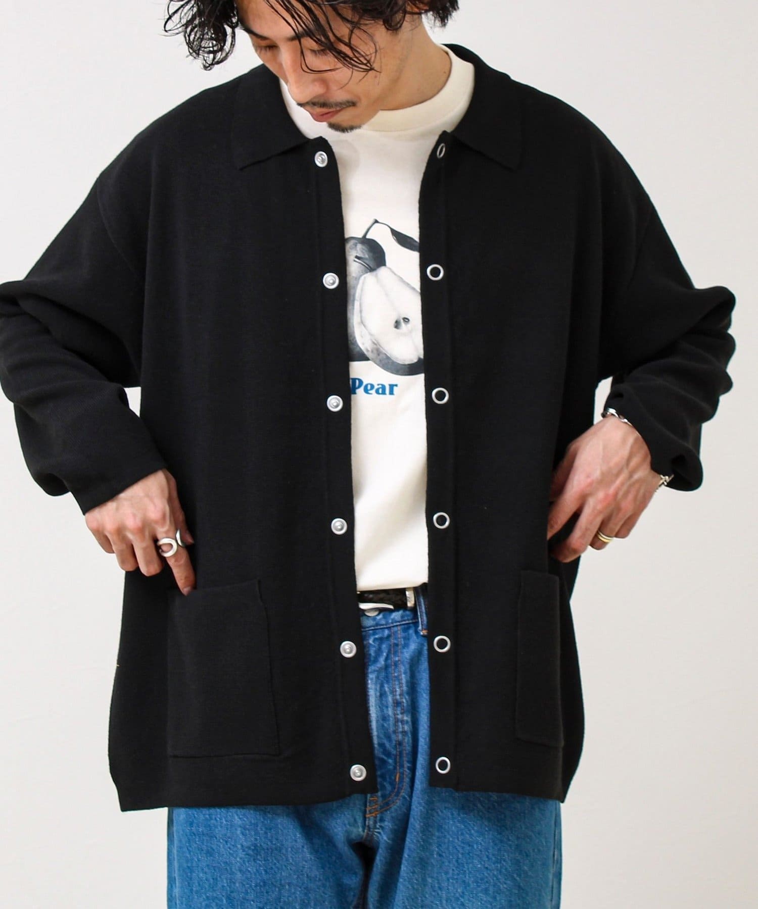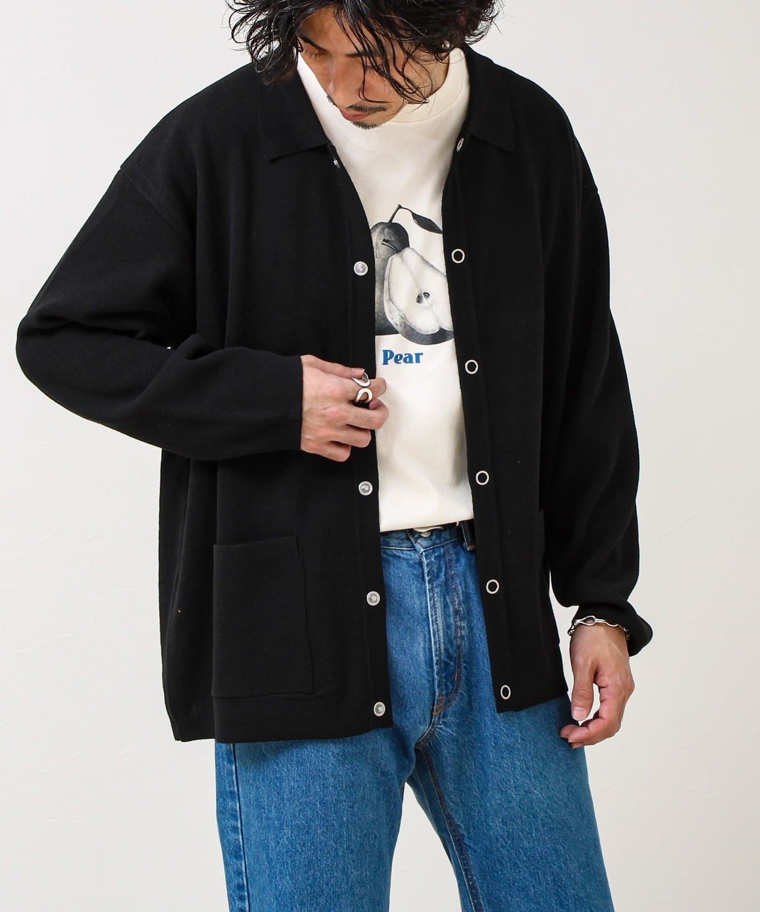 ・きれいめ寄りで:シャツ+スラックスに合わせて、ニットジャケット感覚で