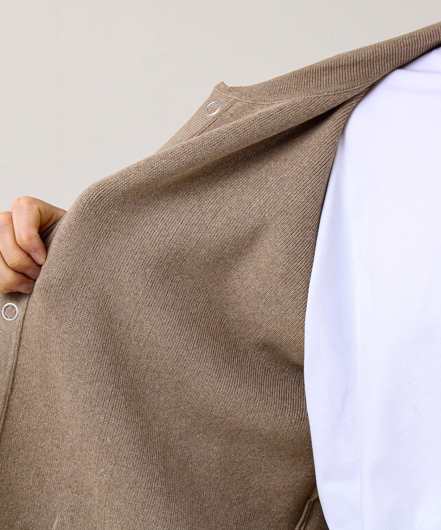 ・スナップボタン仕様で、軽アウター感覚の着脱しやすさ