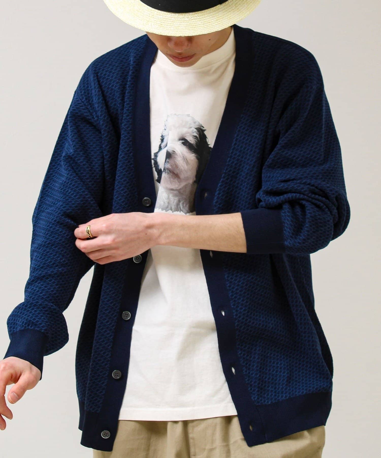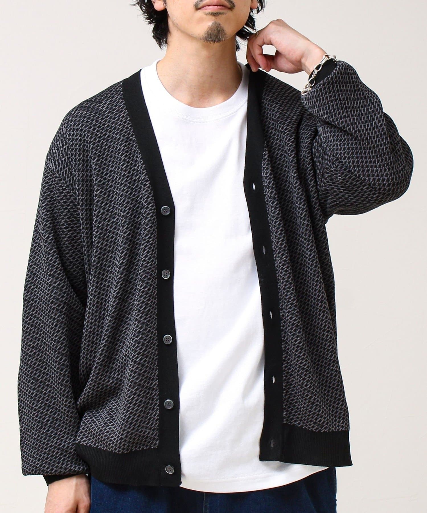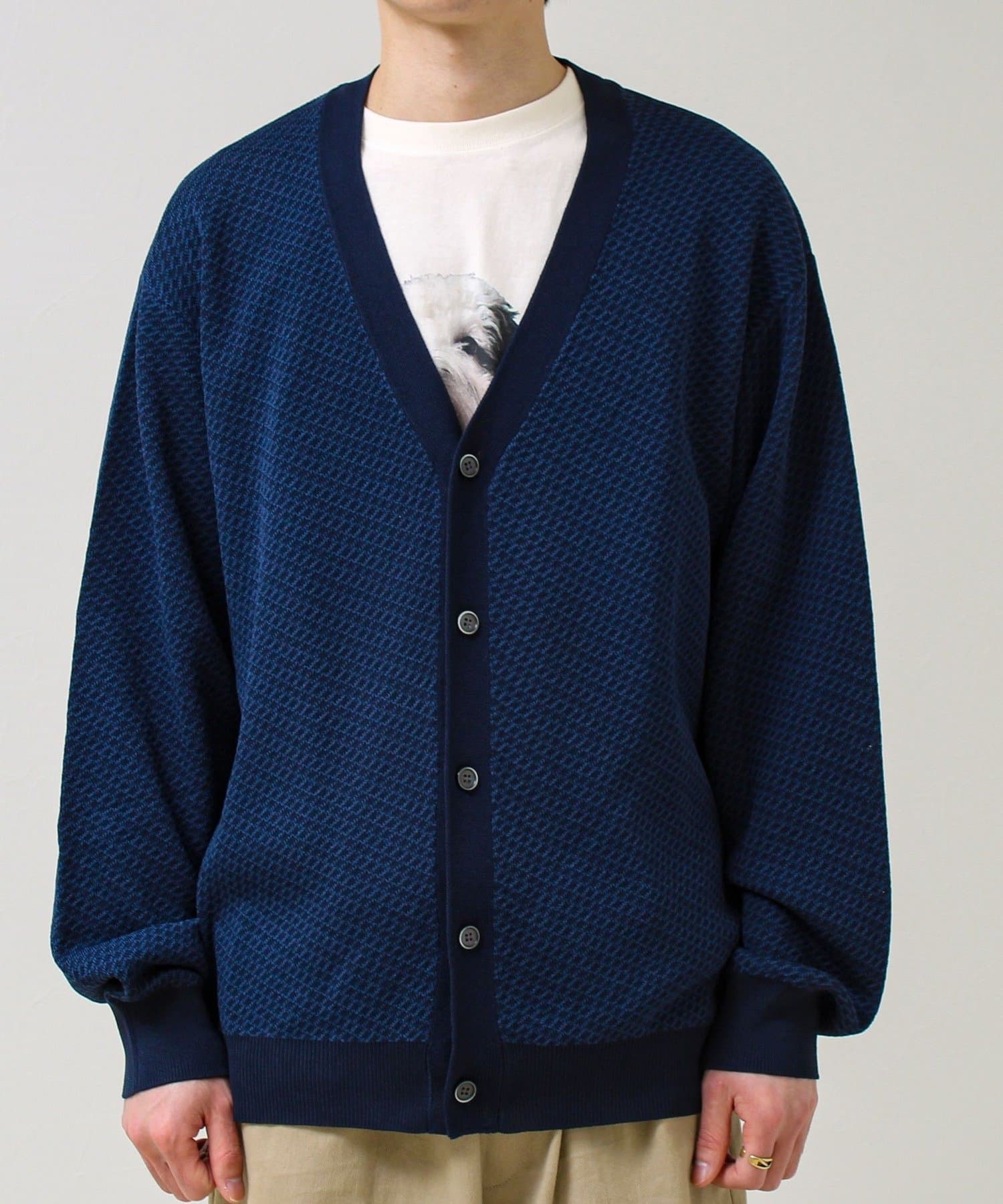表情のあるバーズアイ柄が映えるVネックカーディガン