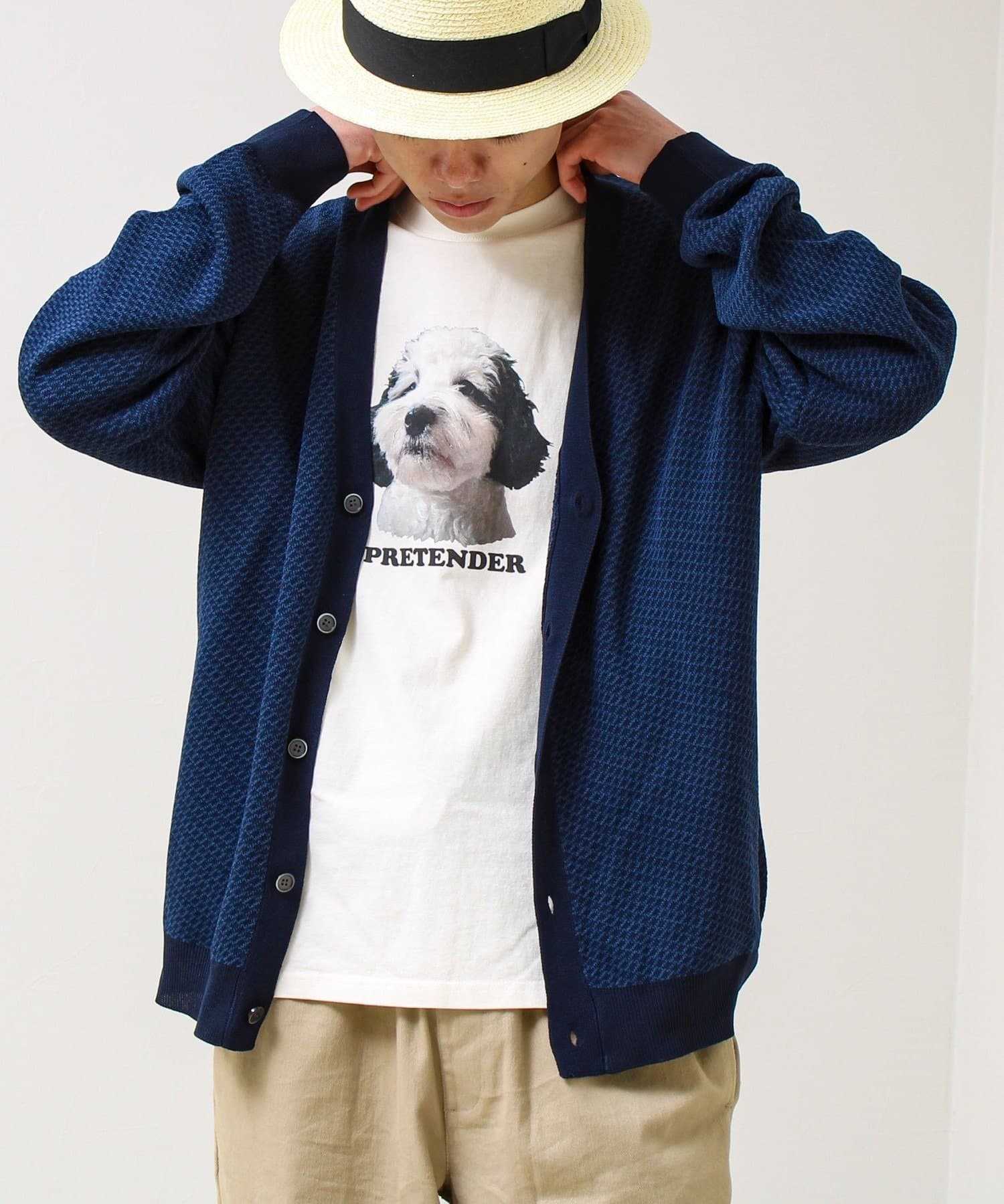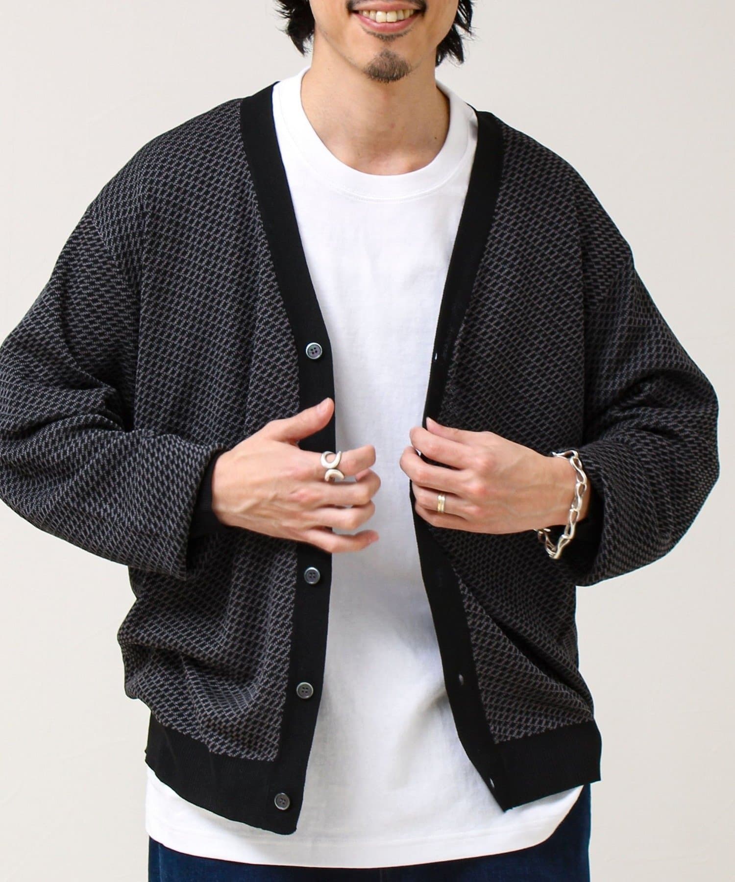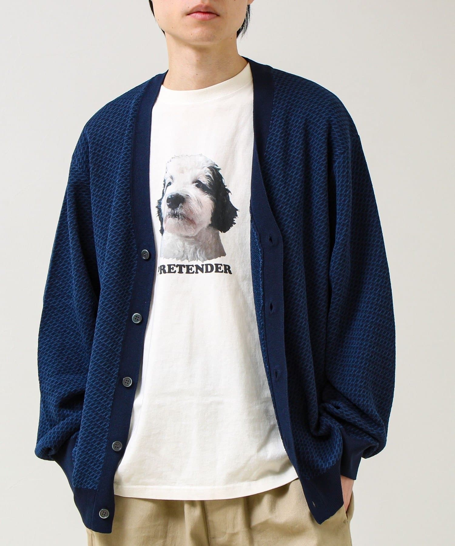 表情のあるバーズアイ柄が映えるVネックカーディガン