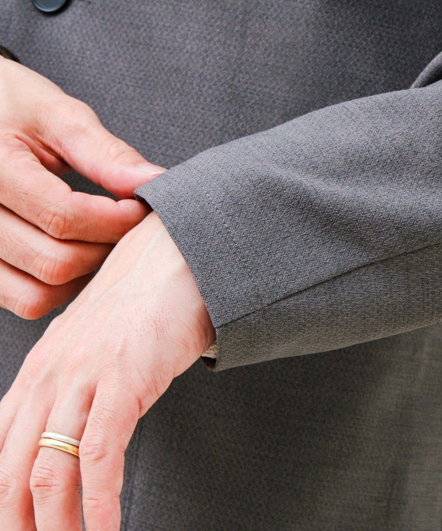 ・リネンタッチのドビー素材で、見た目は天然素材のような清涼感。春夏でも重たく見えない軽い表情が魅力