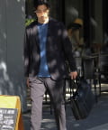同素材ジャケットと合わせて、インナーは白TやニットTで抜け感を出した大人の春夏セットアップ。