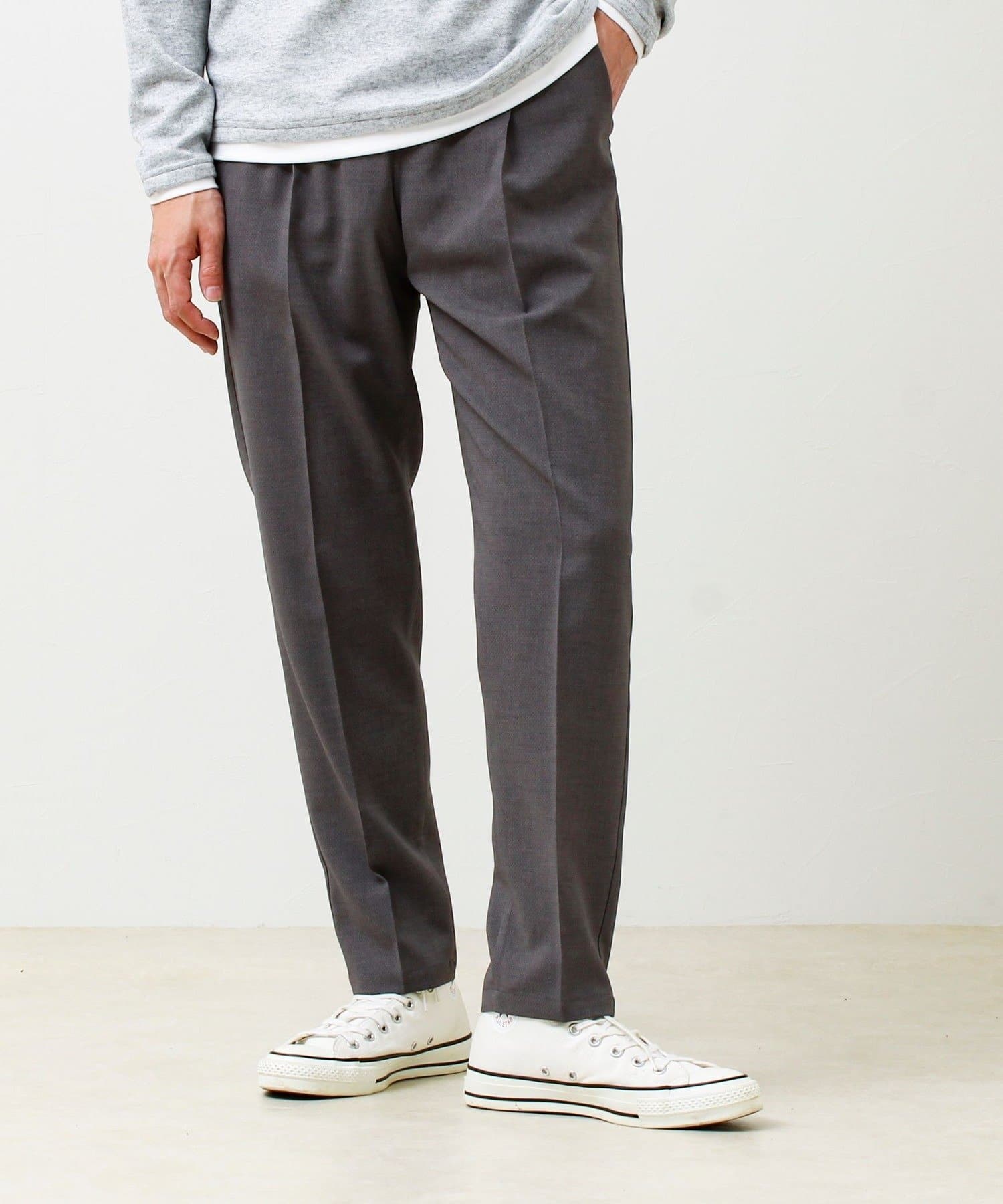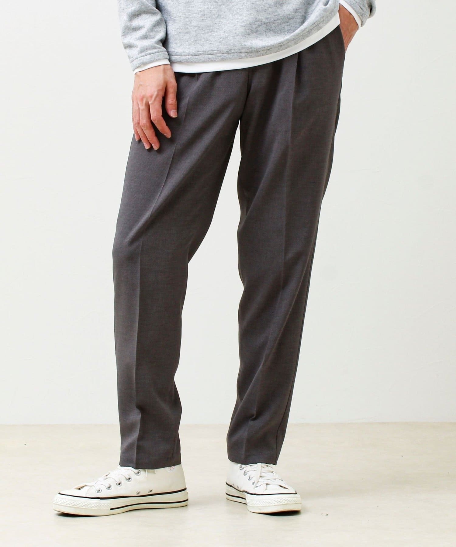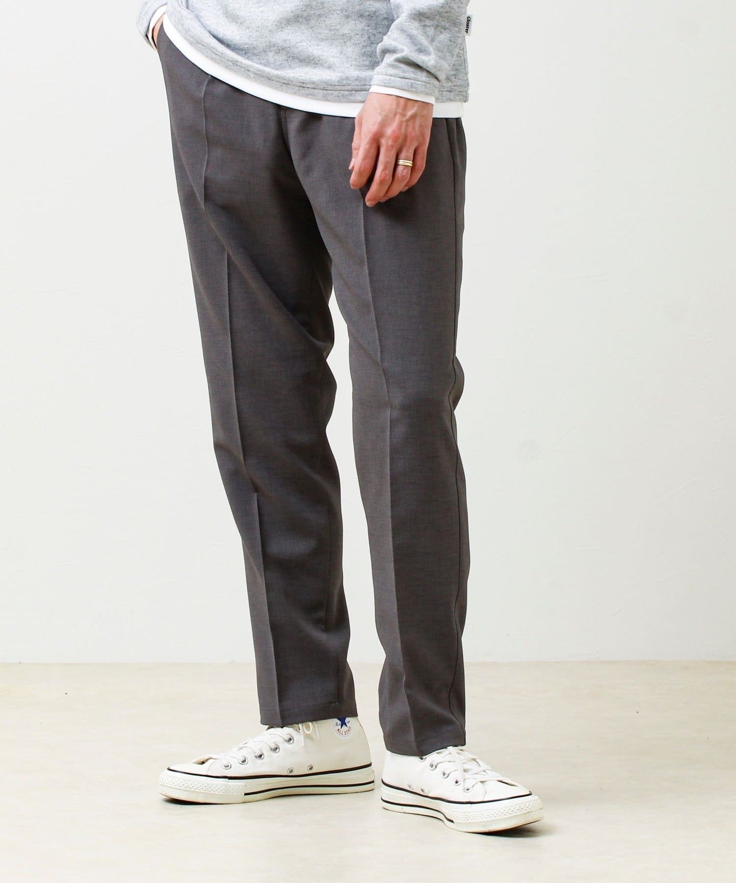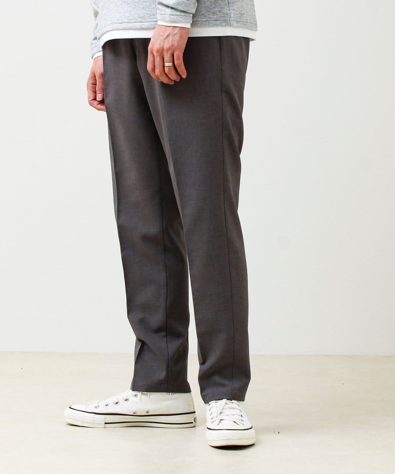 ・脚のラインをきれいに見せるテーパードシルエット+センタープレス入りできちんと感もキープ