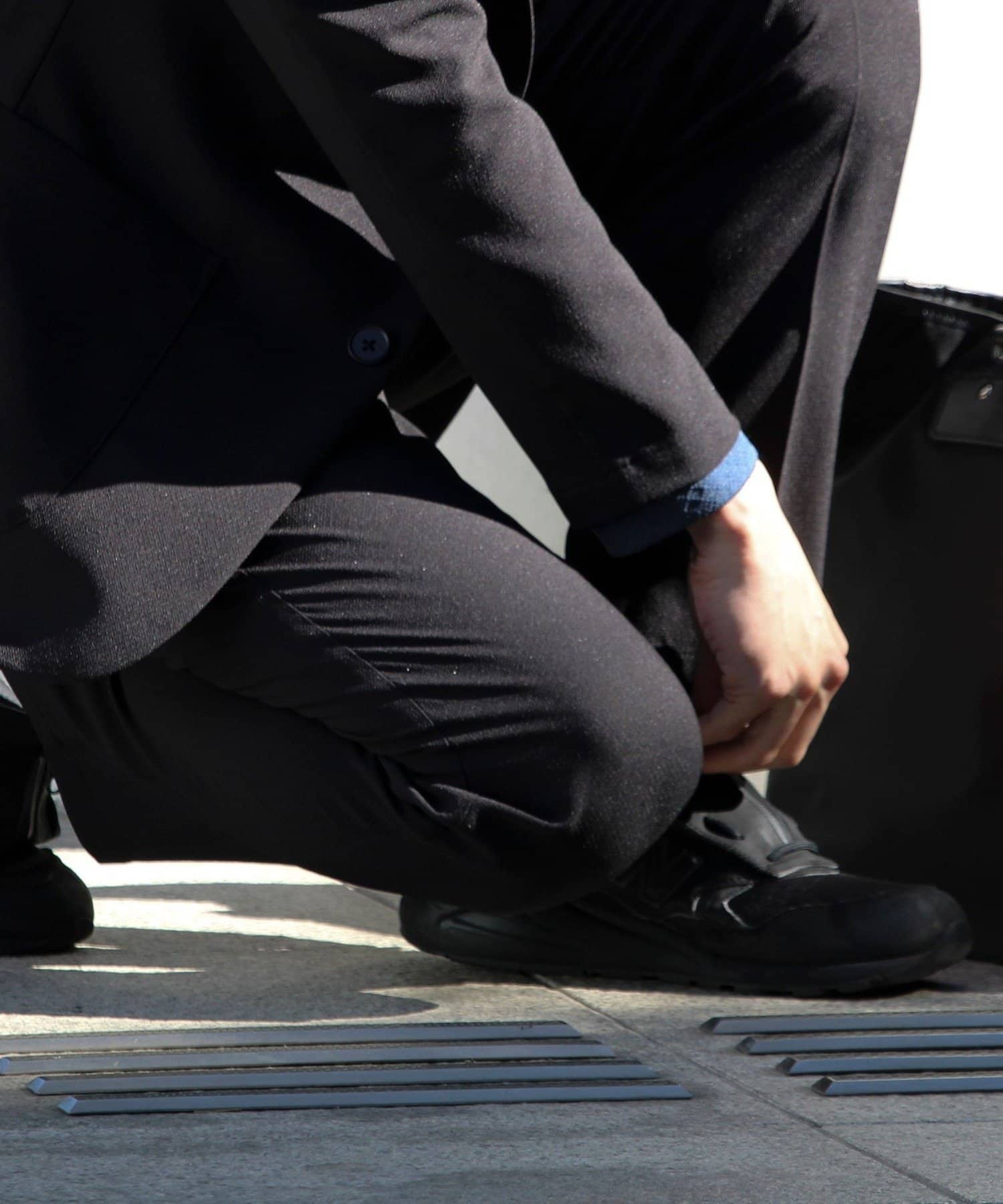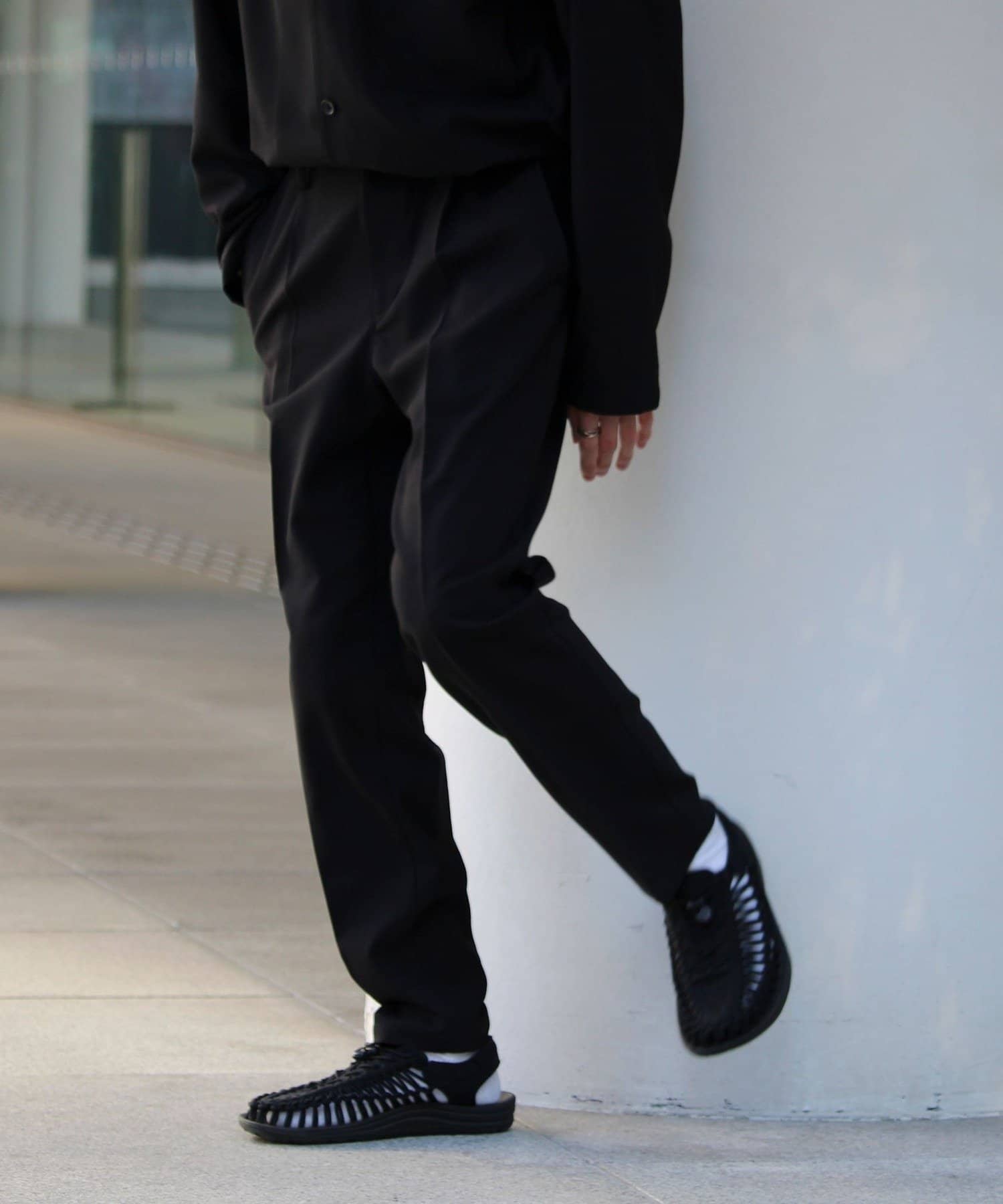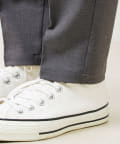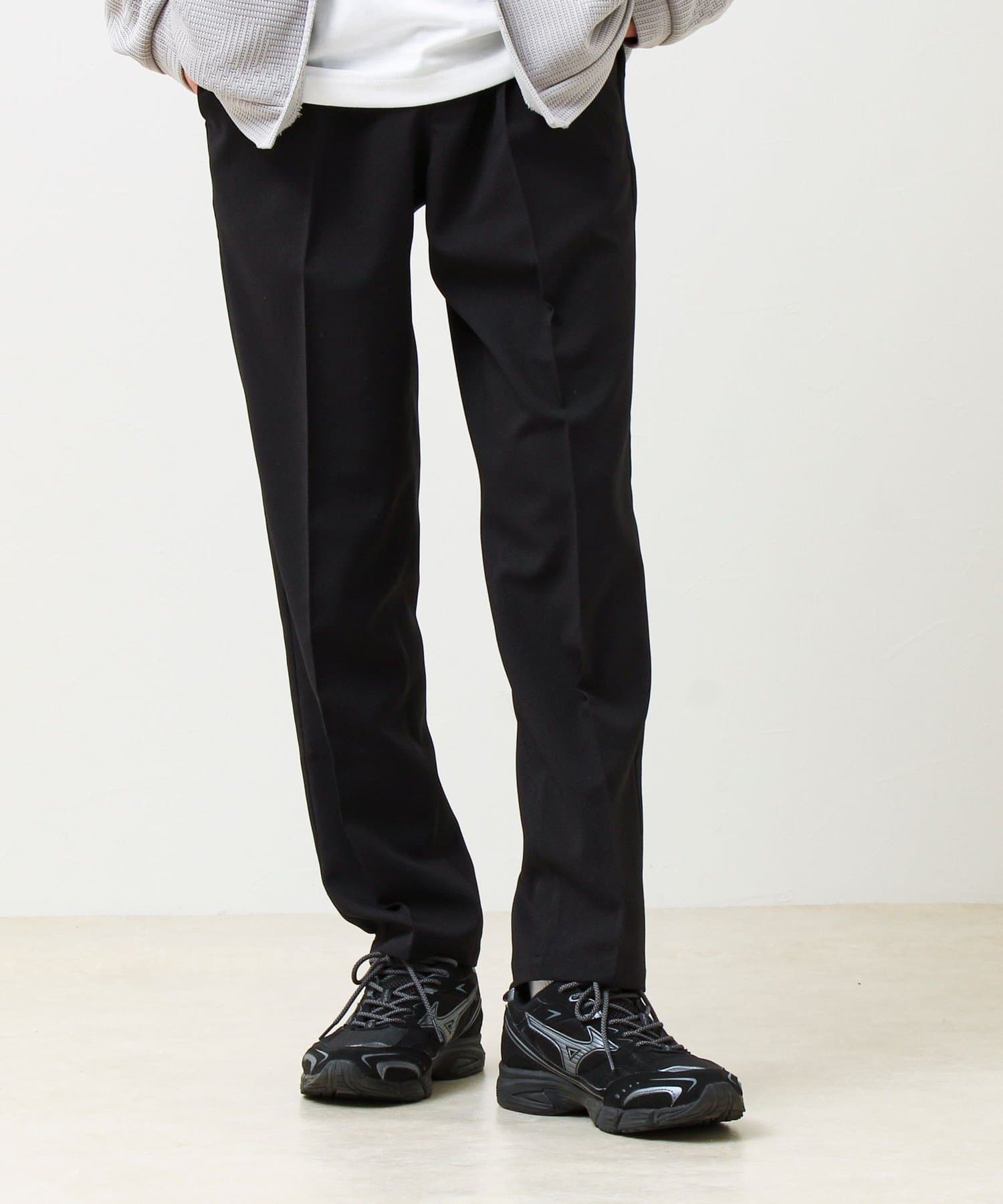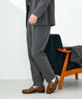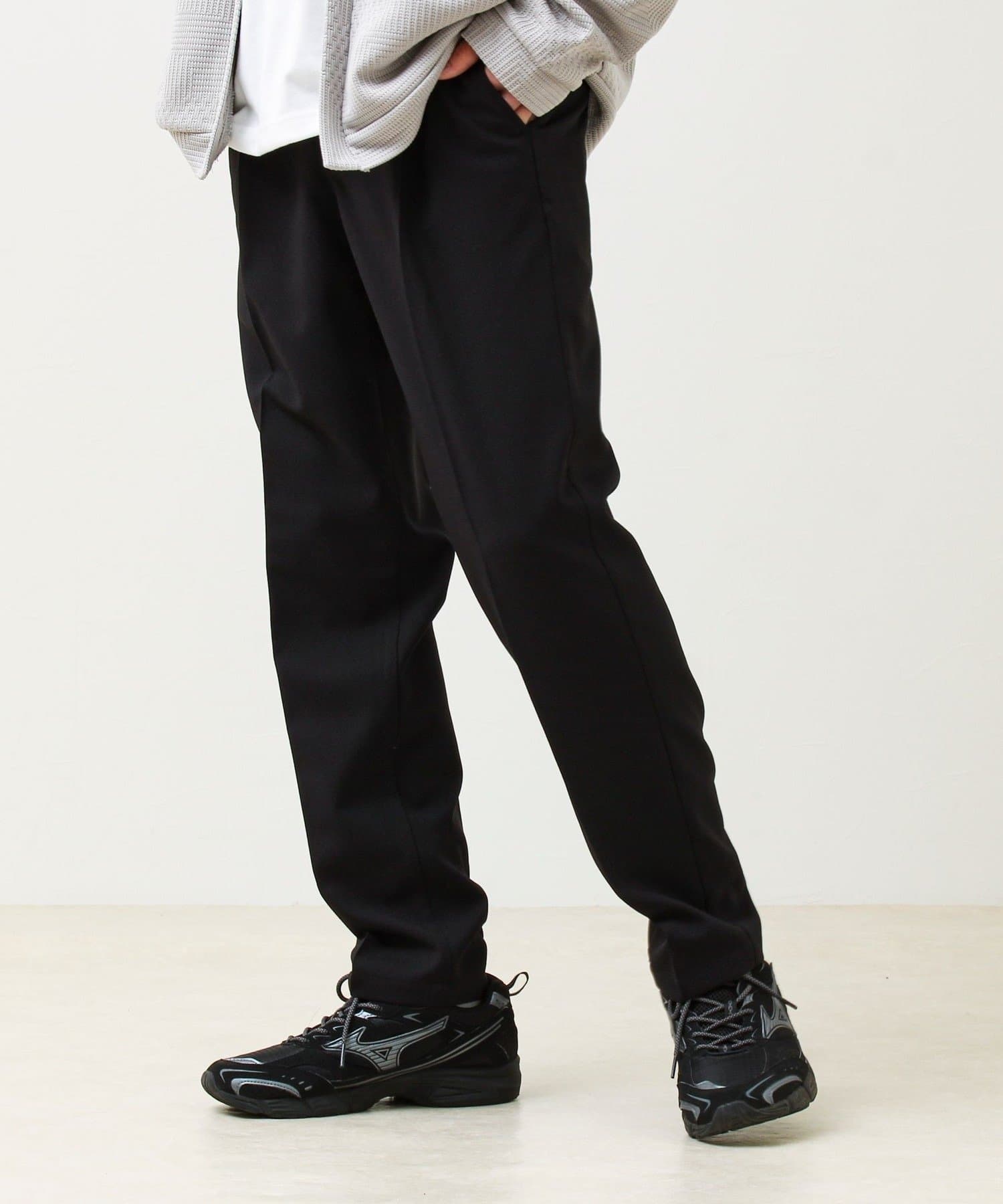 ・脚のラインをきれいに見せるテーパードシルエット+センタープレス入りできちんと感もキープ