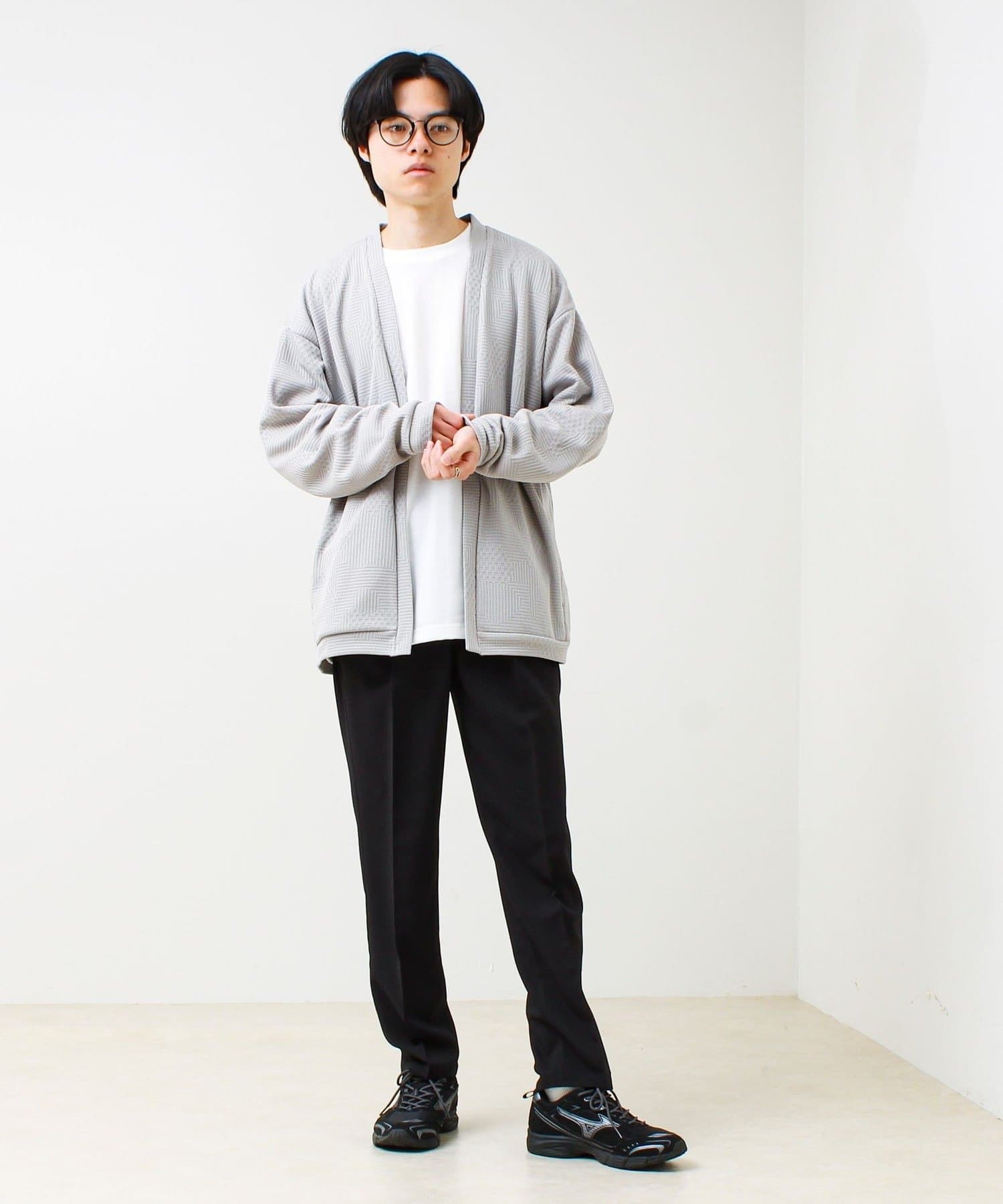 カーディガンやシャツ羽織りと合わせて、抜け感ある都会的リラックスコーデ。
