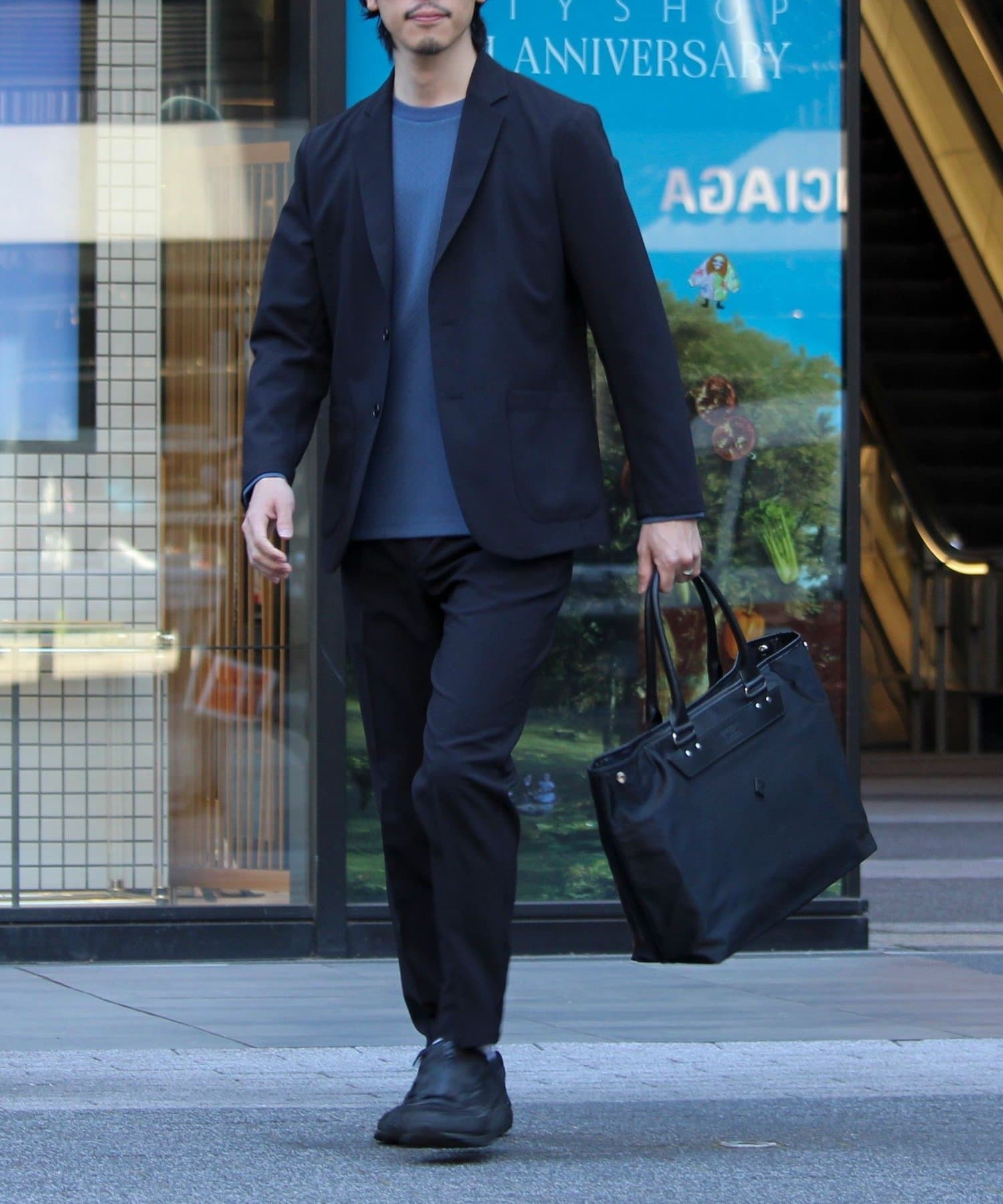 シャツやポロシャツを合わせれば、きちんと見えする快適ビジカジスタイルに。