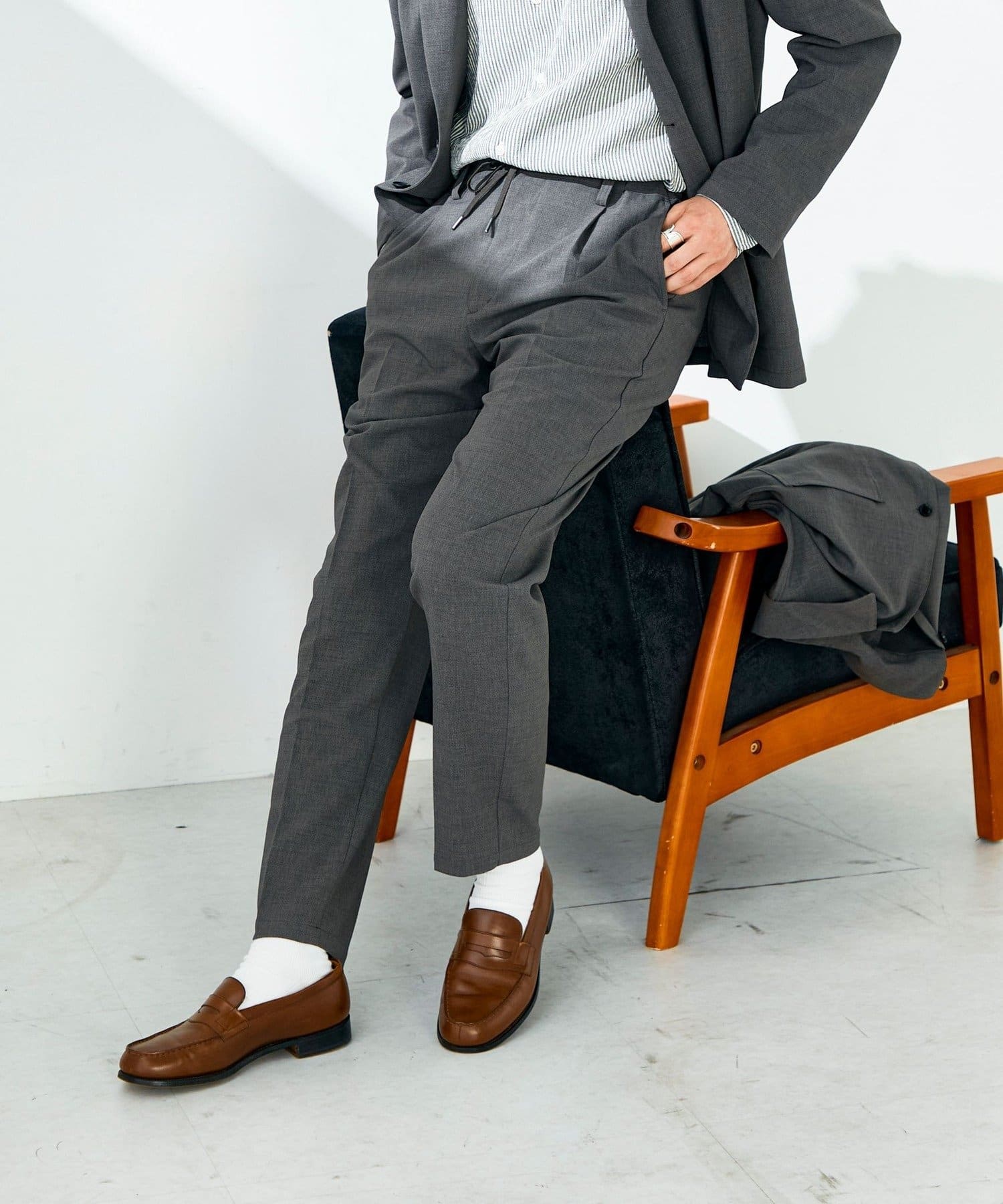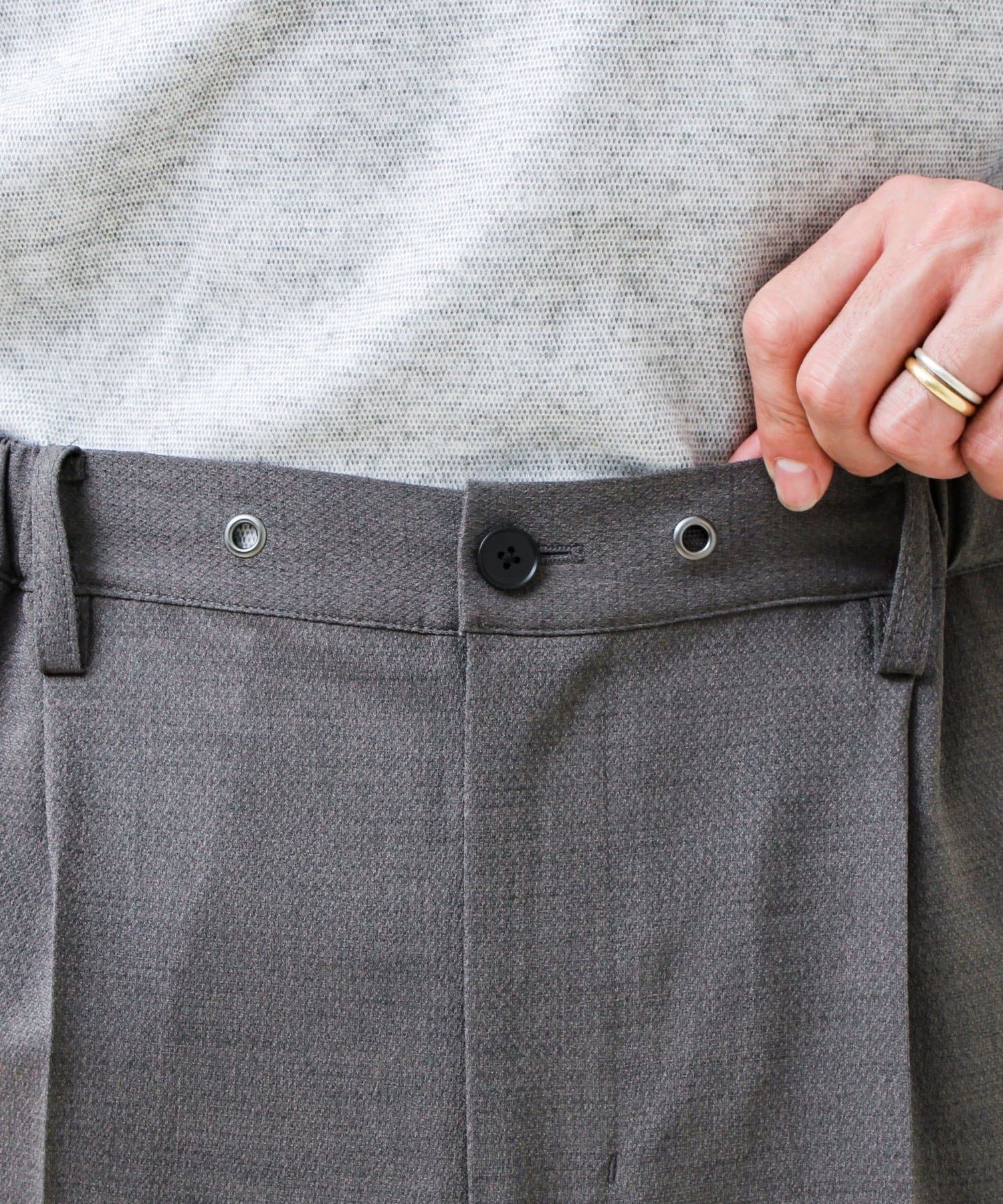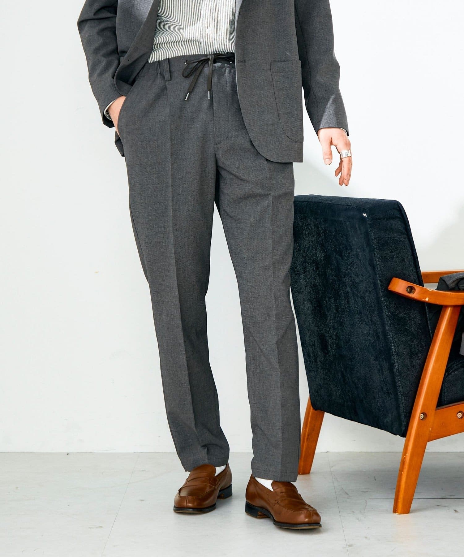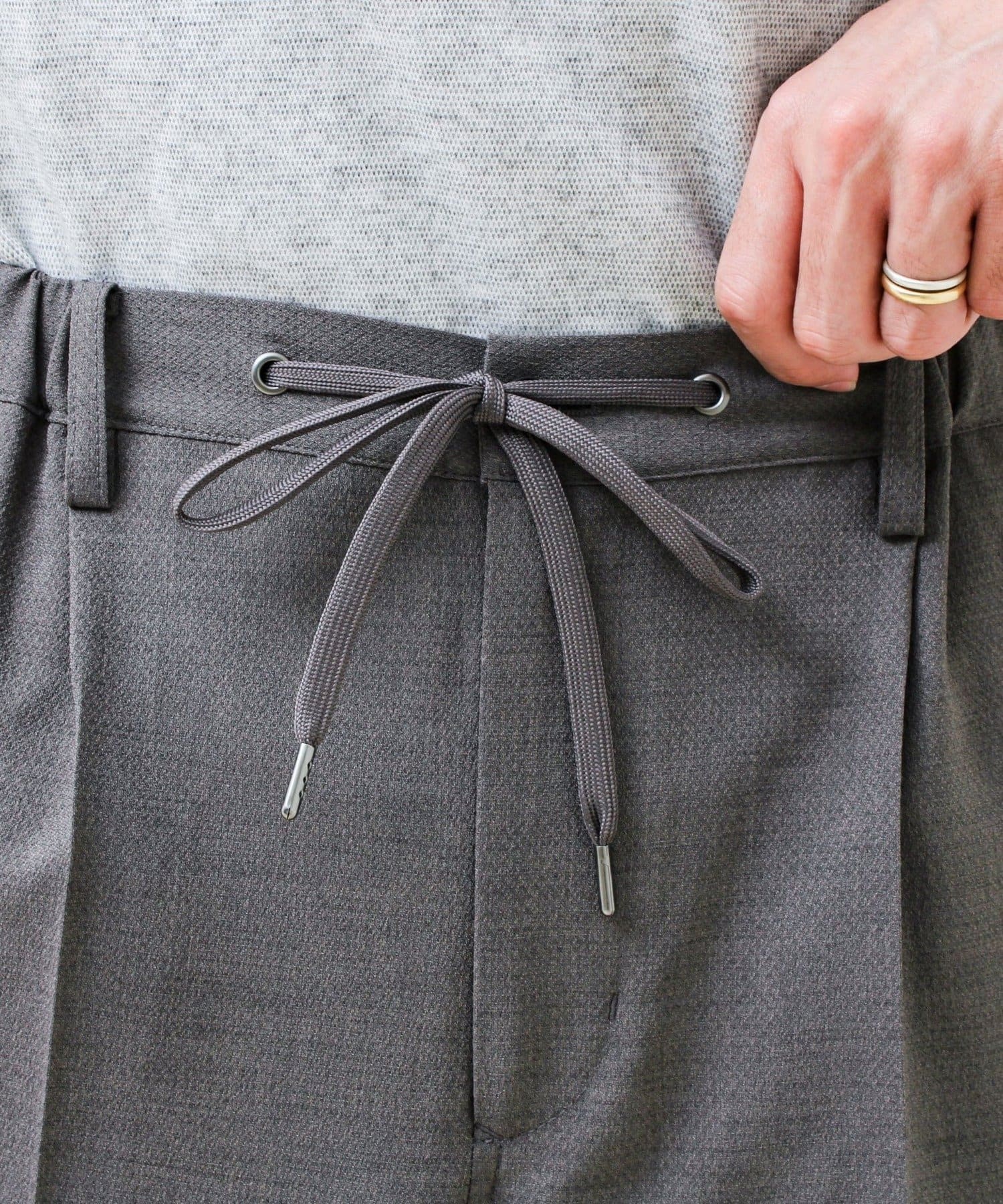 ・ウエストドローコード仕様のイージー設計でラクな穿き心地。見た目はスラックスなのにストレスフリー