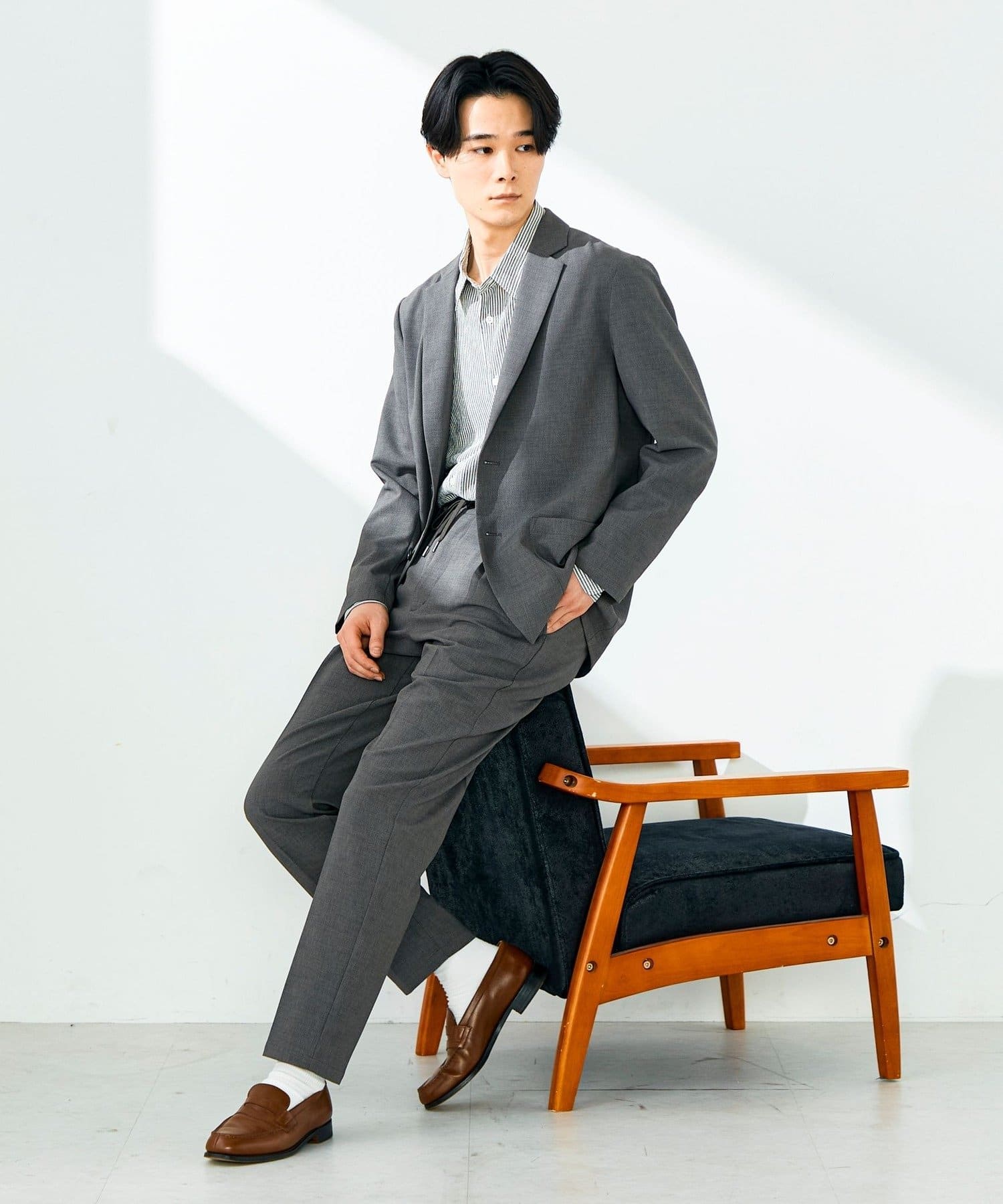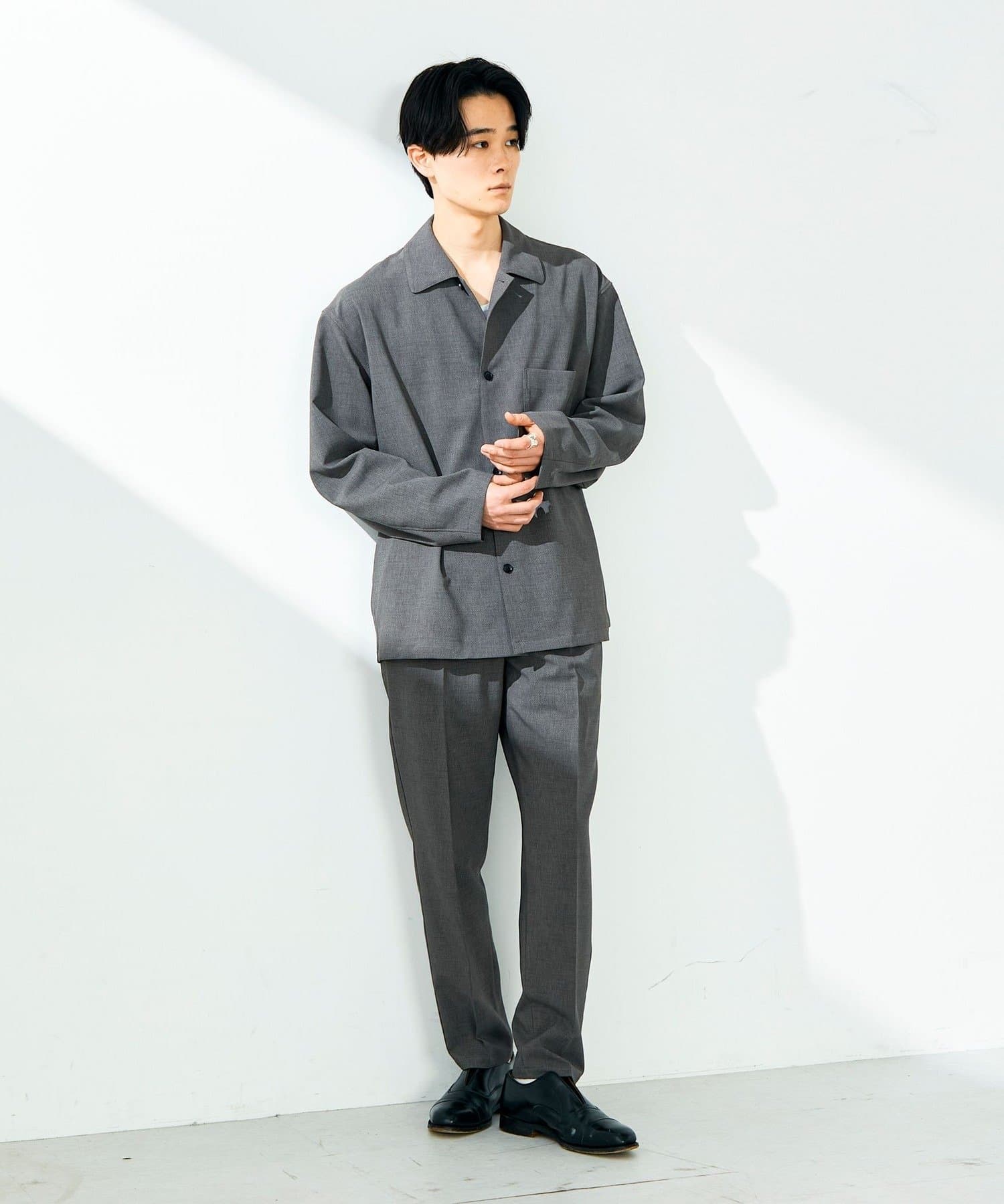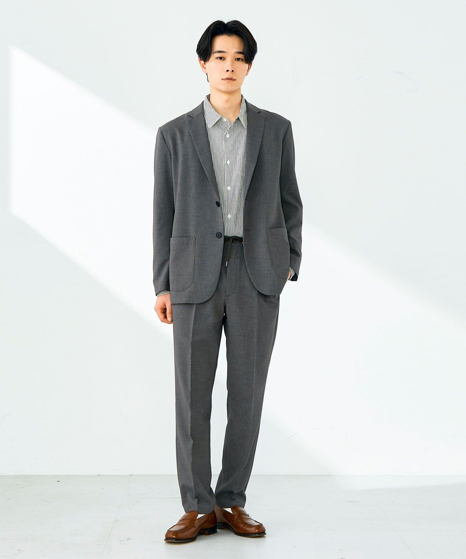 ・リネンタッチのドビー素材で、麻のような清涼感ある見た目。春夏でも重く見えず上品な表情