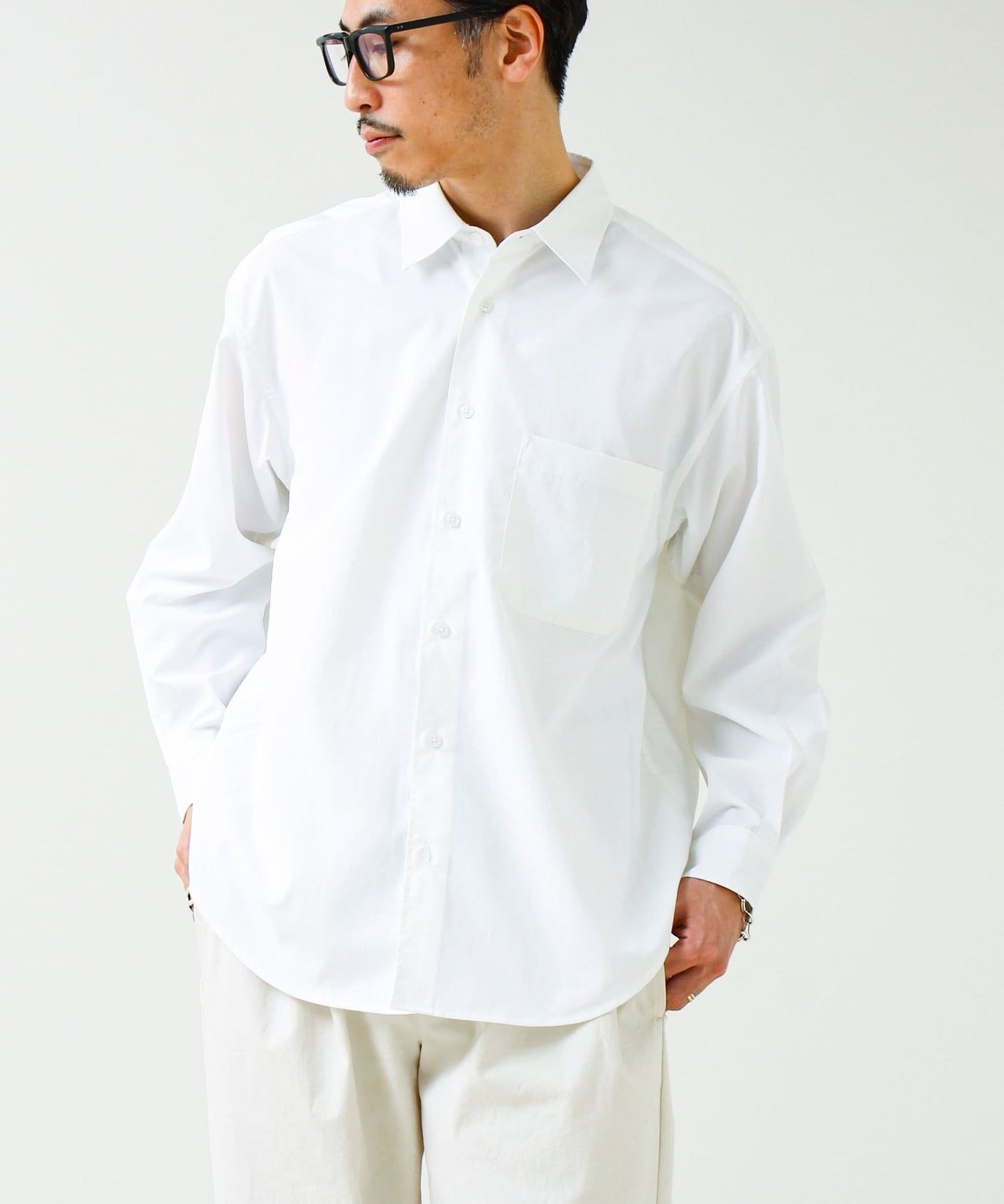 #FREDY&GLOSTER #GLOSTER #26SS #ワッシャーシャツ #ポプリンシャツ #クイックドライ #大人カジュアル #ミニマルコーデ #春シャツ #きれいめカジュアル
