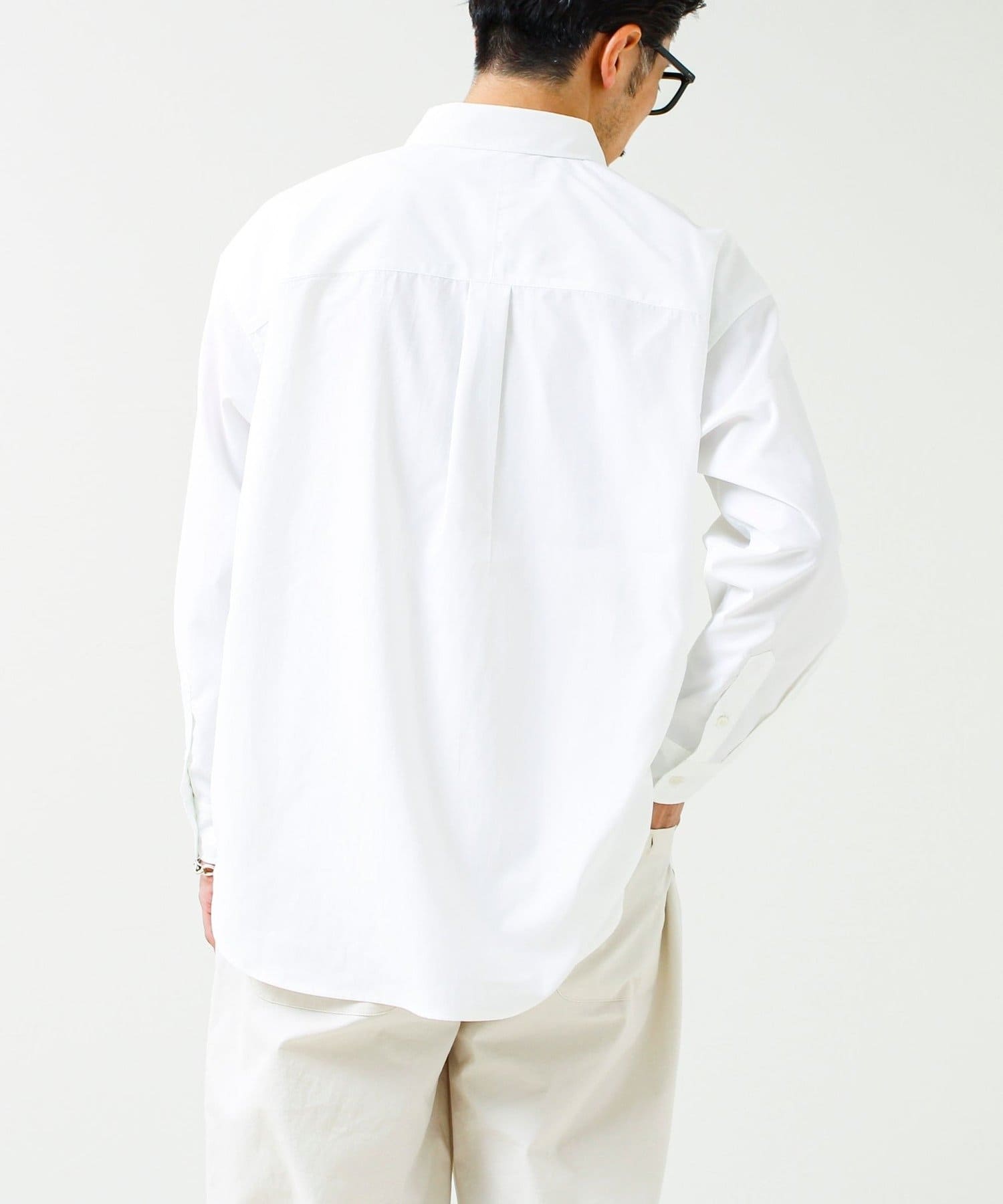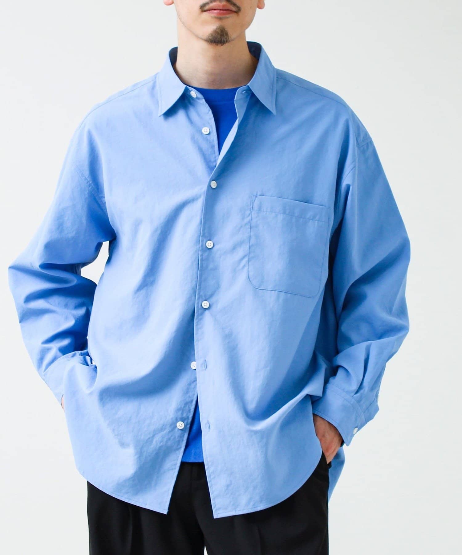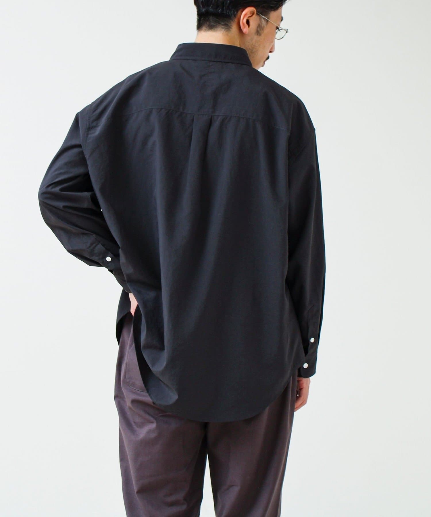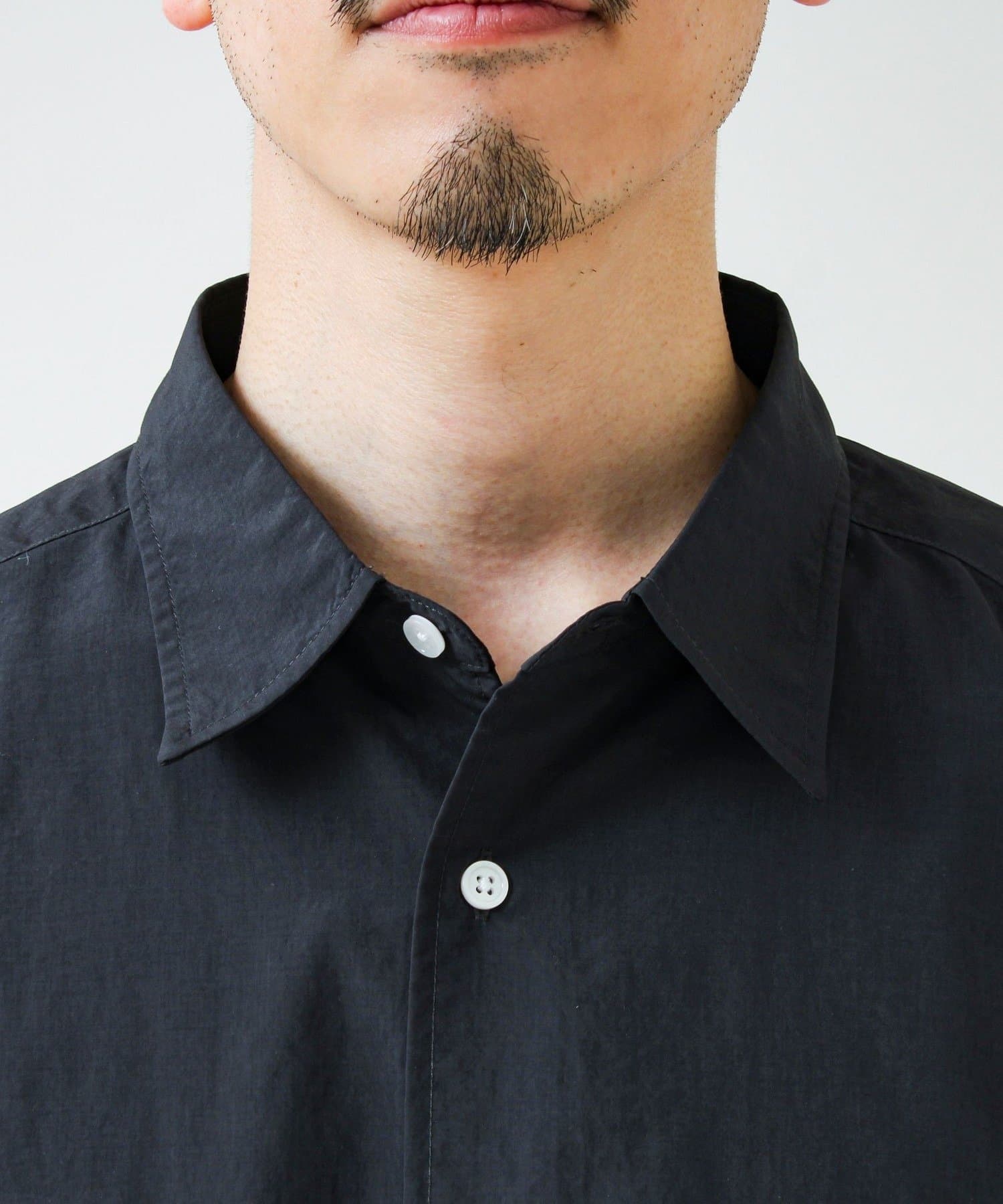 自然なシワ感が特徴で、かっちりしすぎず程よくラフな印象に。アイロンいらずでサマになる一枚。