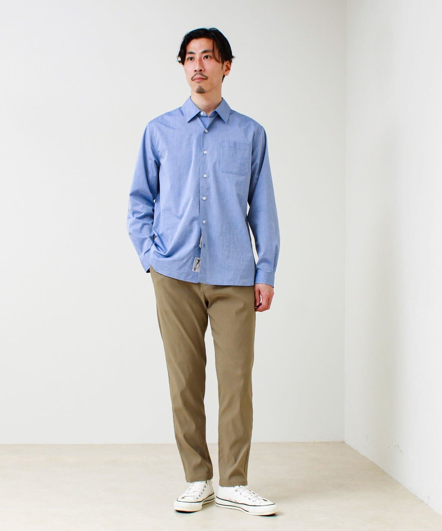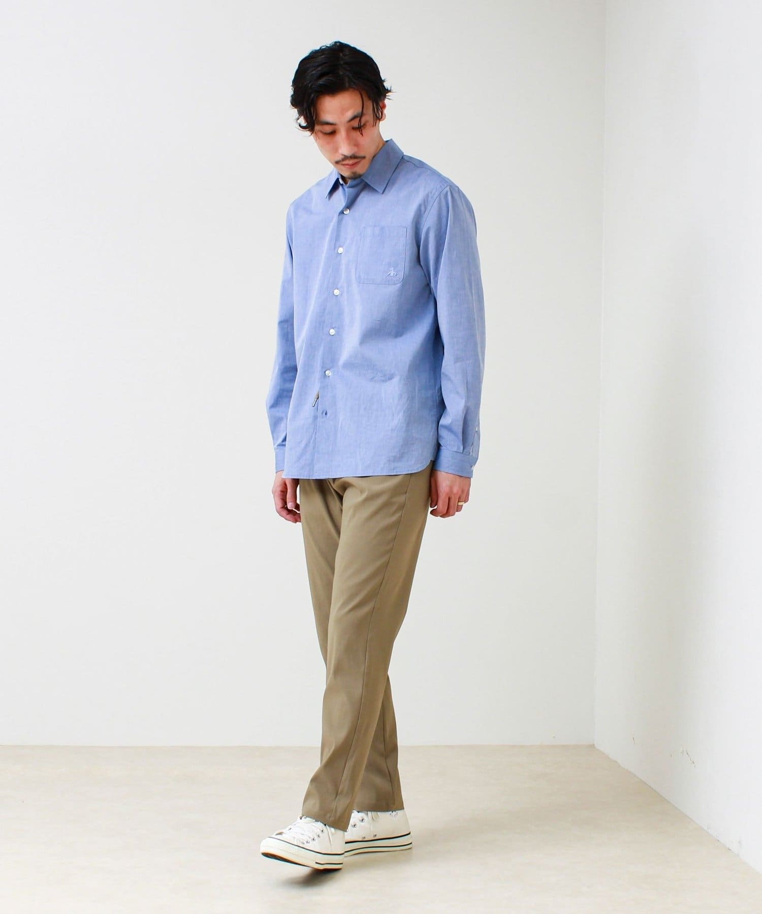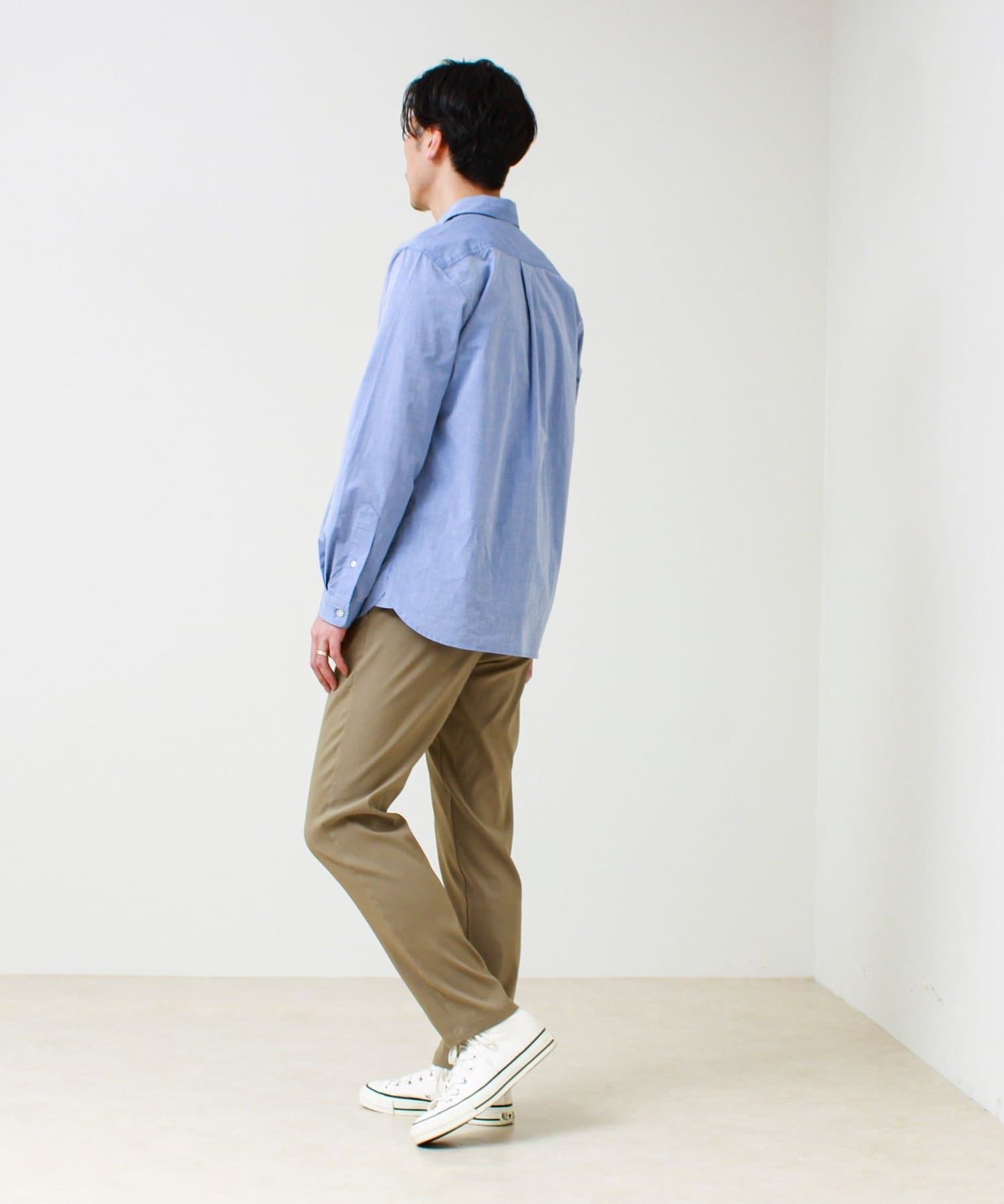 シャツやニットポロと合わせて、すっきりとしたきれいめカジュアルに。