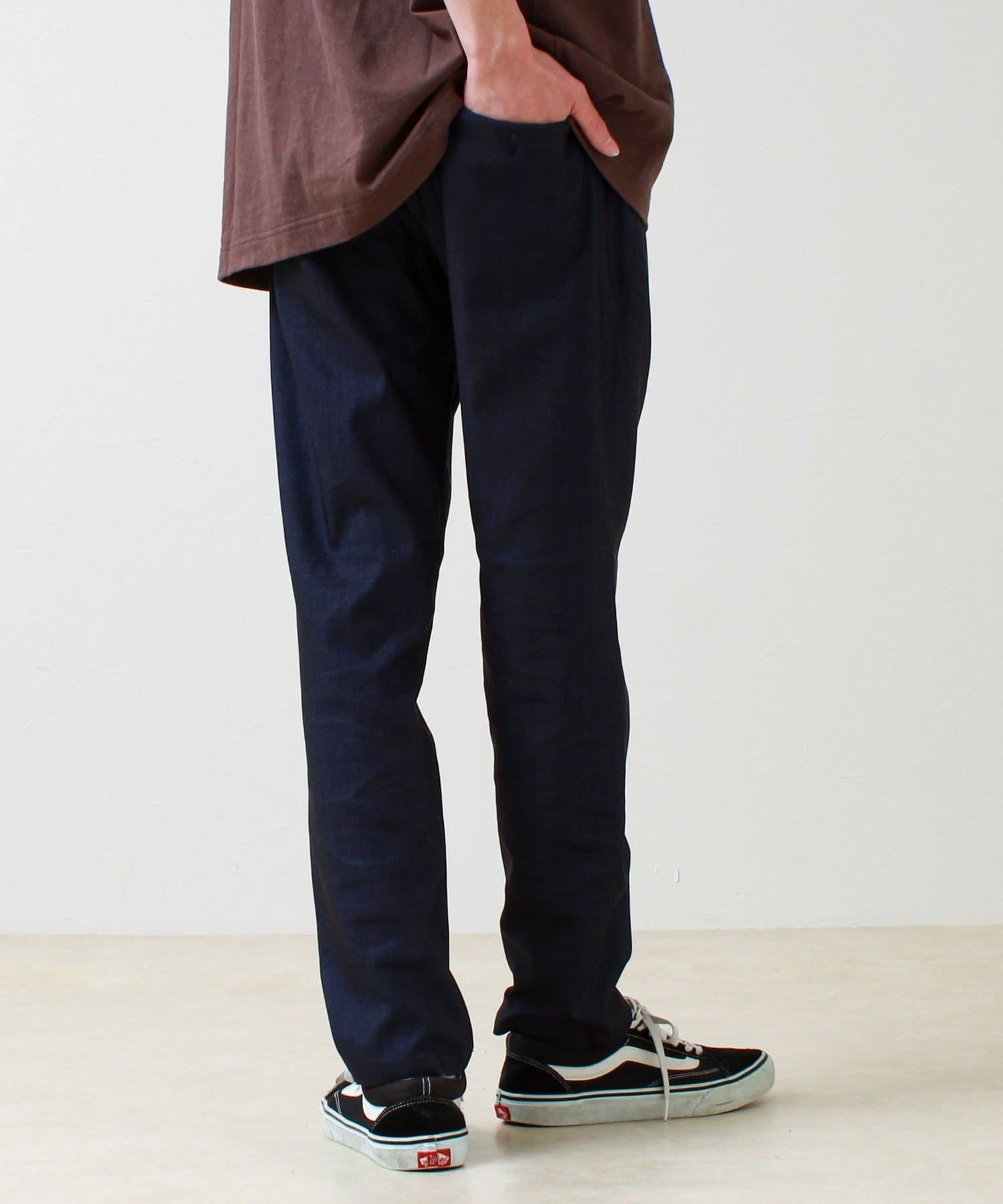 程よくゆとりを持たせつつ、裾に向かって細くなるシルエットで