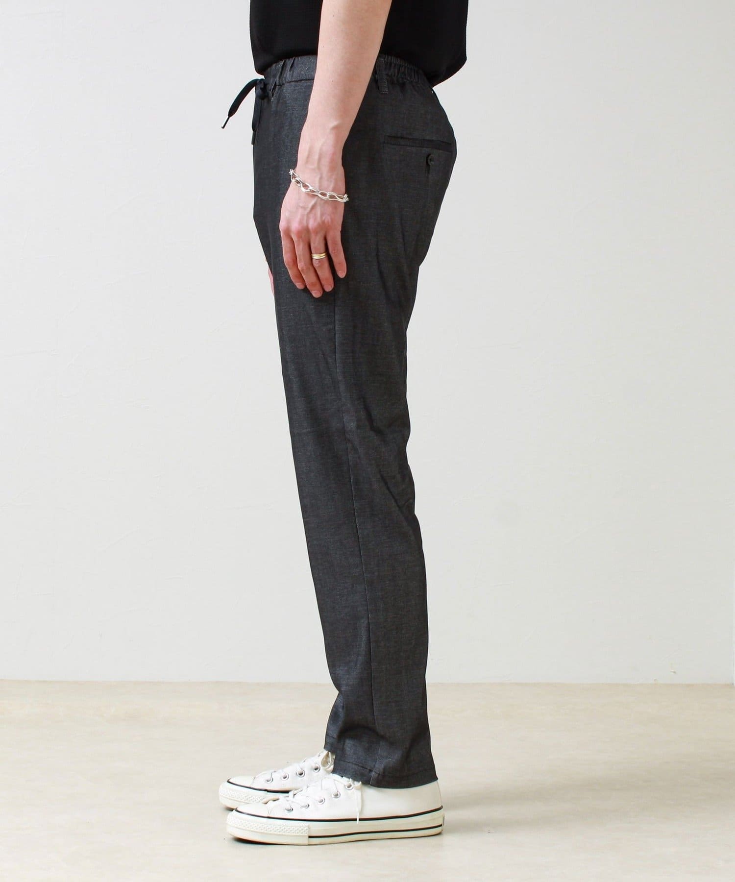 動きやすいストレッチ素材を使用した、リラックス感のあるイージーパンツ。