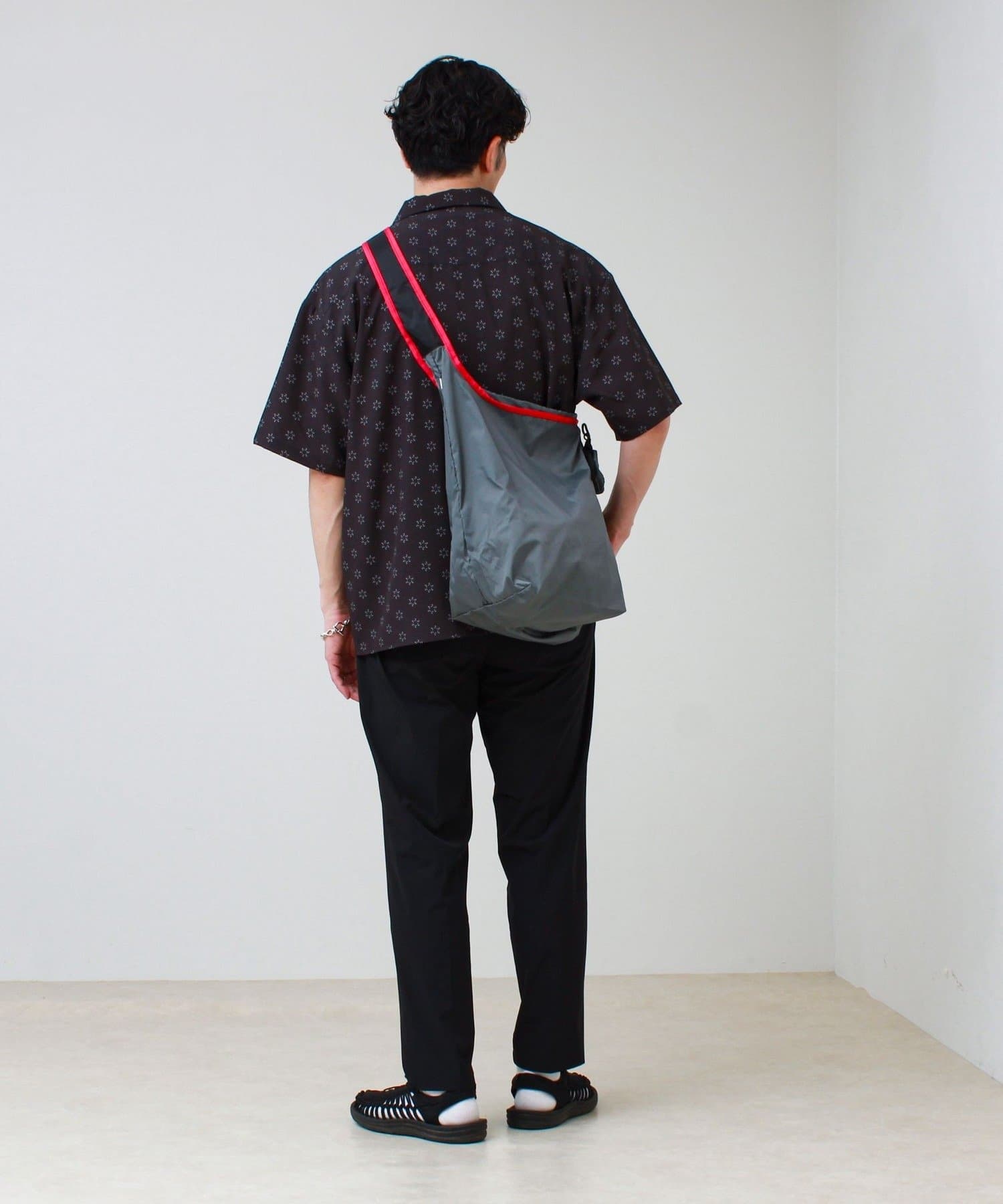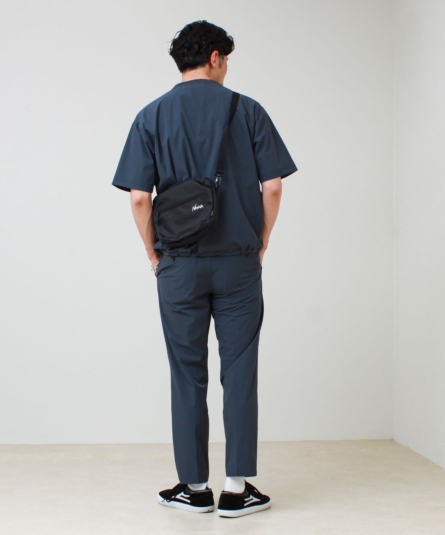 機能素材トップスやスニーカーと合わせて、都会的な雰囲気に。