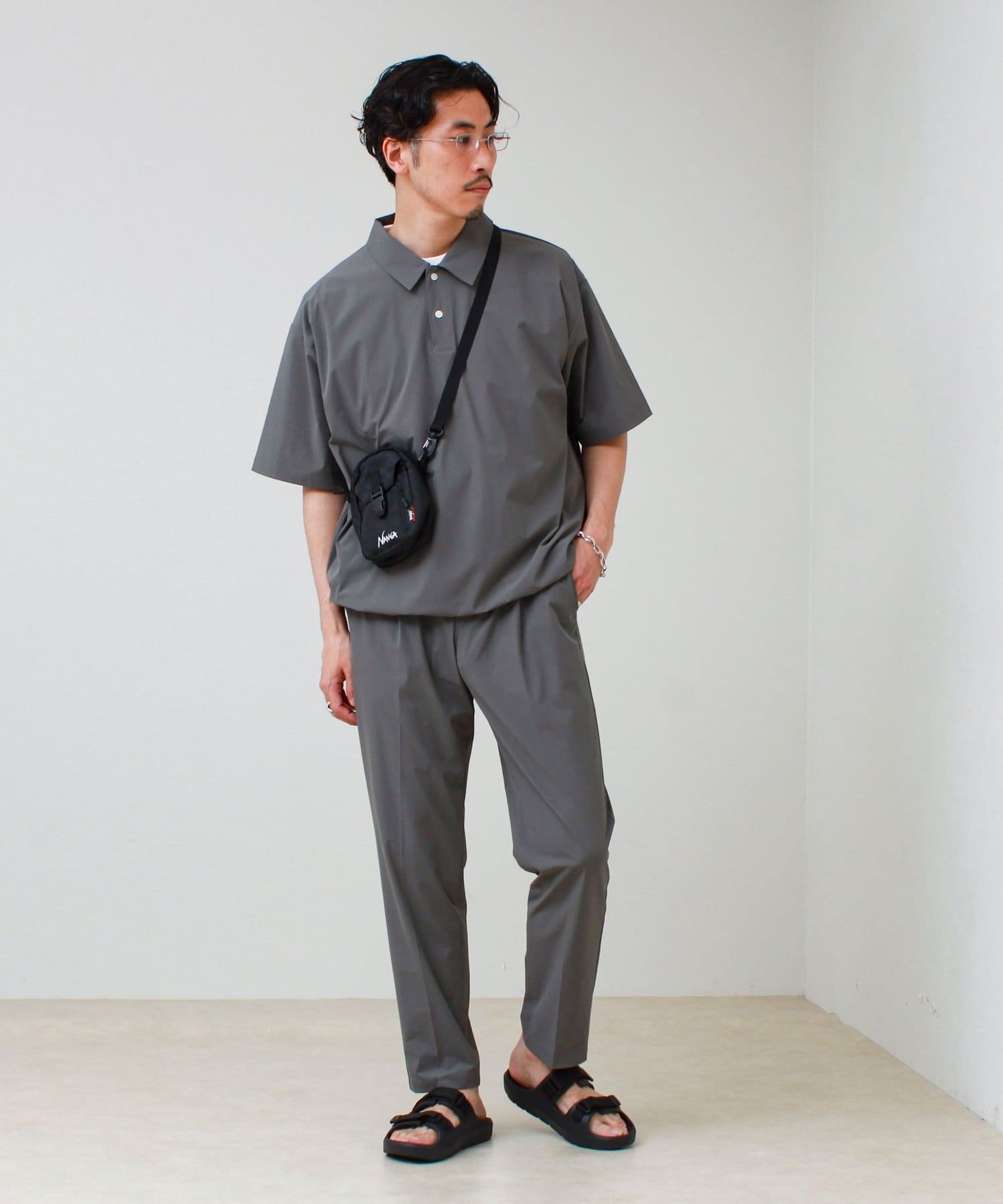 同素材トップスと合わせて、統一感のある大人のリラックススタイルに。