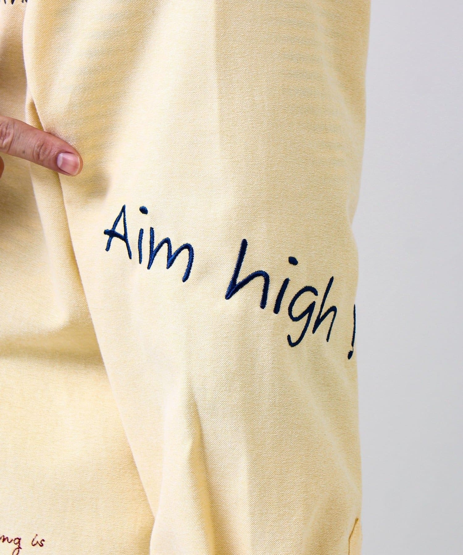 ・爽やかなオックスフォード生地に、前後左右へバランスよく配置した刺繍メッセージがポイント。