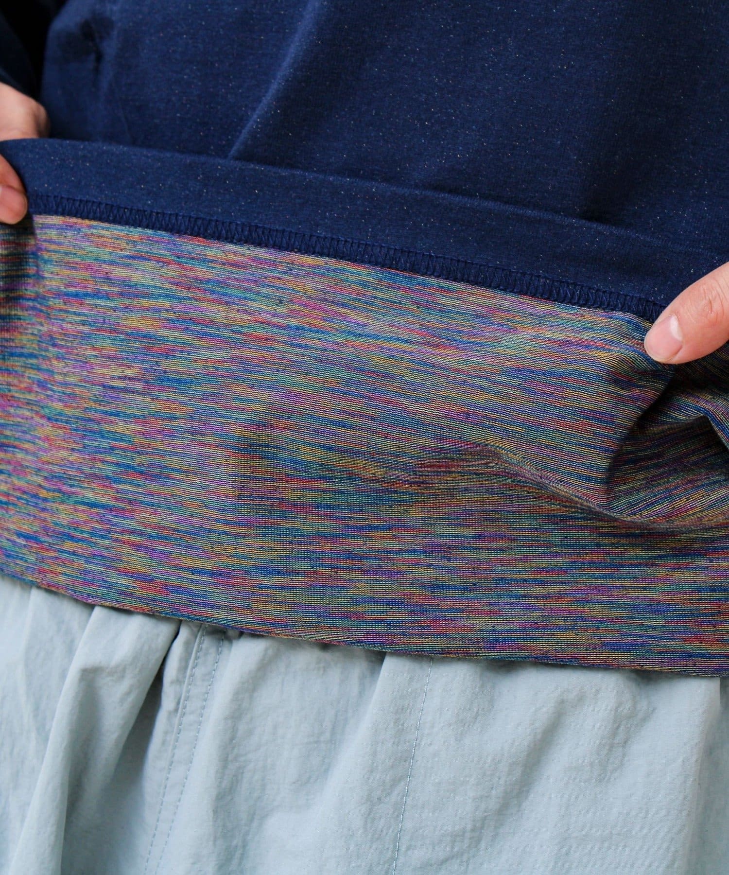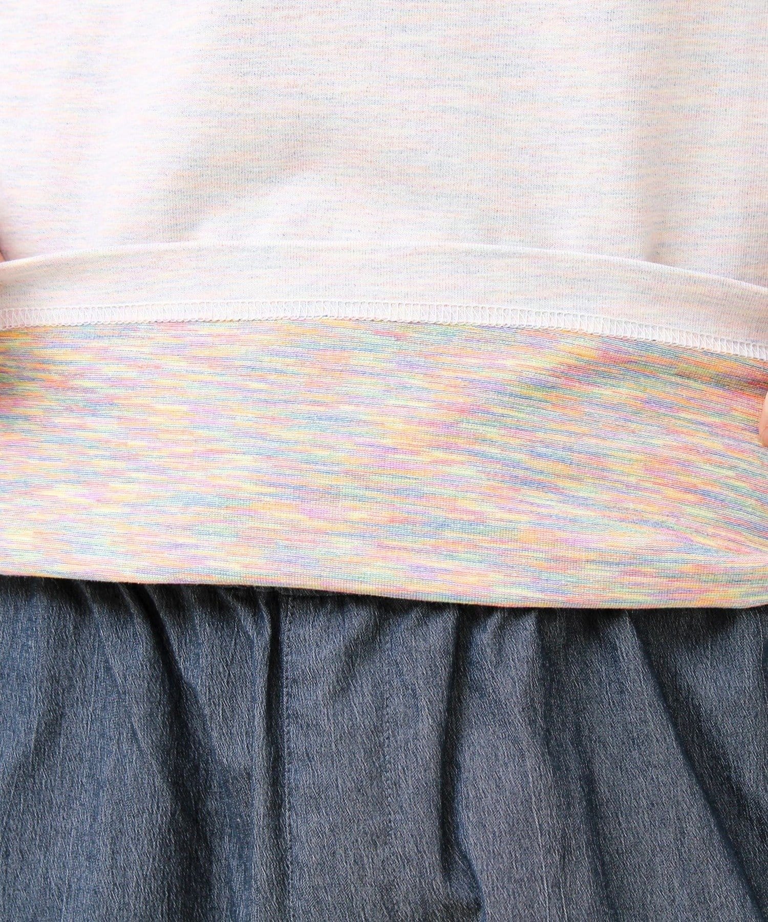・生地は表面はクリーン、裏面はカラフルな“ファンシー杢”仕様。袖口や裾を少し返すと色味がチラっと見えて遊び心◎